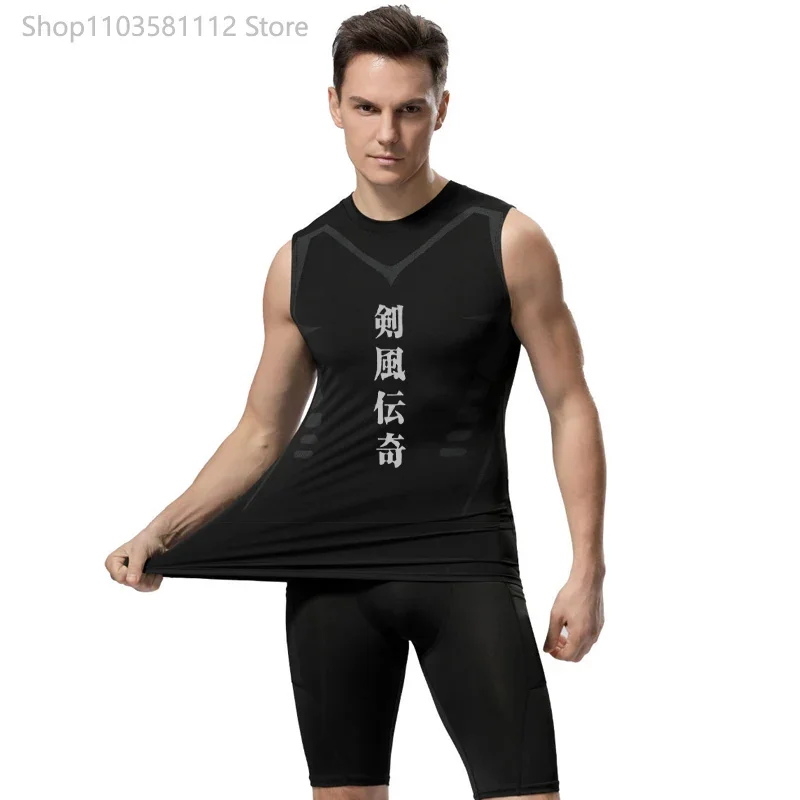 قميص رجالي مضغوط بلا أكمام ، صالة رياضية للياقة البدنية ، سترة رياضة كرة السلة ، شبكة خزان ضيقة للذكور ، قمة تجفيف سريعة ، تنفس ، الصيف