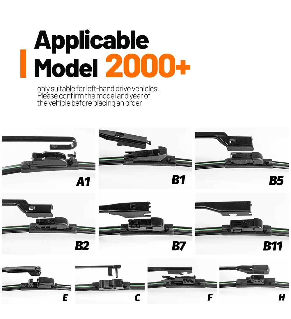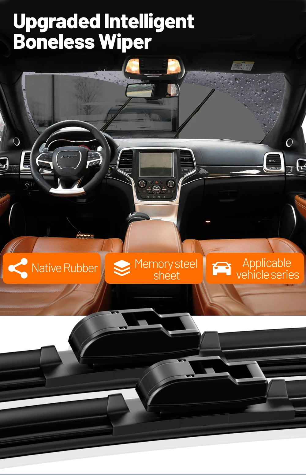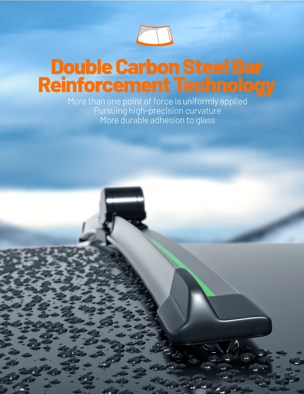 تطبق ذاكرة التوتر ضغطًا متساويًا على طول الشفرة بالكامل. يوفر المطاط الممزوج خصيصًا ممسحة ناعمة ونظيفة وخالية من الأحاديث. التصميم الديناميكي الهوائي يقلل بشكل كبير من السحب والضوضاء ورفع الرياح. ممسحة ذكية بدون عظم، تمنع تراكم الجليد والثلج من التعرض للمكونات المعدنية/البلاستيكية. تركيب سهل وسريع، ملاءمة مثالية، لا حاجة لمحولات غريبة، يتم تركيبه في ثوانٍ.