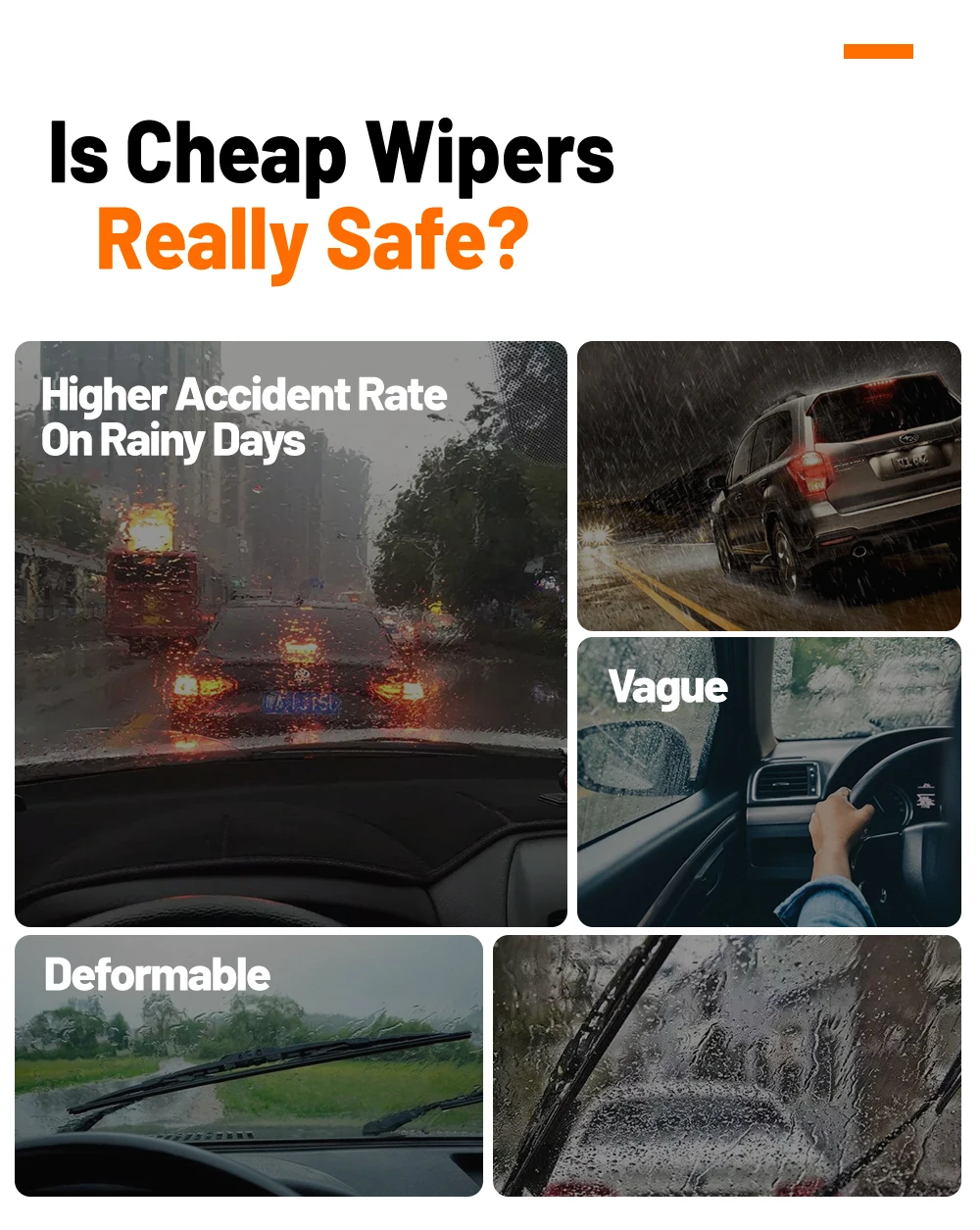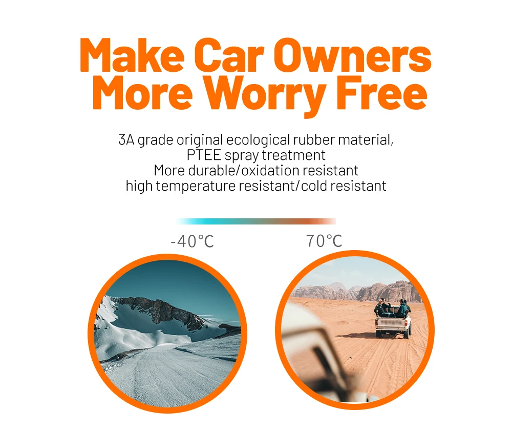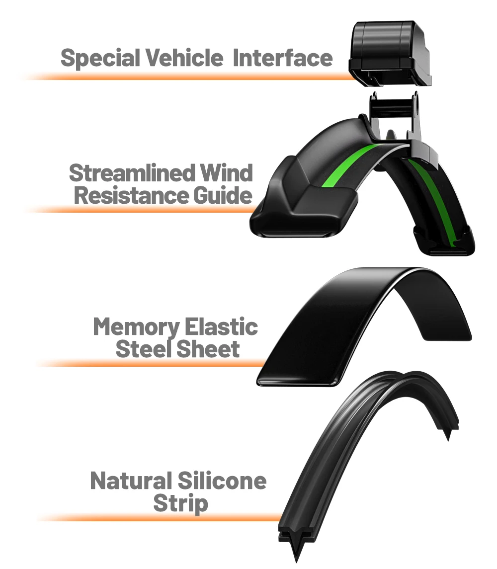 تطبق ذاكرة التوتر ضغطًا متساويًا على طول الشفرة بالكامل. يوفر المطاط الممزوج خصيصًا ممسحة ناعمة ونظيفة وخالية من الأحاديث. التصميم الديناميكي الهوائي يقلل بشكل كبير من السحب والضوضاء ورفع الرياح. ممسحة ذكية بدون عظم، تمنع تراكم الجليد والثلج من التعرض للمكونات المعدنية/البلاستيكية. تركيب سهل وسريع، ملاءمة مثالية، لا حاجة لمحولات غريبة، يتم تركيبه في ثوانٍ.