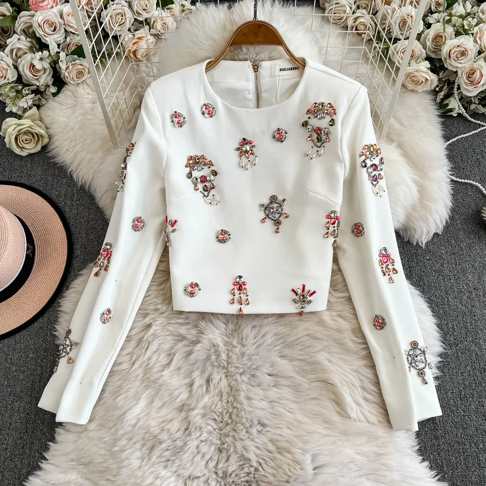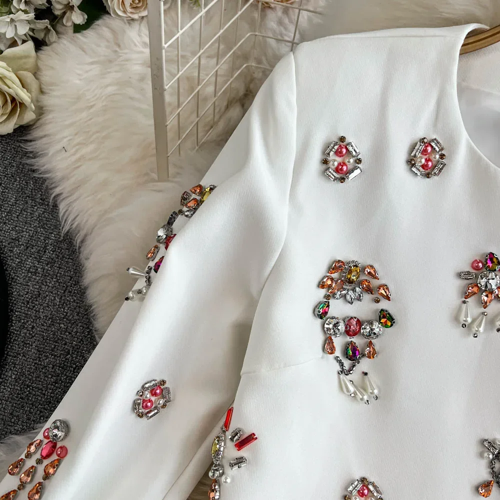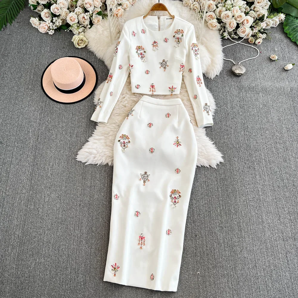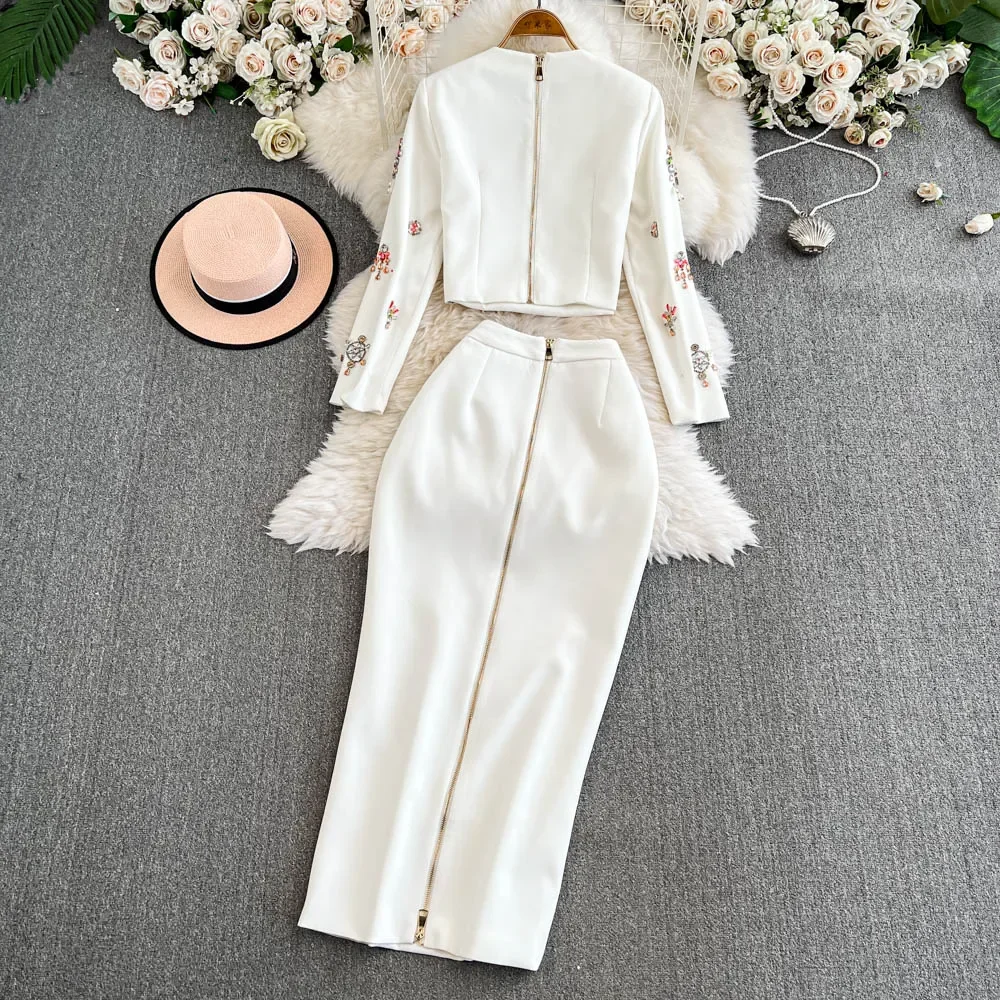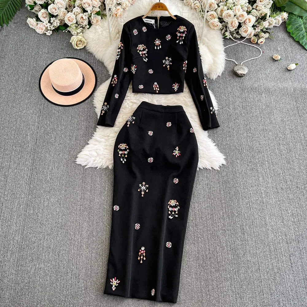 TWOTWINSTYLE الفاخرة نمط قطعتين مجموعة للنساء س الرقبة طويلة الأكمام توبا عالية الخصر نحيل ألف خط تنورة مجموعة الإناث KSE 524945
