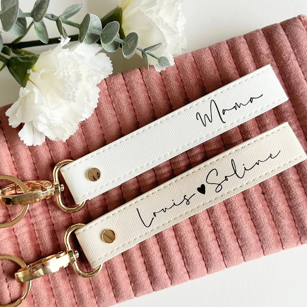 Free Custom Loop Keychain Personalised Leather Wristlet Wristlet Key Wrist Strap Hands Free Keychain Mothers Day Present for Mum
