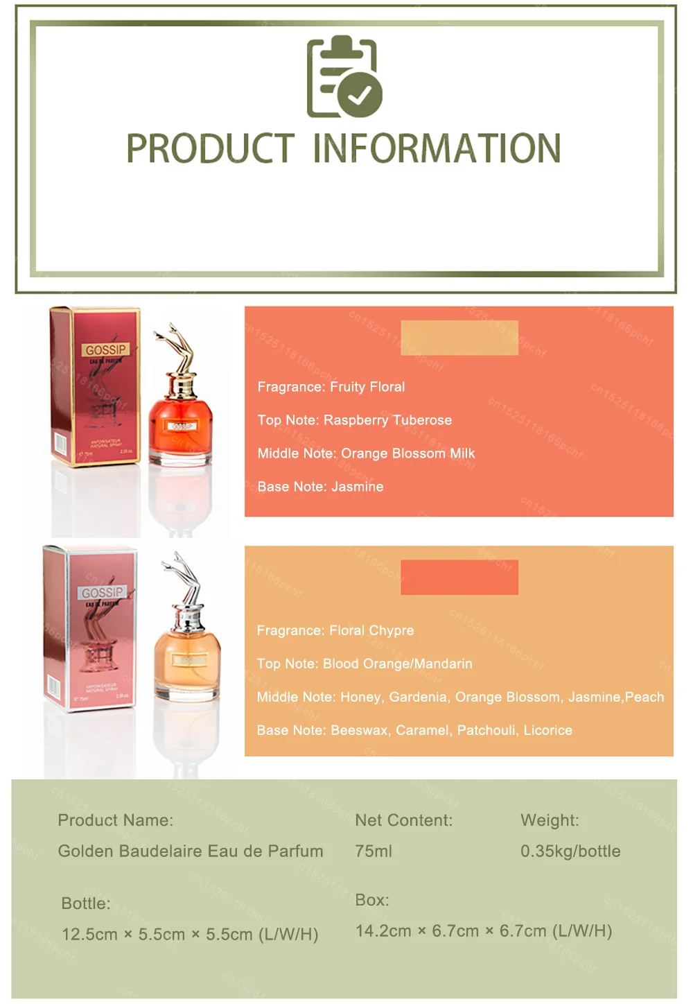75Ml Original Luxury Brand Perfume Long-Lasting Oriental Floral and Fruity Fragrance Suitable Women's Perfume for Daily Outing
