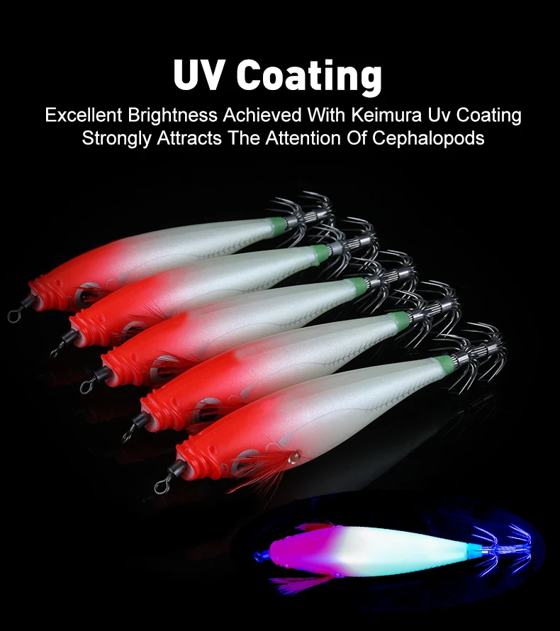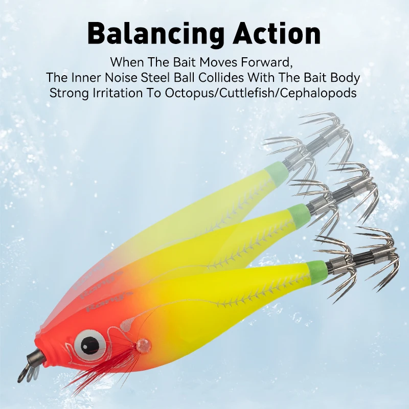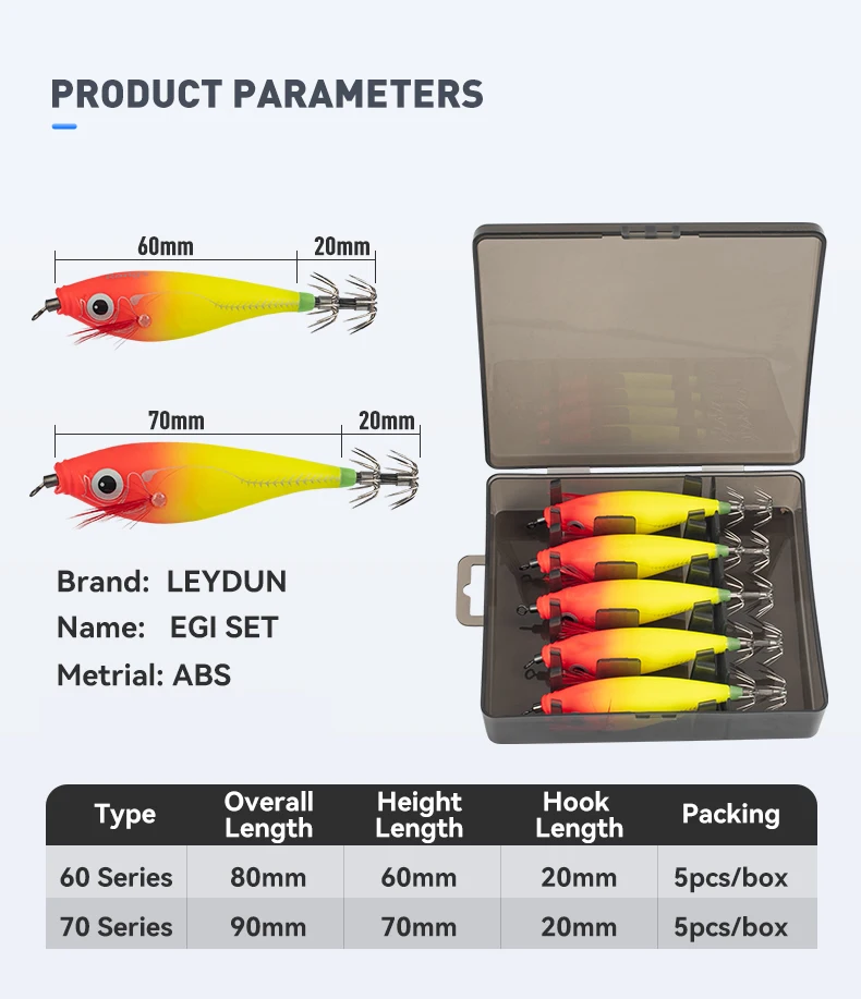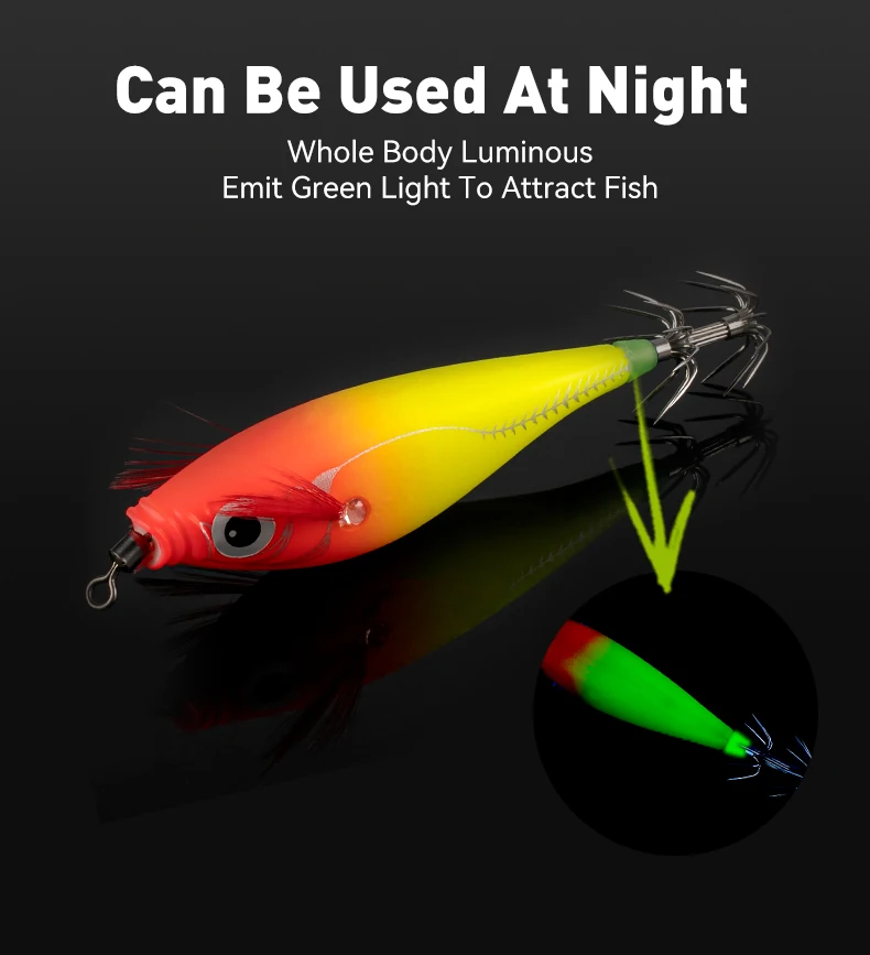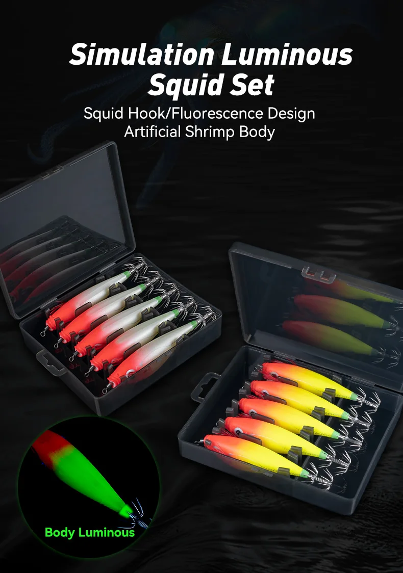 LEYDUN Luminous Horizontal Squid Jig Wood Shrimp Squid Hook 5pcs Fishing Lures Octopus Cuttlefish Shrimp Saltwater Baits
