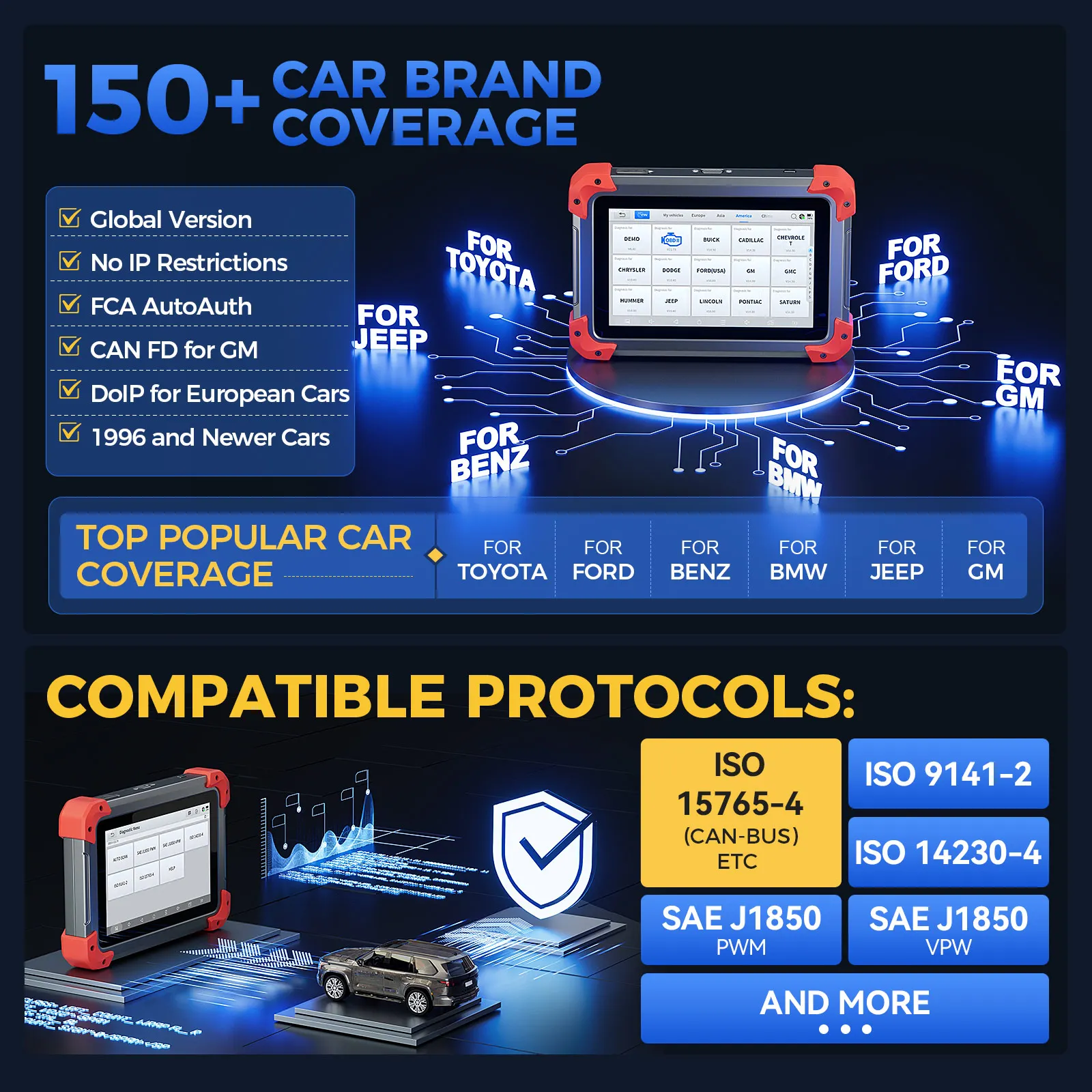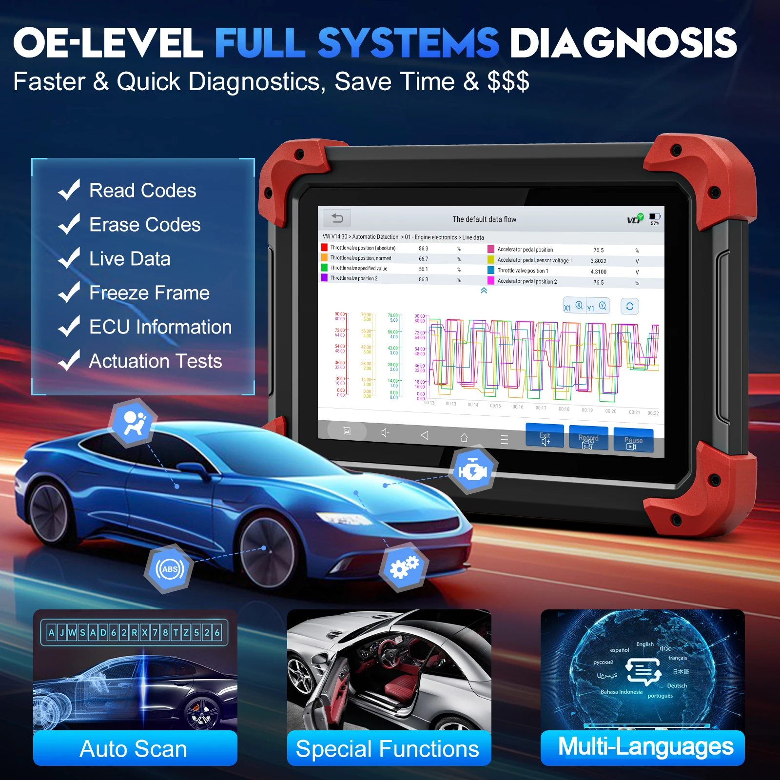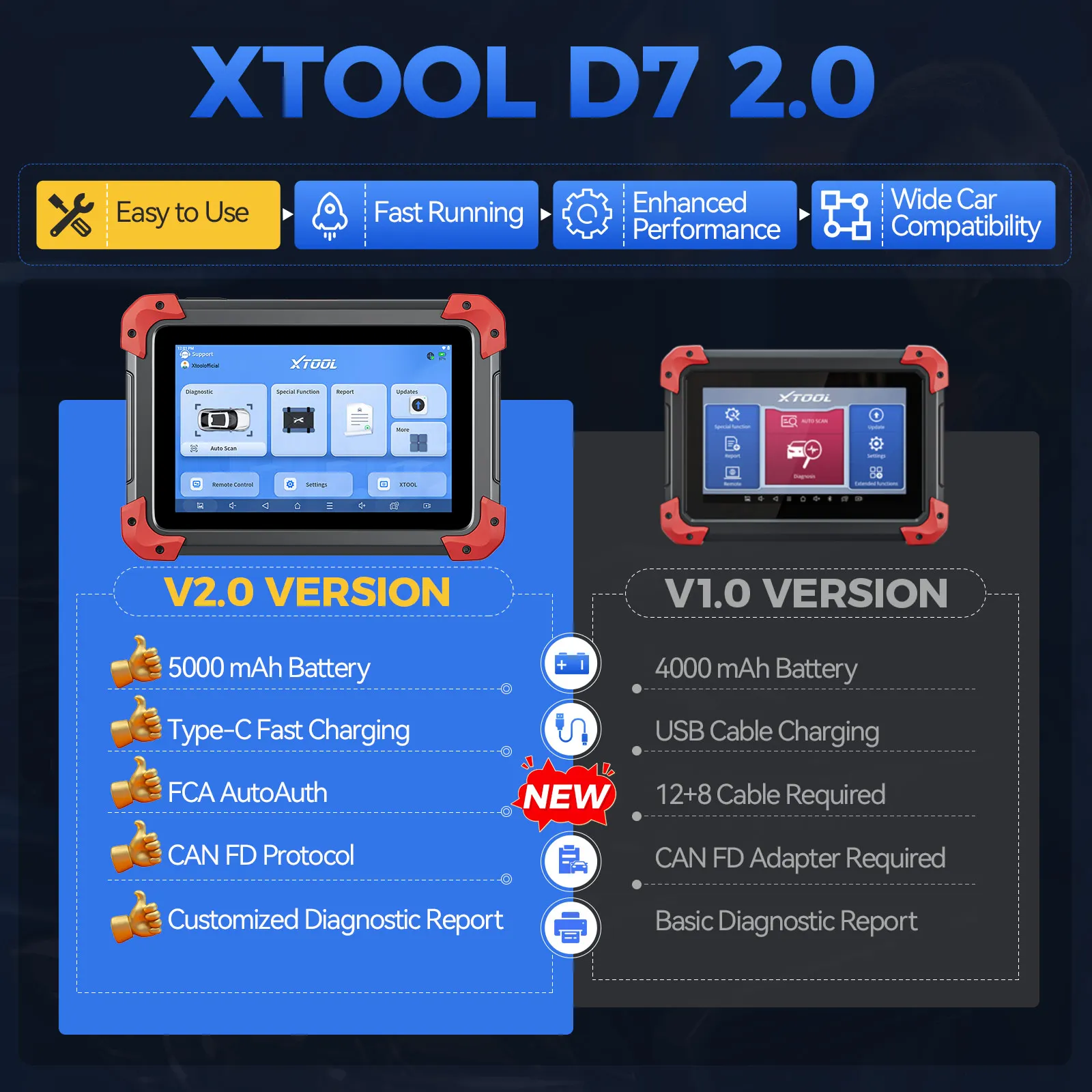 XTOOL D7 أدوات السيارات ECU الترميز ثنائي الاتجاه جميع أدوات تشخيص السيارات مفتاح مبرمج المدمج في CANFD FCA 36 الخدمات