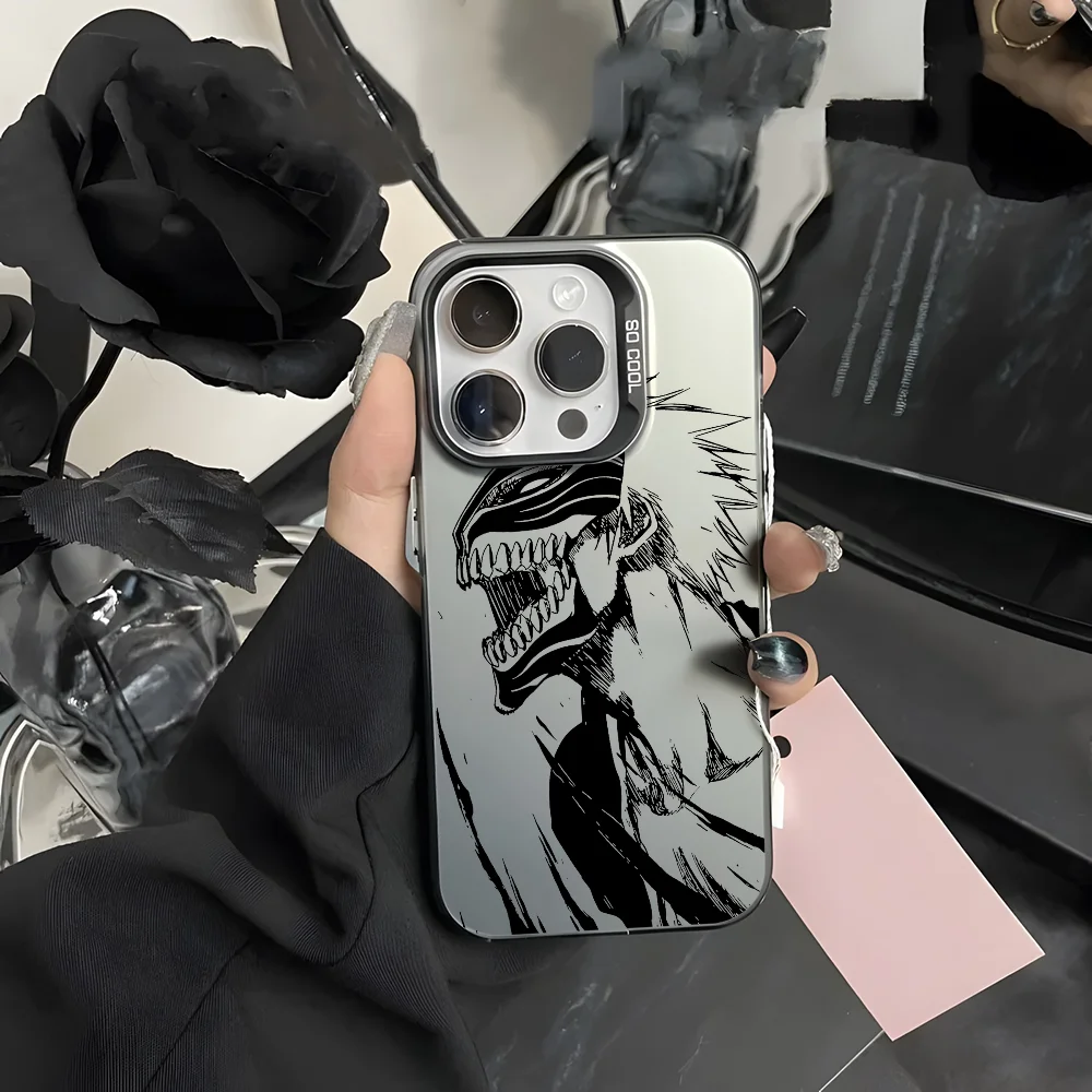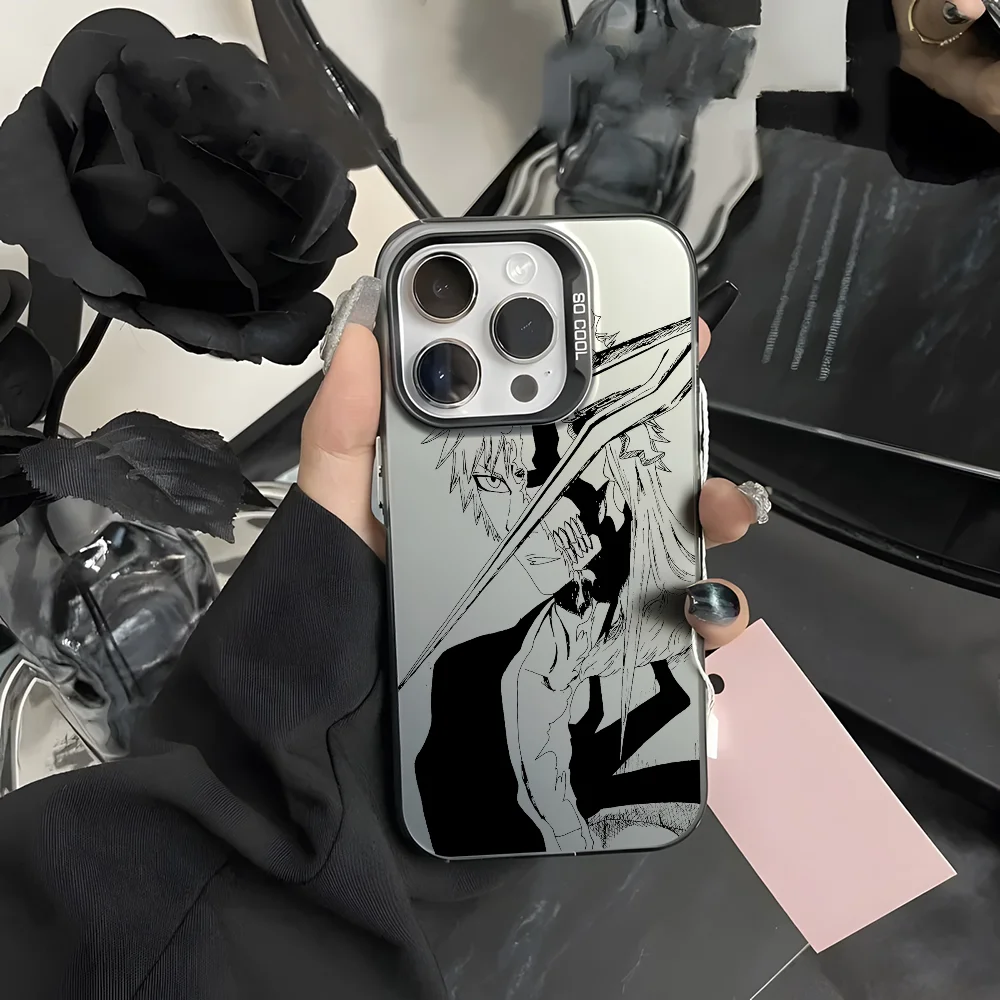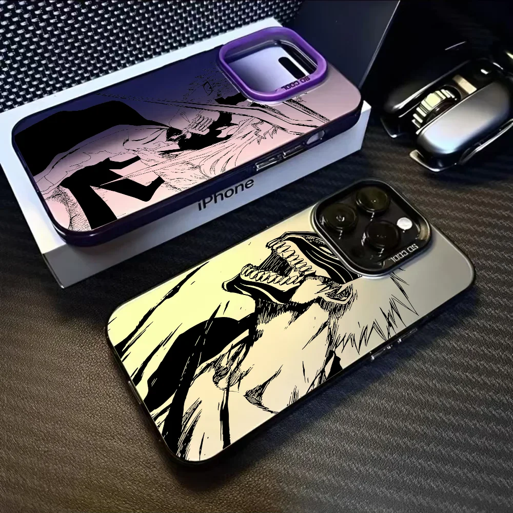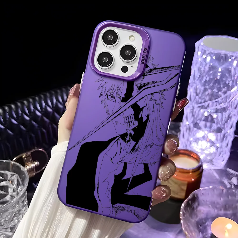 حافظة هاتف Bleachs K-Kurosaki Ichigo لهاتف آيفون 16 15 14 13 12 11 Pro Max أسود أرجواني غير لامع ليزر معدني أورورا فوندا