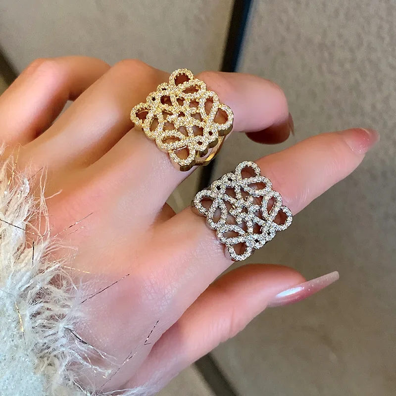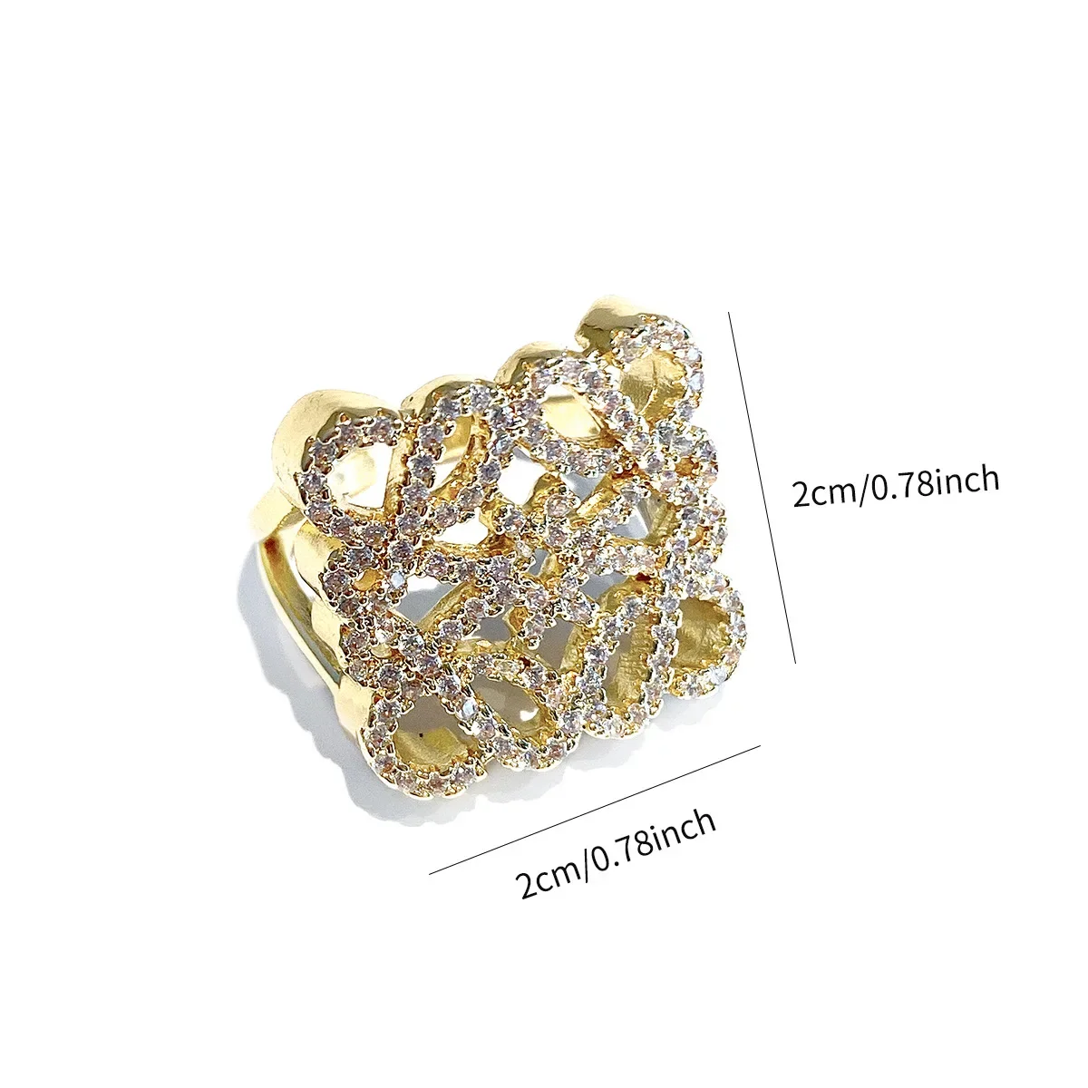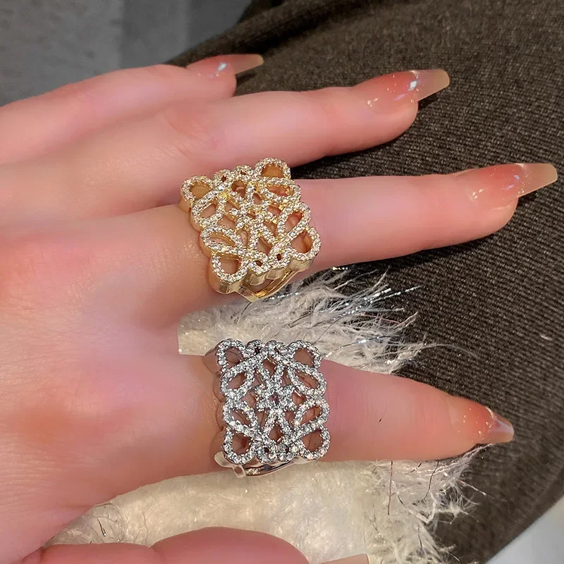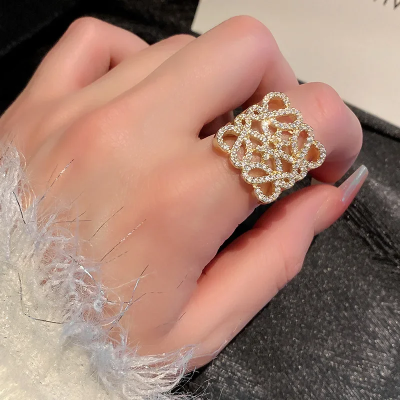 Geometric Hollow out Metal Diamond Ring Versatile Fashionable Luxury Sensation Small Fragrance Style Elegant Band Ring