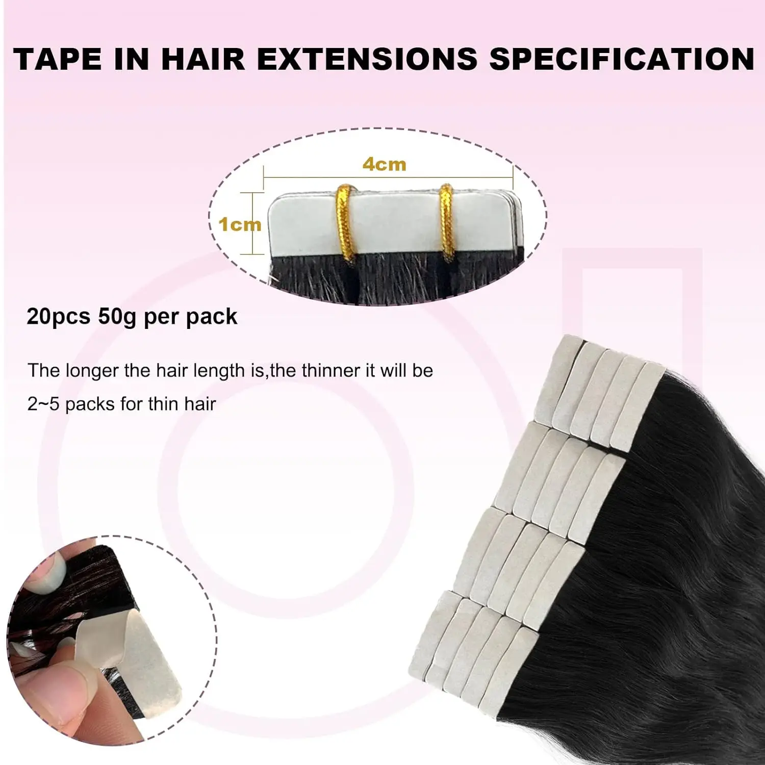 Straight Tape In Hair Extensions Natural Black 26 Inch Adhesive Invisible Brazilian Remy 100% Human Hair Tape ins 50G/20Pcs/Pack