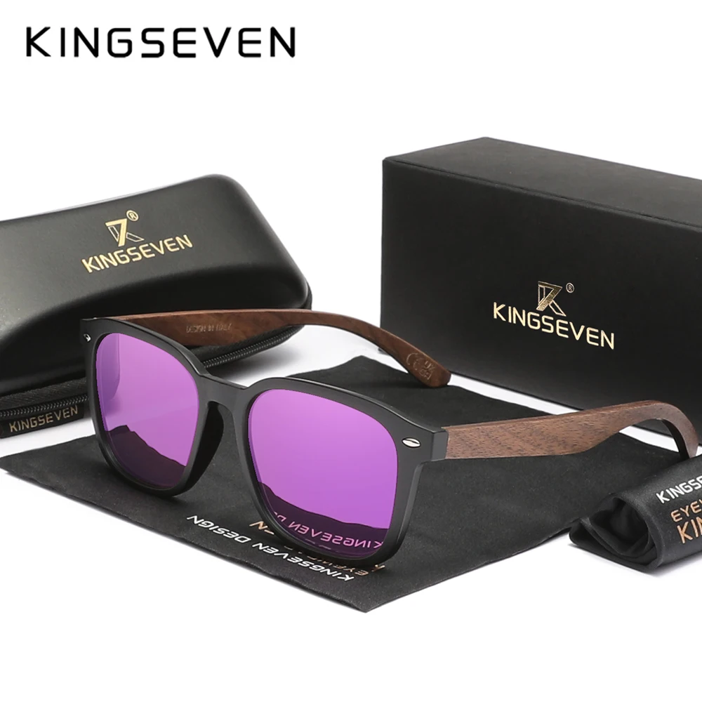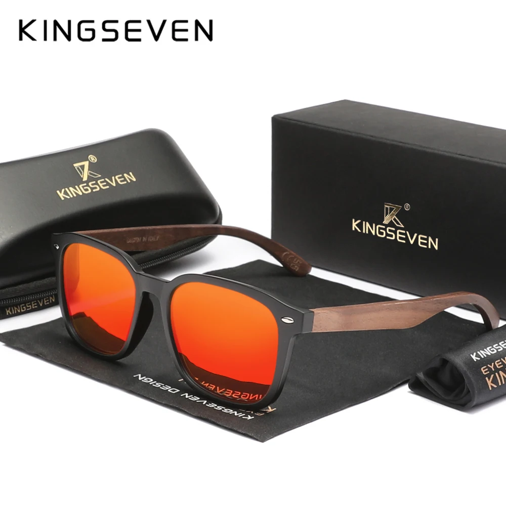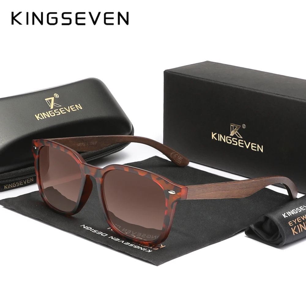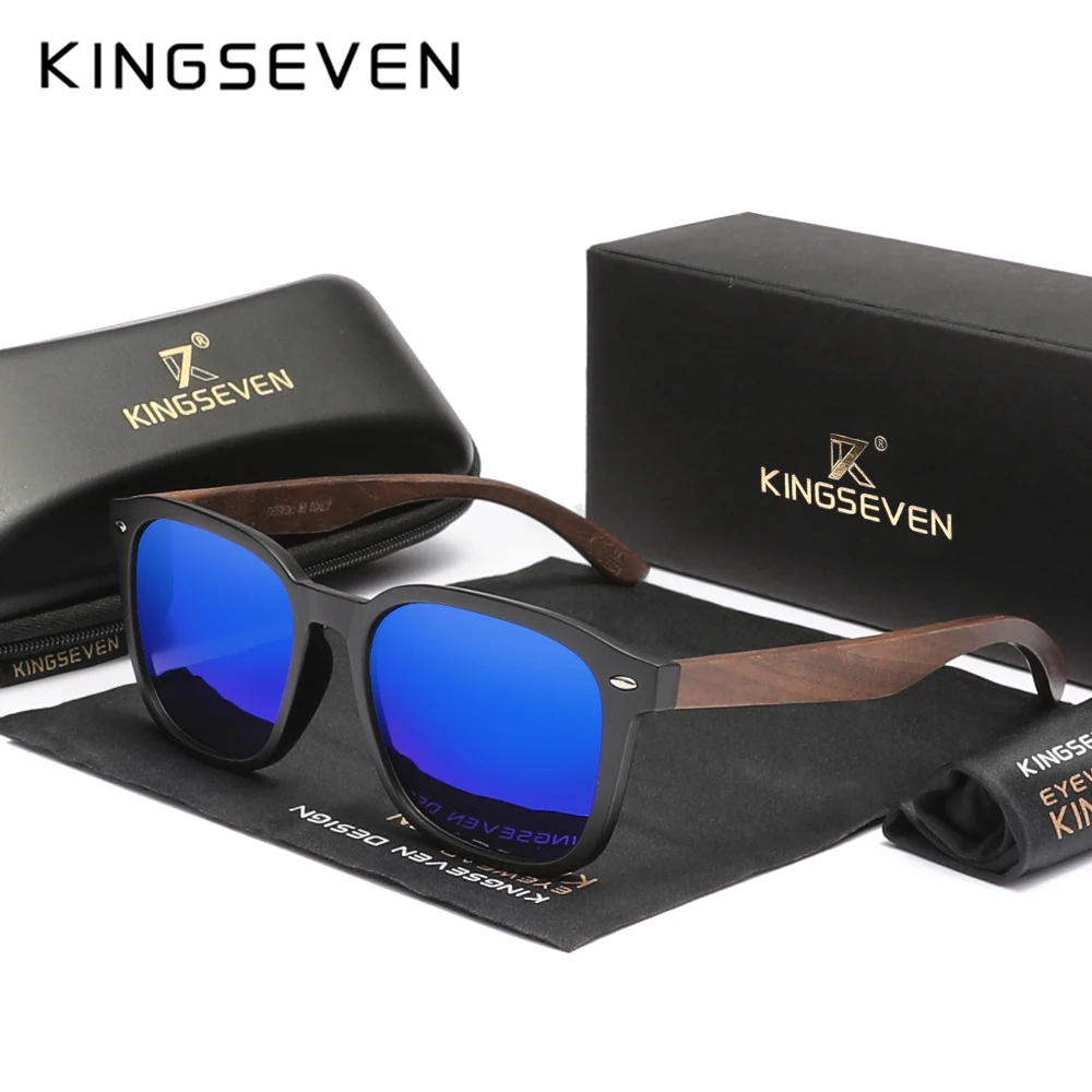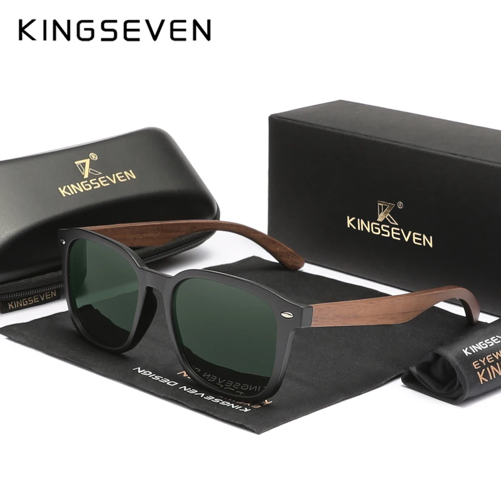 KINGSEVEN Classic Walnut Sunglasses Women/Men Polarized UV400 Lens Fashion Wooden Glasses Square Large Frame Driving Eyewear