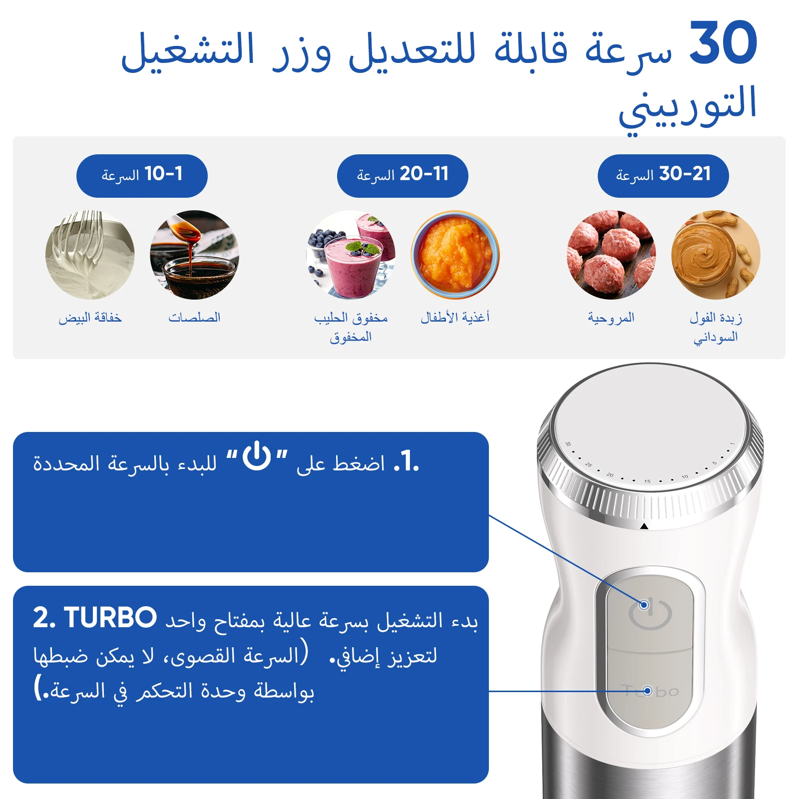 2. مزج قوي ، في كل مرة: ضبط إعدادات سرعات 30 باستخدام المقبض الدوار العلوي. باستخدام وضع التوربو لتجربة مزج محسنة ، وضمان العصائر والصلصات والحساء تحقيق الاتساق المطلوب باستمرار.
