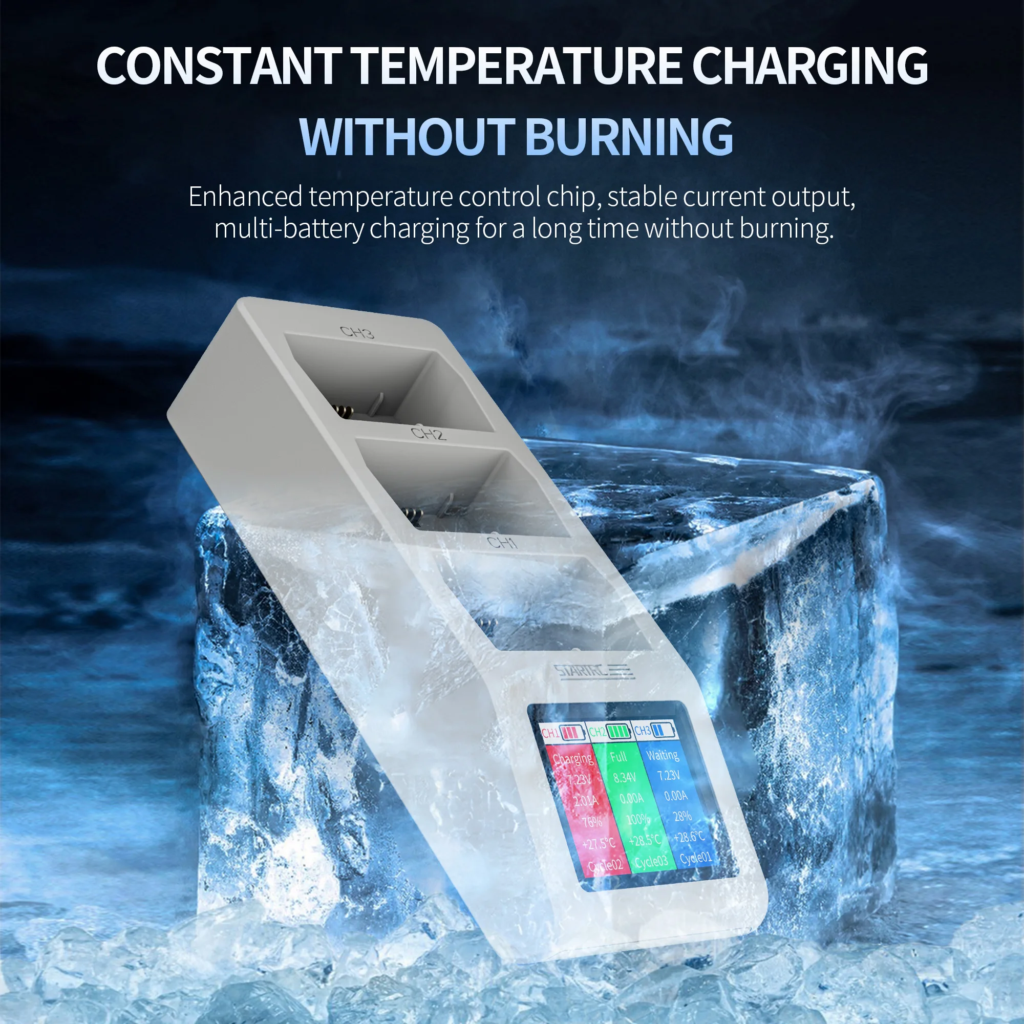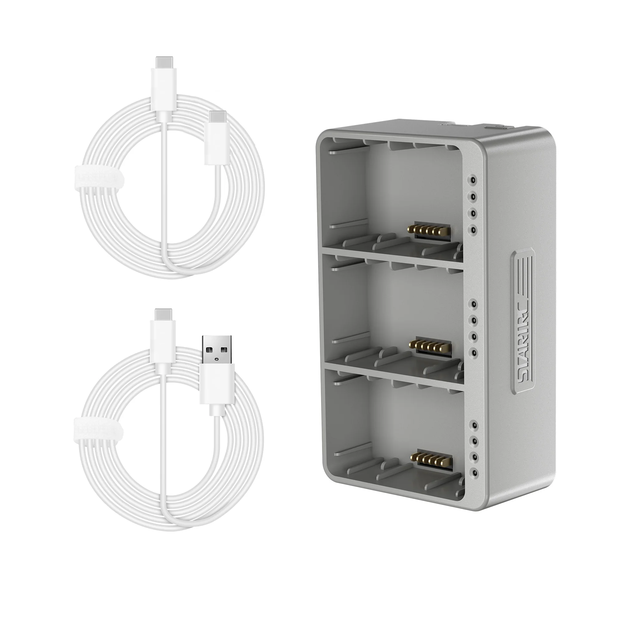 4.وقت شحن سريع، يتم شحن قطعتين من البطاريات وجهاز التحكم عن بعد في نفس الوقت، وهو حوالي 100 دقيقة