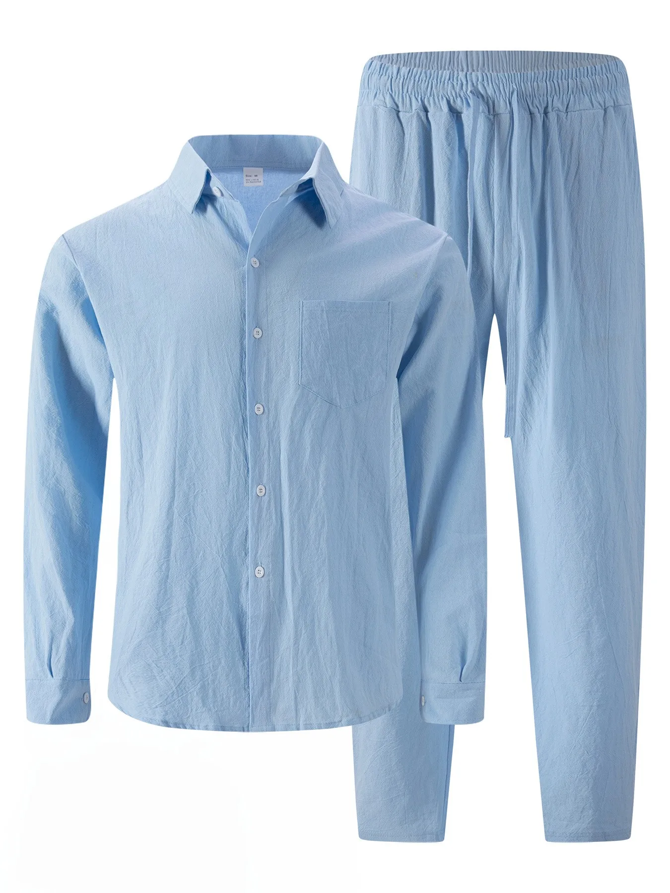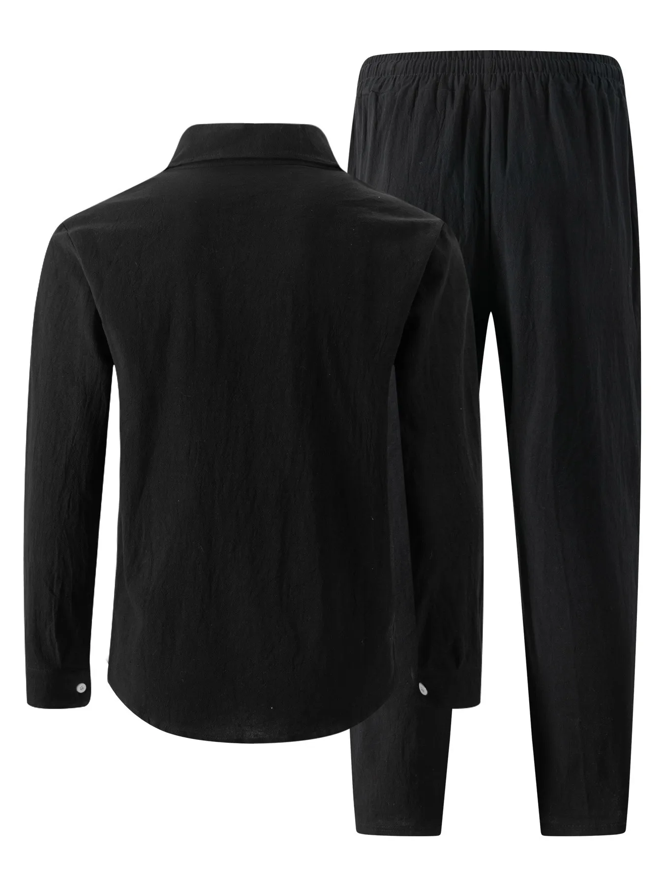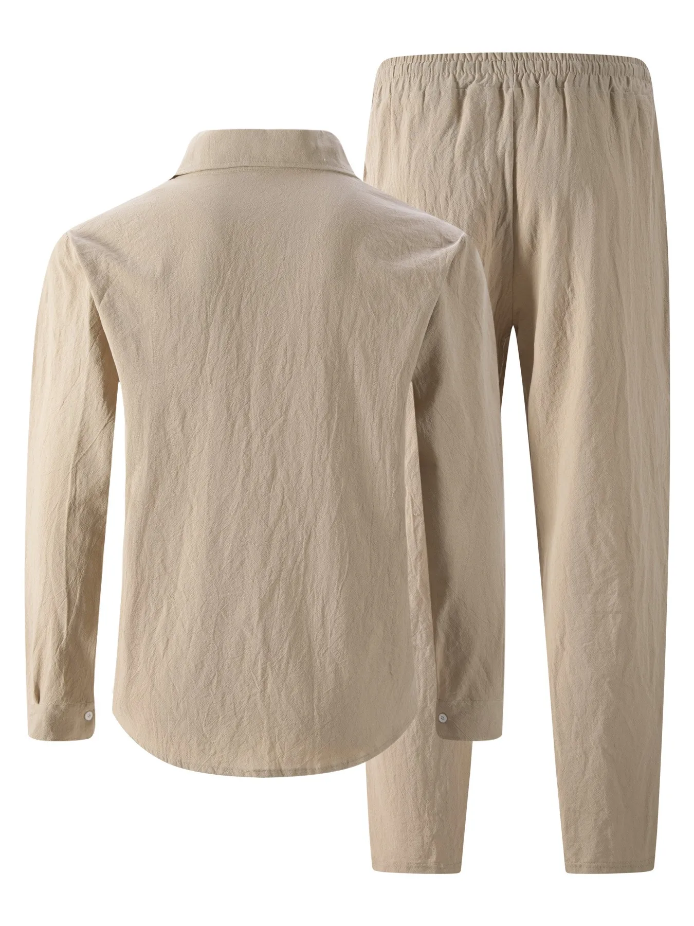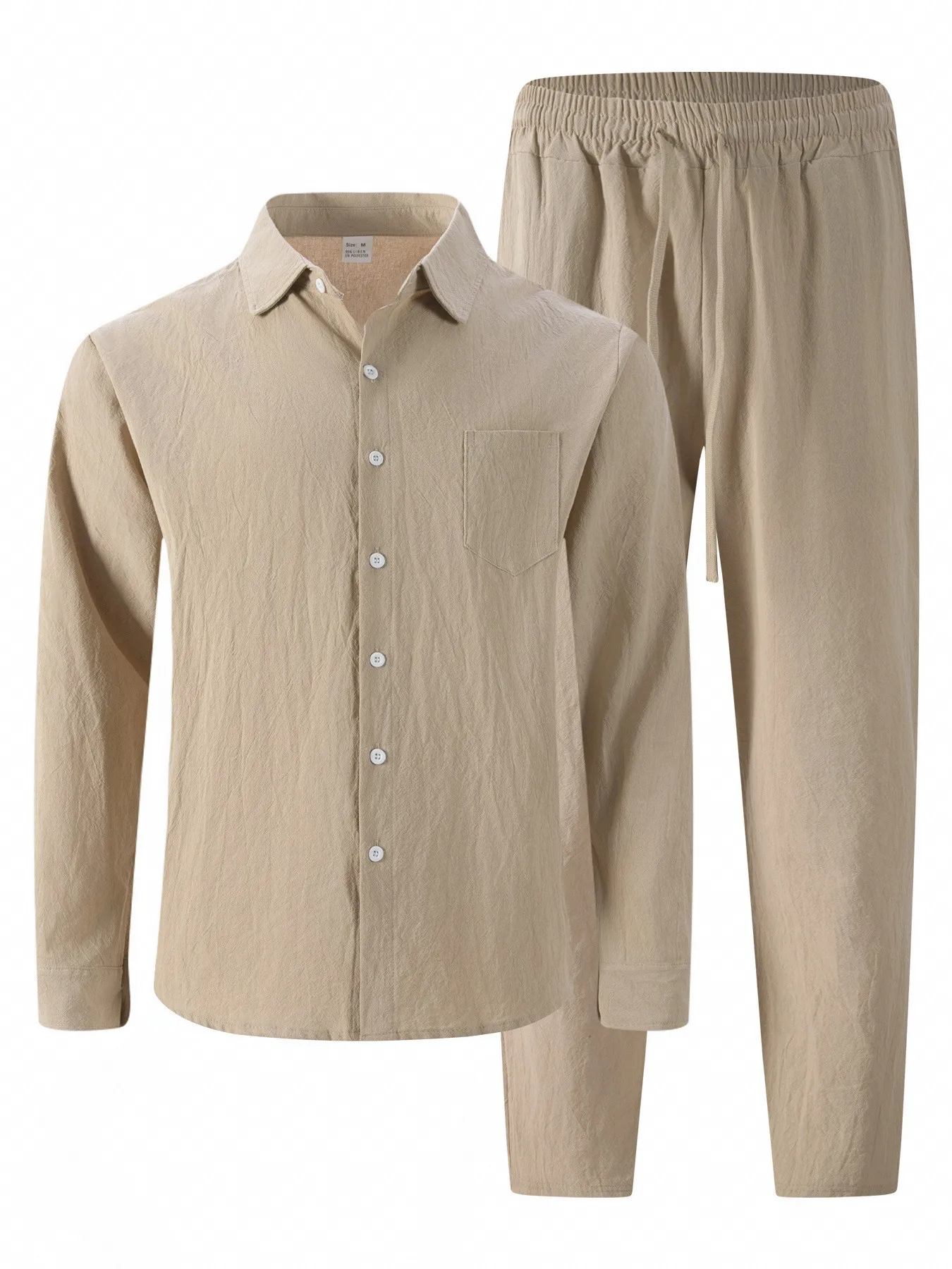 قميص كتان رجالي جديد لخريف 2025 بأكمام طويلة، ملابس خارجية غير رسمية، مقترن أنيق مع بدلة سراويل طويلة