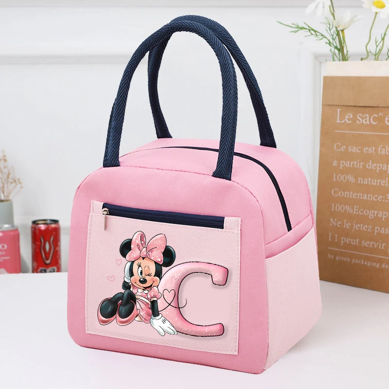 ميني ماوس ديزني الاطفال الغداء حزمة الفتيات أكياس معزولة صناديق الغداء الكرتون رسالة سميكة حقيبة يد مقاومة للماء أنيمي لطيف هدية