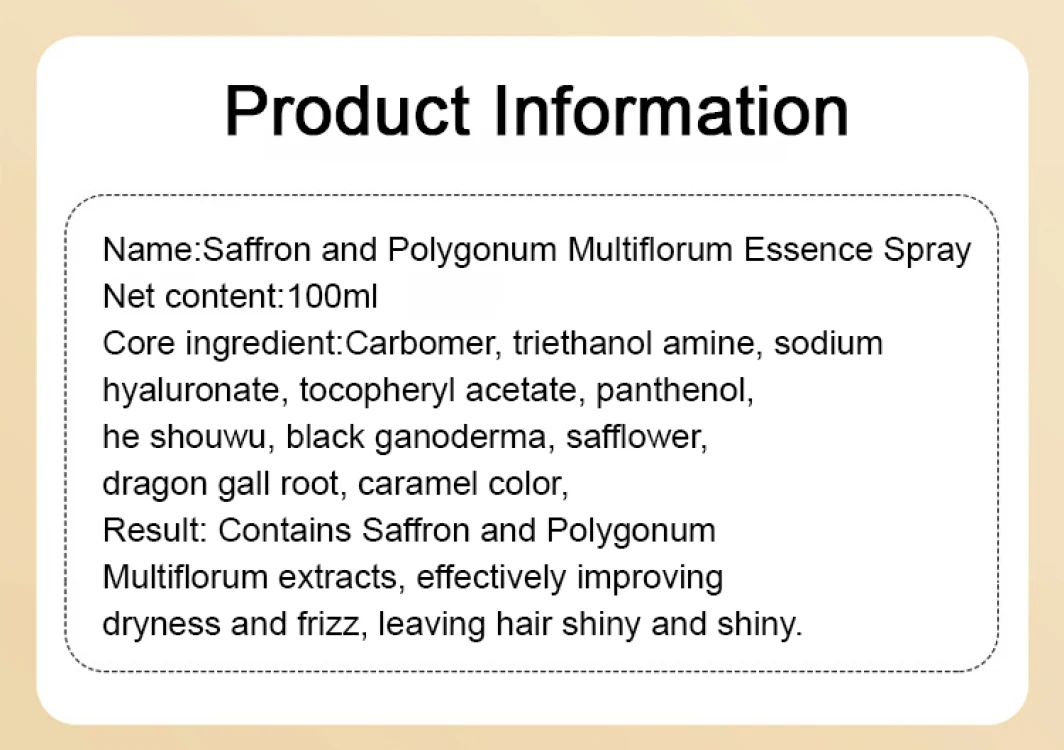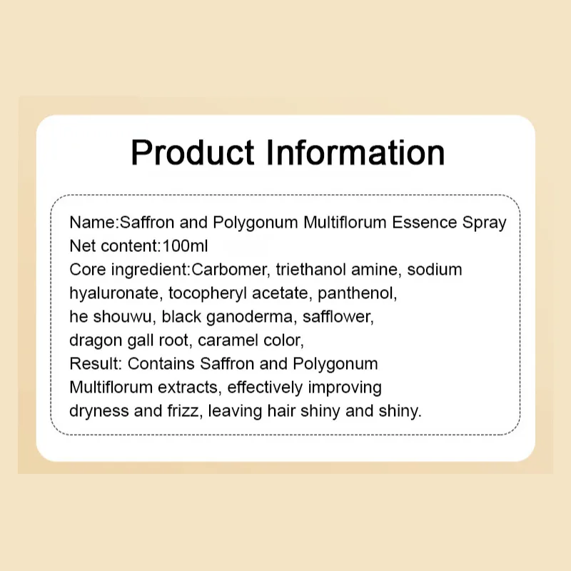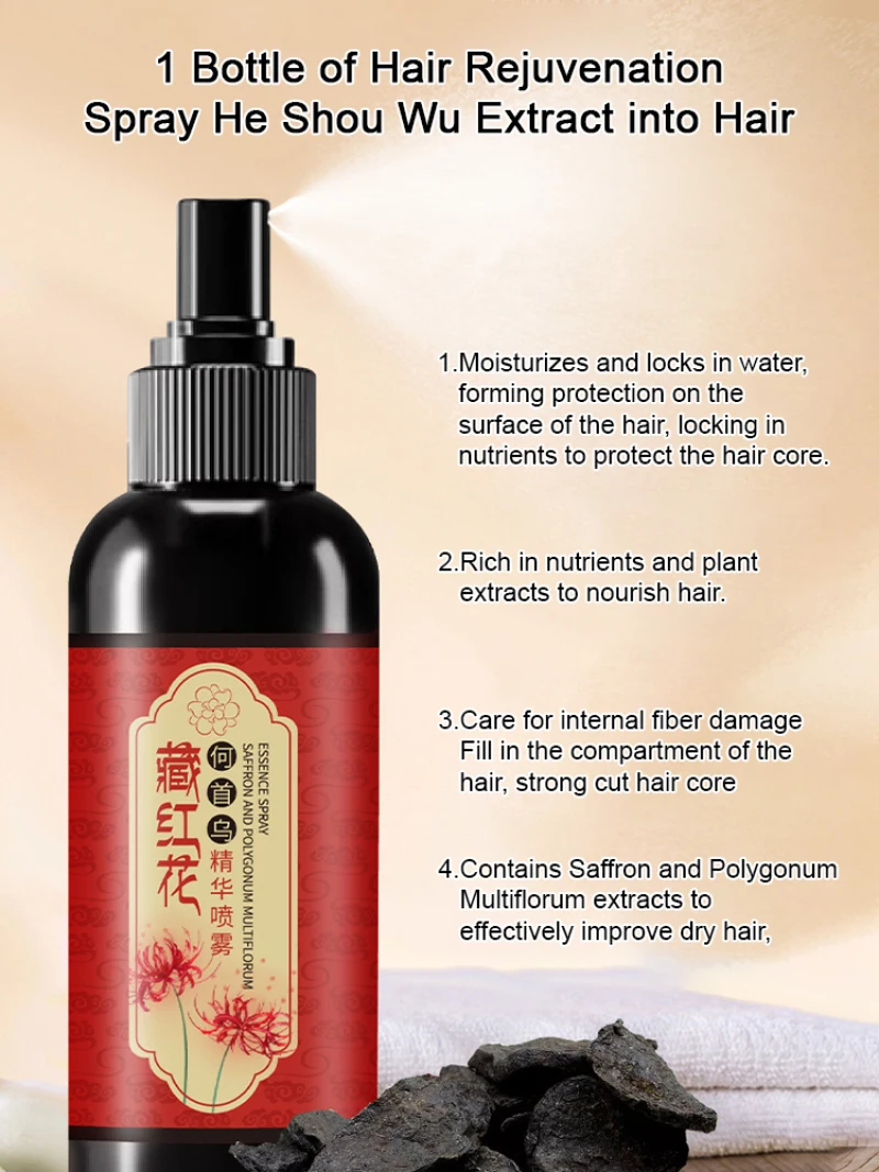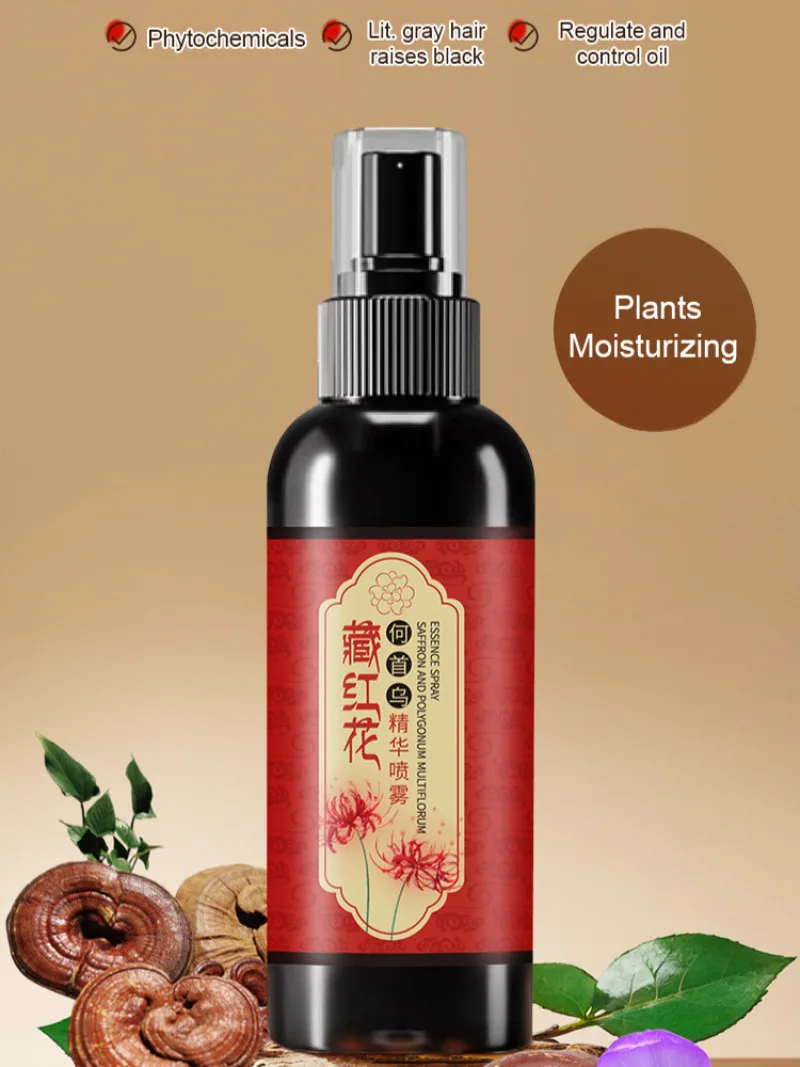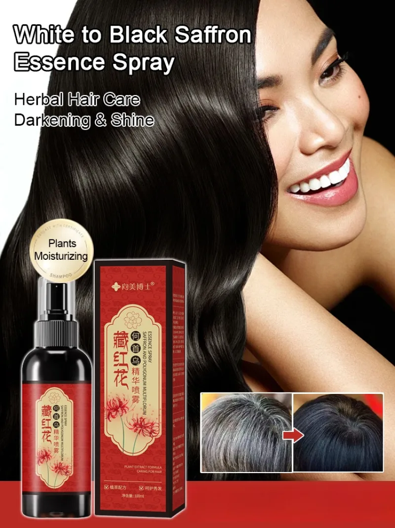 Saffron Essence Spray Herbal Black Hair Spray Polygonum Multiflorum Black Hair Liquid Cover Grey Promote Hair Growth