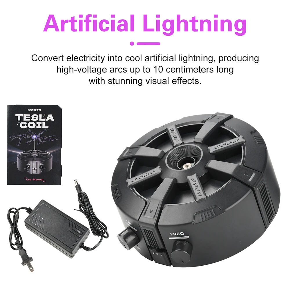 1.Artificial lightning: Convert electricity into cool artificial lightning, generating high-voltage arcs up to 10 centimeters long, with stunning visual effects.2.Touchable safety design: Users can directly touch without being electrocuted, increasing interactivity and fun.3.With bluetooth connection: Supports bluetooth connection, users can pair and connect by searching for the bluetooth name tesla coil 1 on their mobile phone.4.Music arc mode: It is recommended to play square wave music. When you turn on the music mode, if there is no music playing, it will not generate an arc. When you play music, you will see arc dancing, which is very entertaining.5.Scientific education value: Tesla coil music box not only provides entertainment functions, but also stimulates people's interest in physics, making it suitable as a gift for scientific enlightenment.