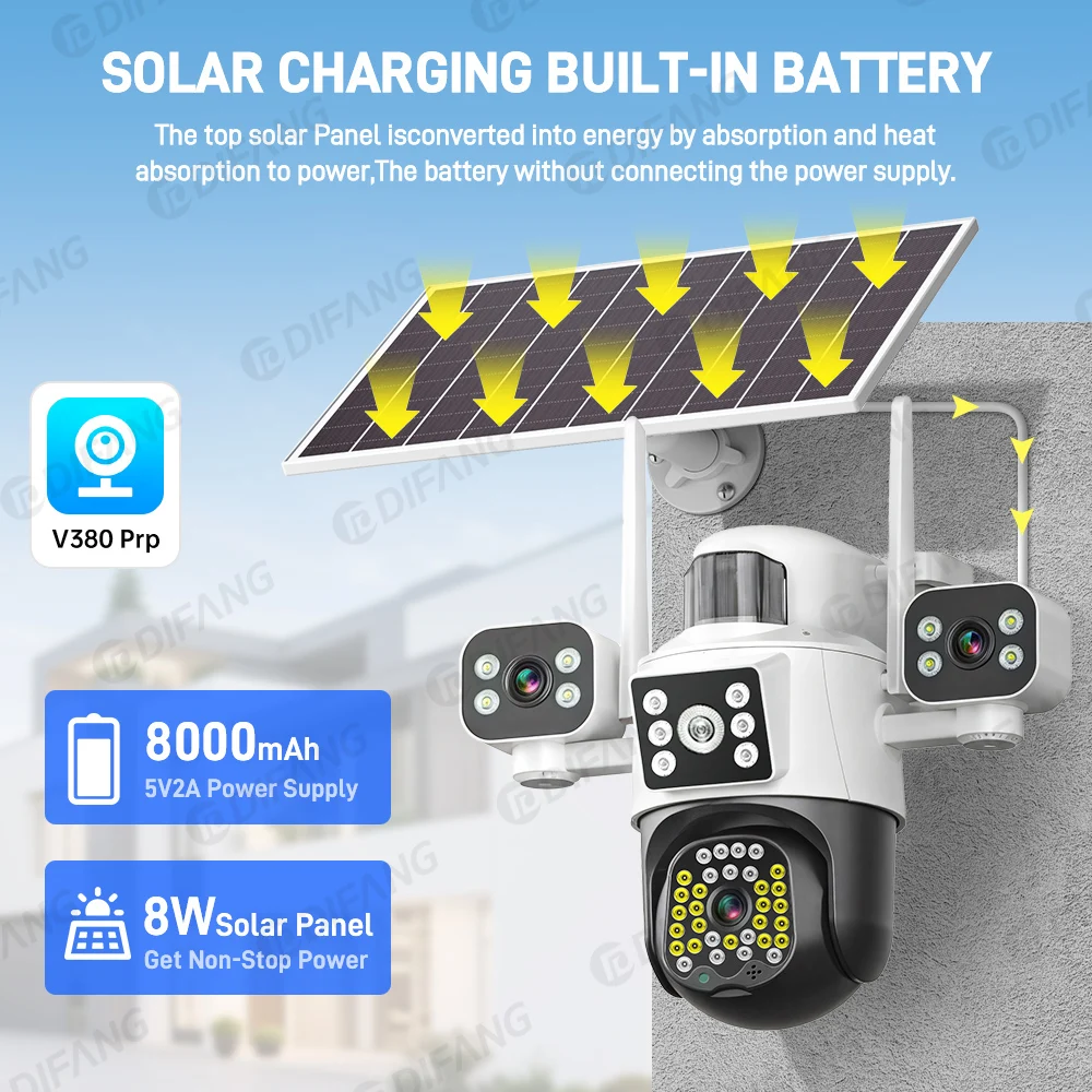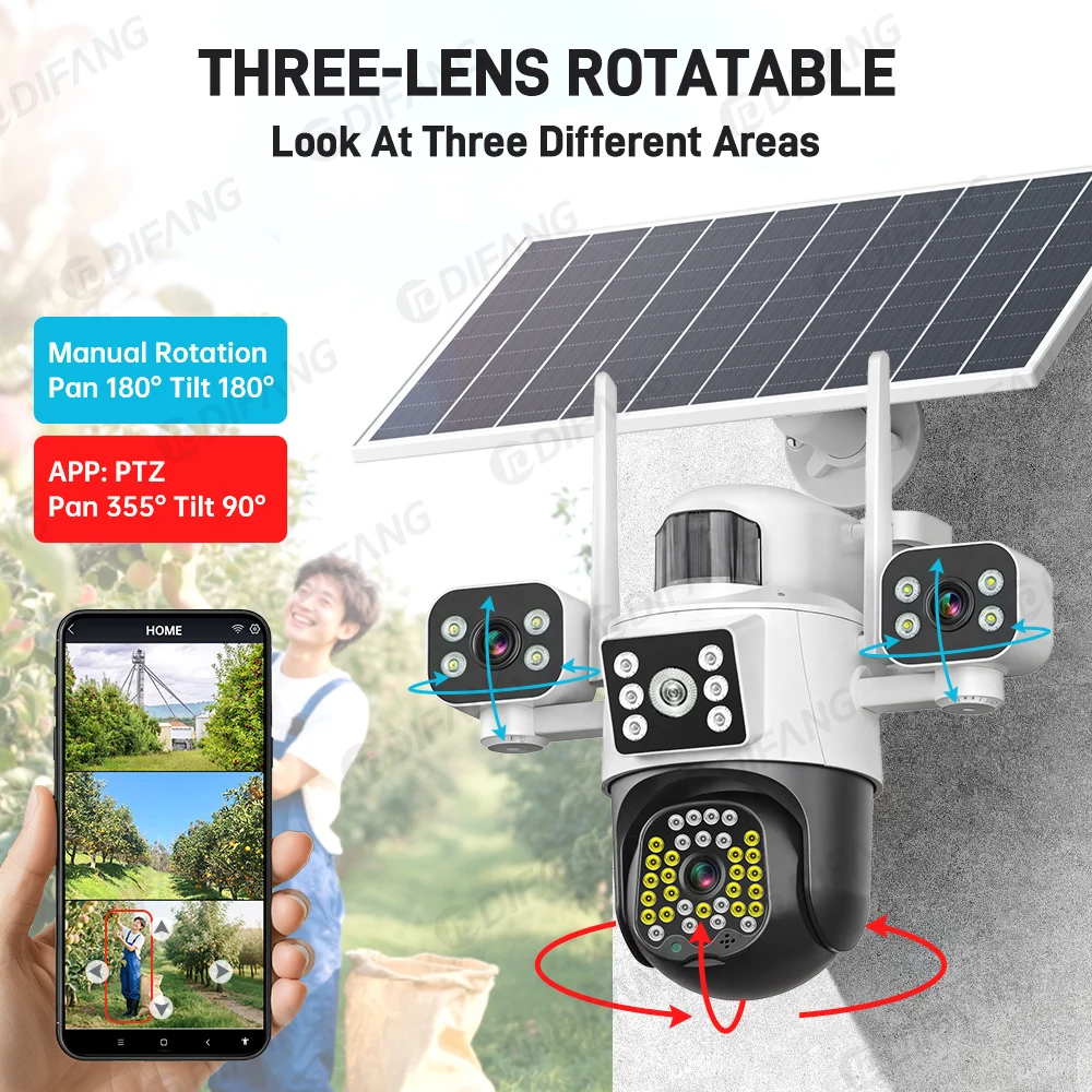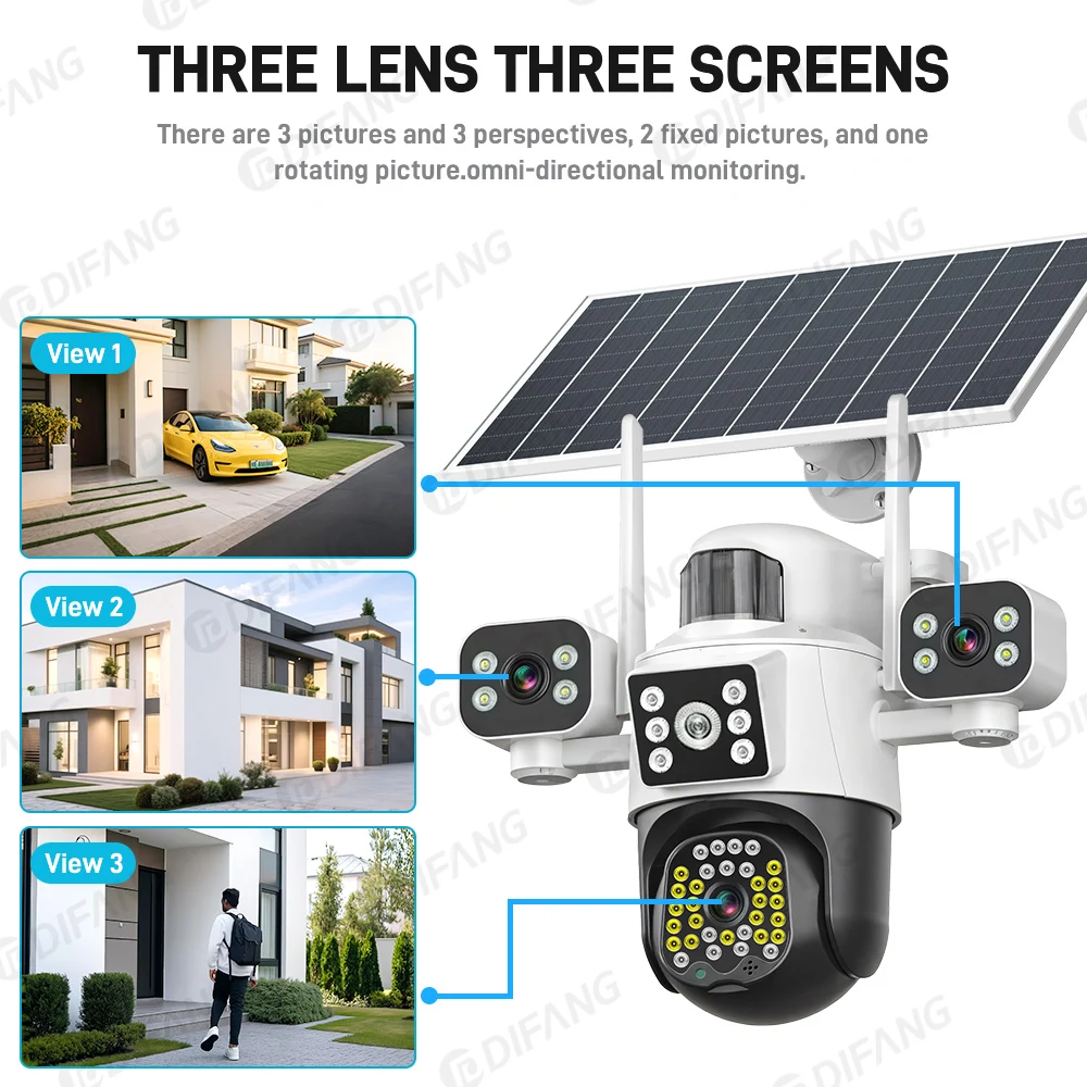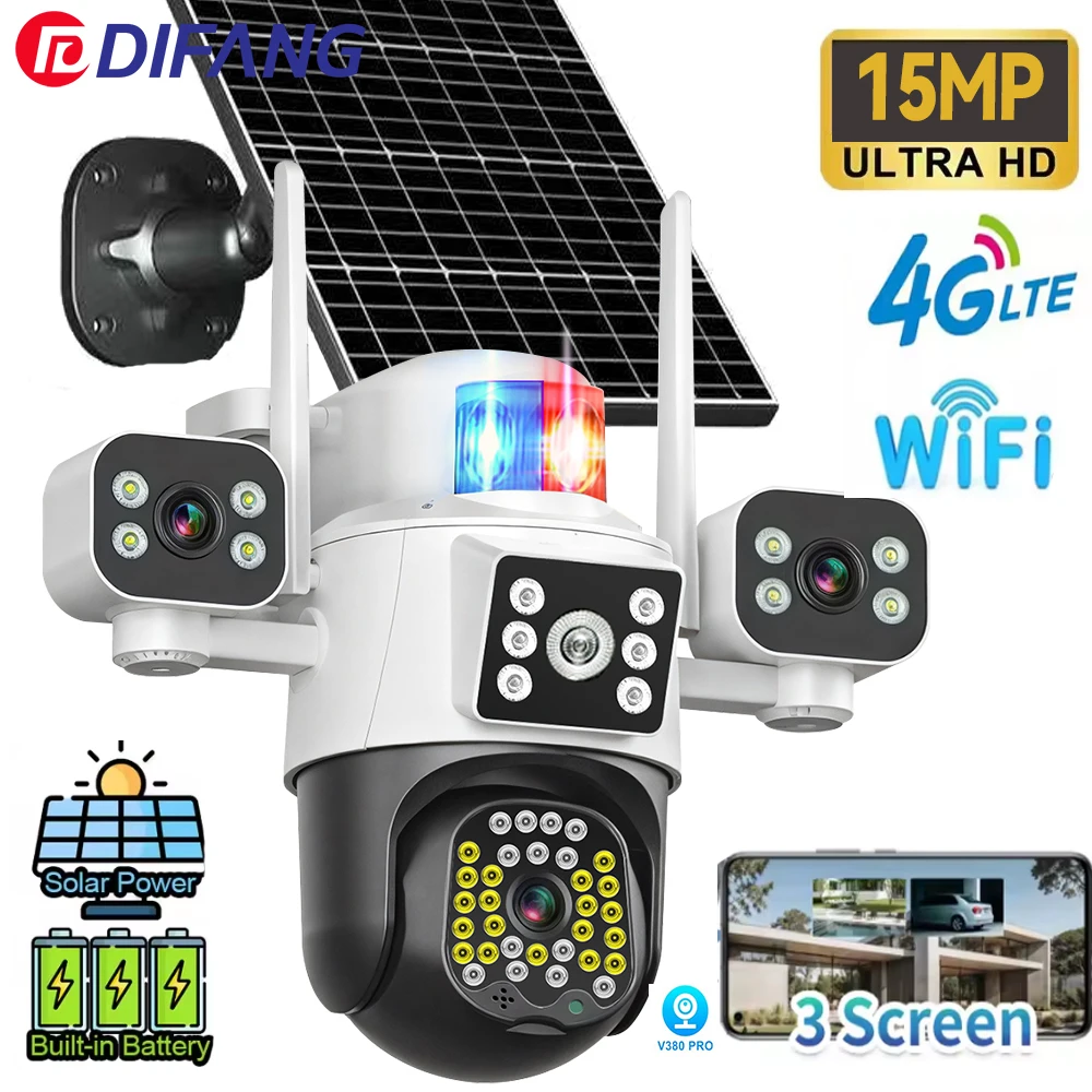 جديد 8K 15MP واي فاي كاميرا تعمل بالطاقة الشمسية بطارية ثلاثية الشاشة اللاسلكية 4G بطاقة Sim مراقبة بالطاقة الشمسية كاميرا IP حماية الأمن الشمسية CCTV