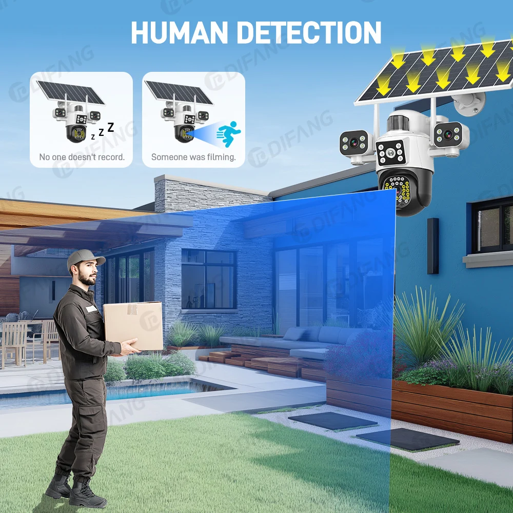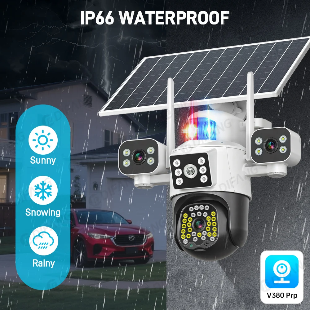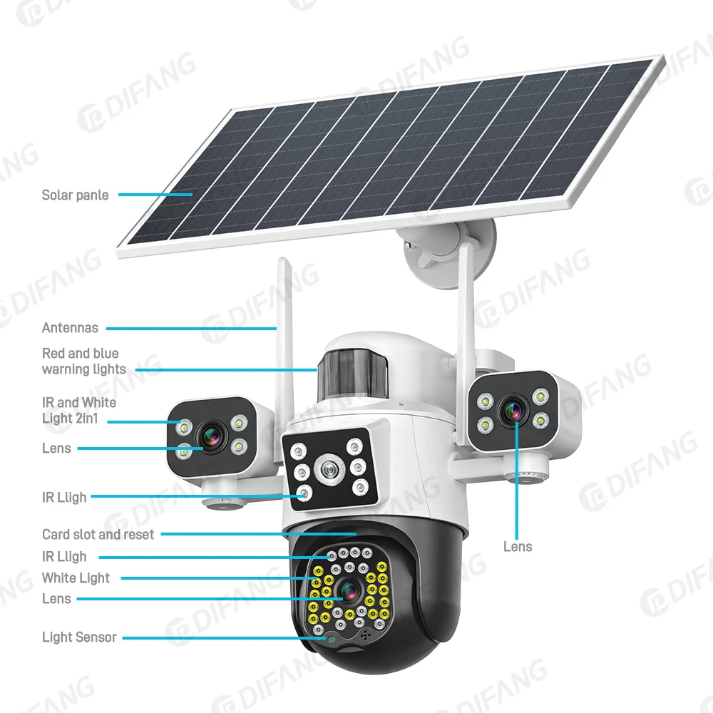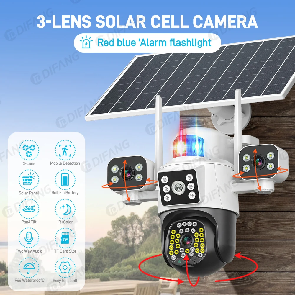 جديد 8K 15MP واي فاي كاميرا تعمل بالطاقة الشمسية بطارية ثلاثية الشاشة اللاسلكية 4G بطاقة Sim مراقبة بالطاقة الشمسية كاميرا IP حماية الأمن الشمسية CCTV