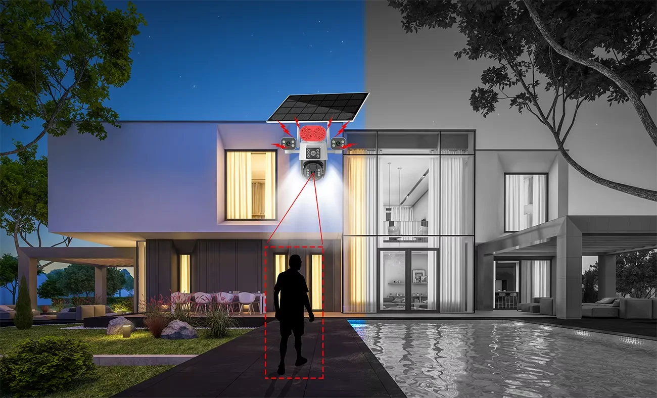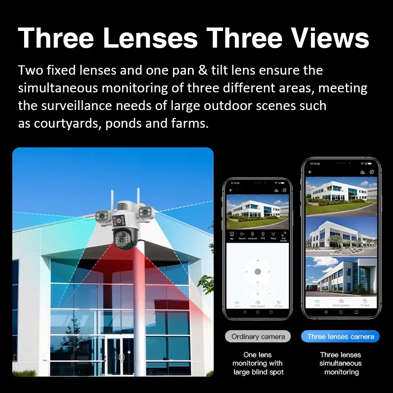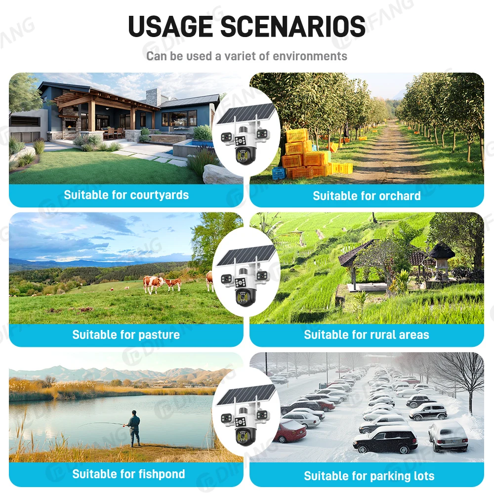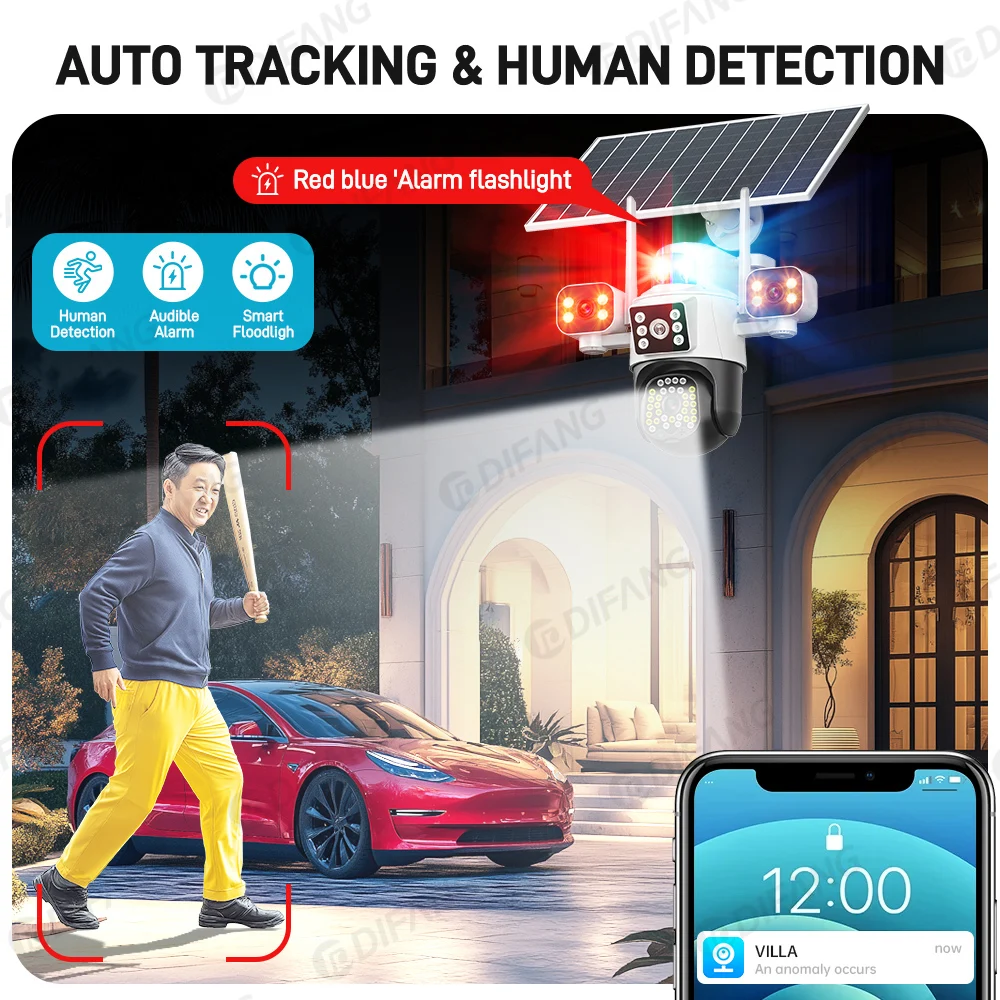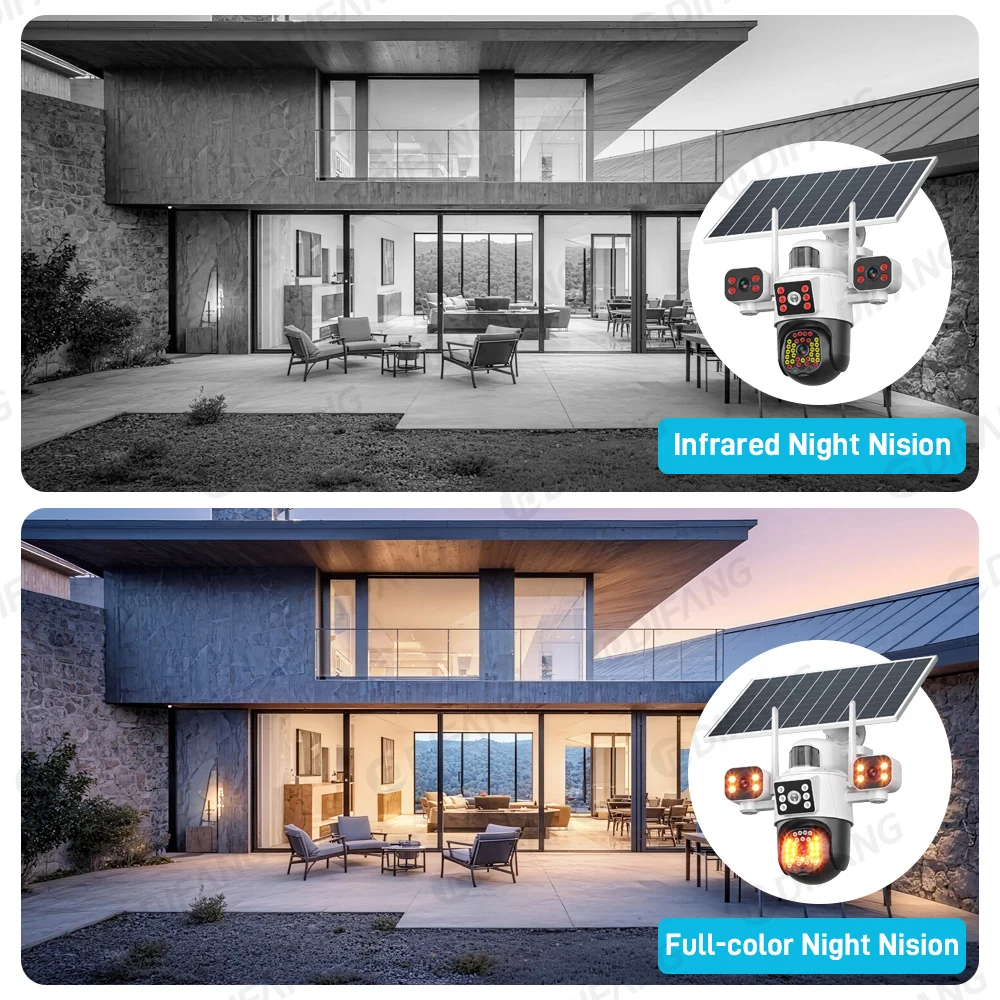 جديد 8K 15MP واي فاي كاميرا تعمل بالطاقة الشمسية بطارية ثلاثية الشاشة اللاسلكية 4G بطاقة Sim مراقبة بالطاقة الشمسية كاميرا IP حماية الأمن الشمسية CCTV