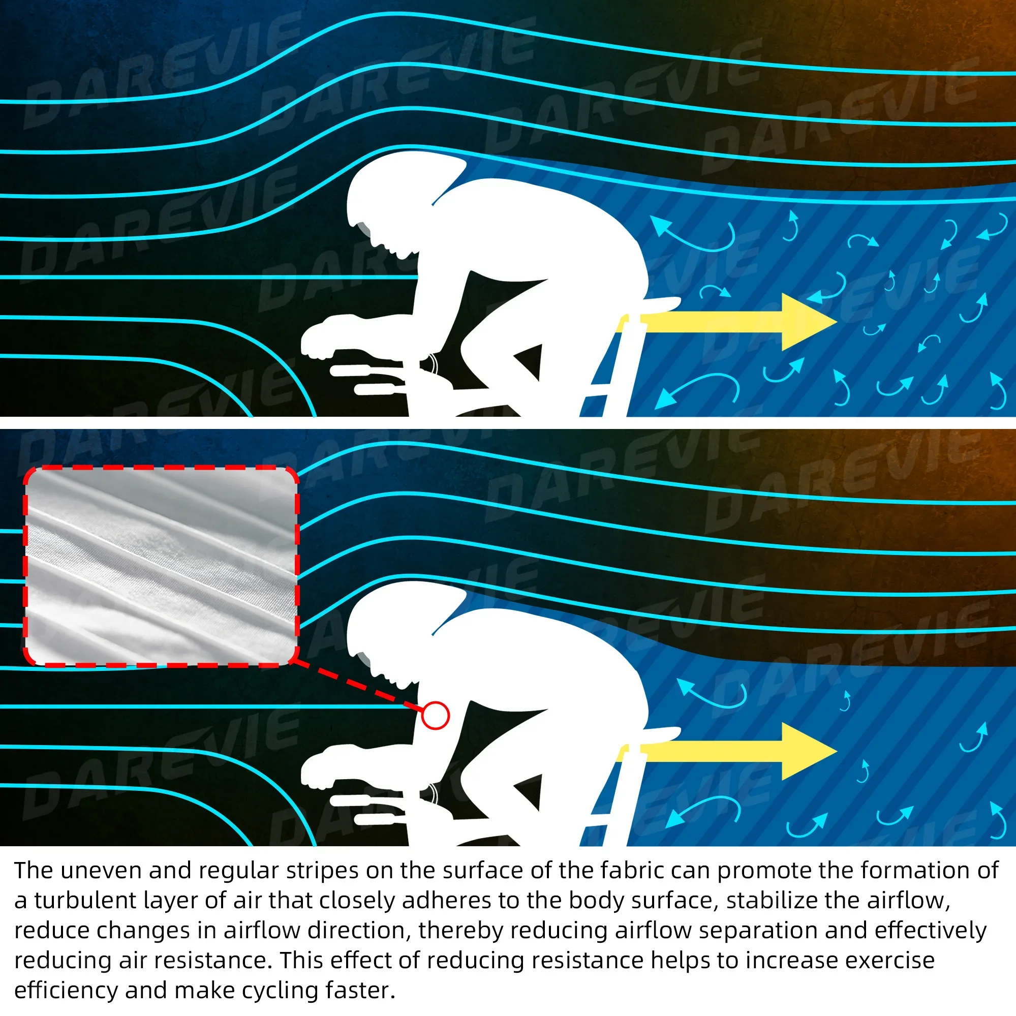 يمكن للخطوط غير المستوية والمنتظمة على سطح القماش أن تعزز تكوين طبقة مزعجة من الهواء تلتصق بشكل وثيق بسطح الجسم...