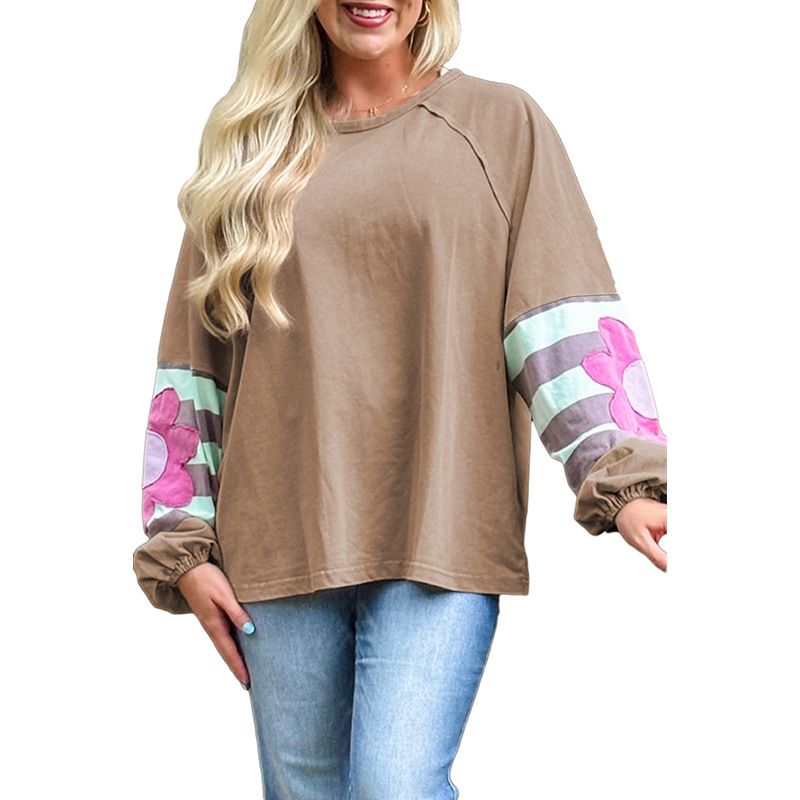 قميص نسائي حجم كبير فضفاض مع كتف متساقط ومطبوعة زهور جديدة لفصل الشتاء مع هودي