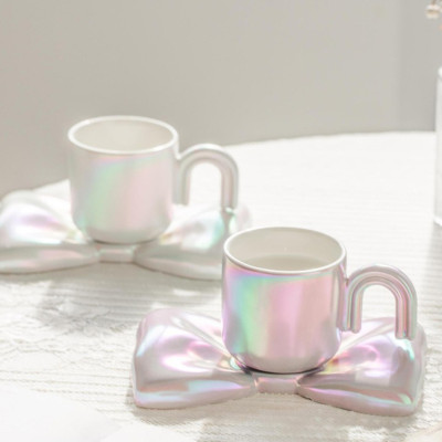 كوب قهوة سيراميك ملون مطلي بالكهرباء وصحون وملاعق ، كوب منزلي مقوس ، شاي بعد الظهيرة الرائع ، شاي زهور ، هدية ، ، ، ، ، ، ، ،