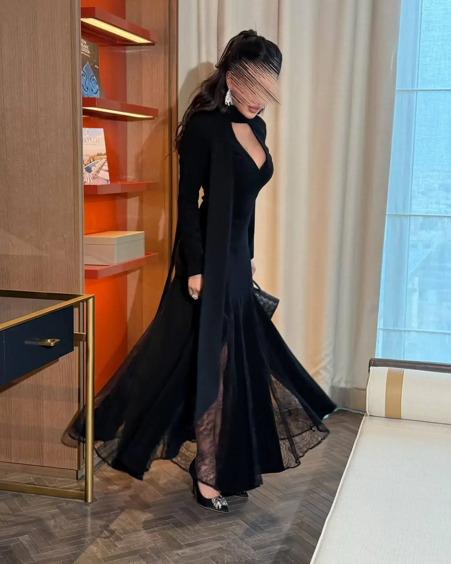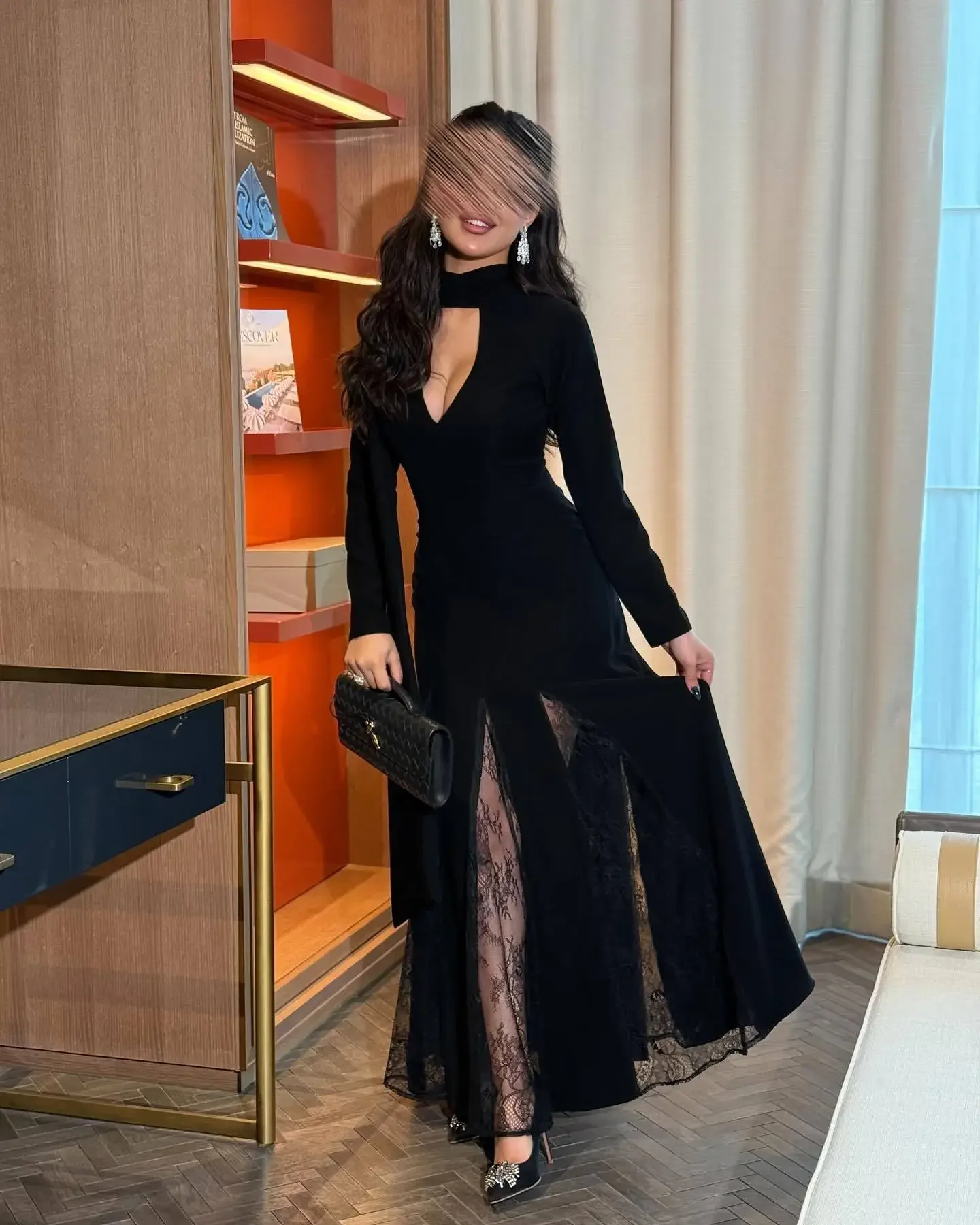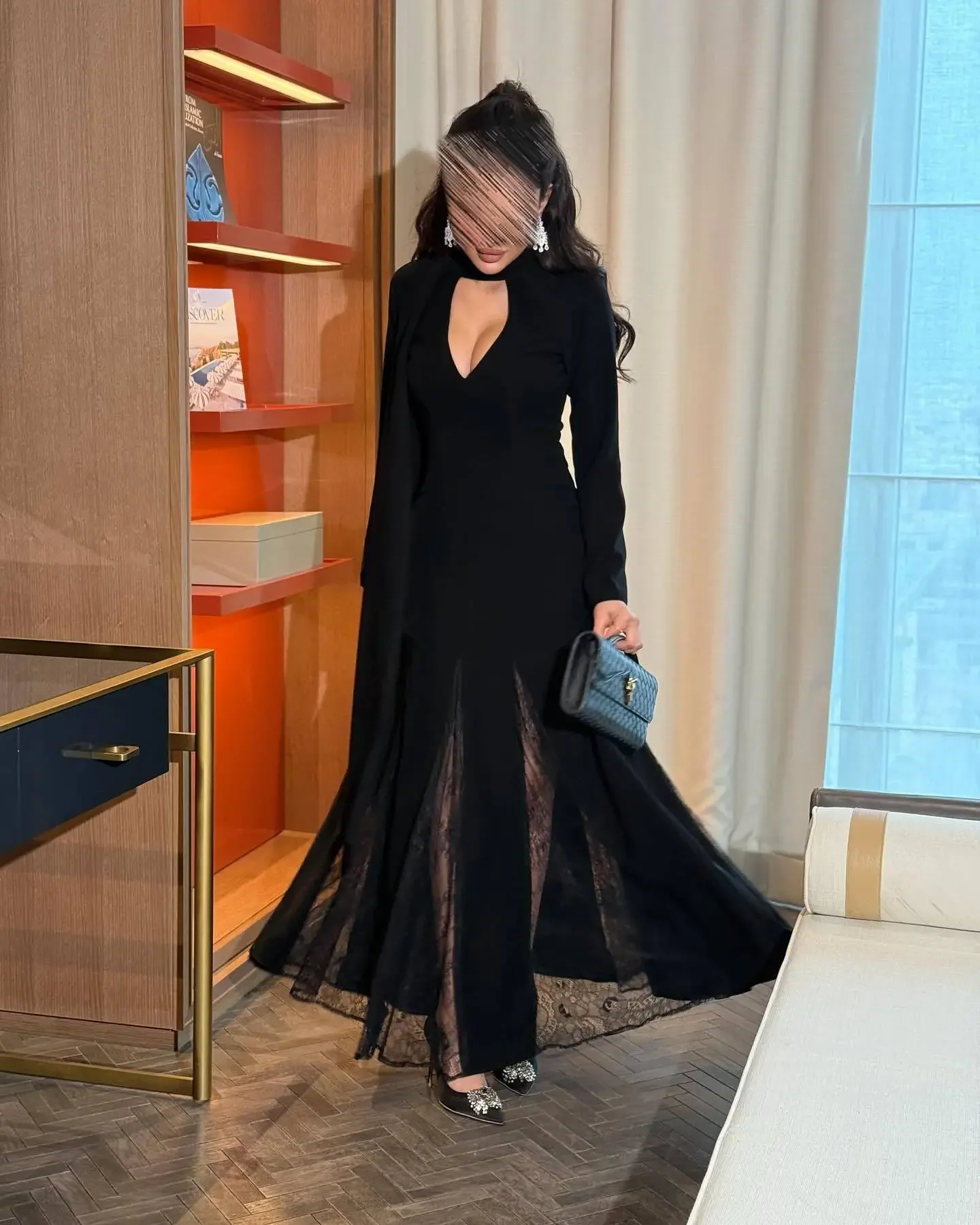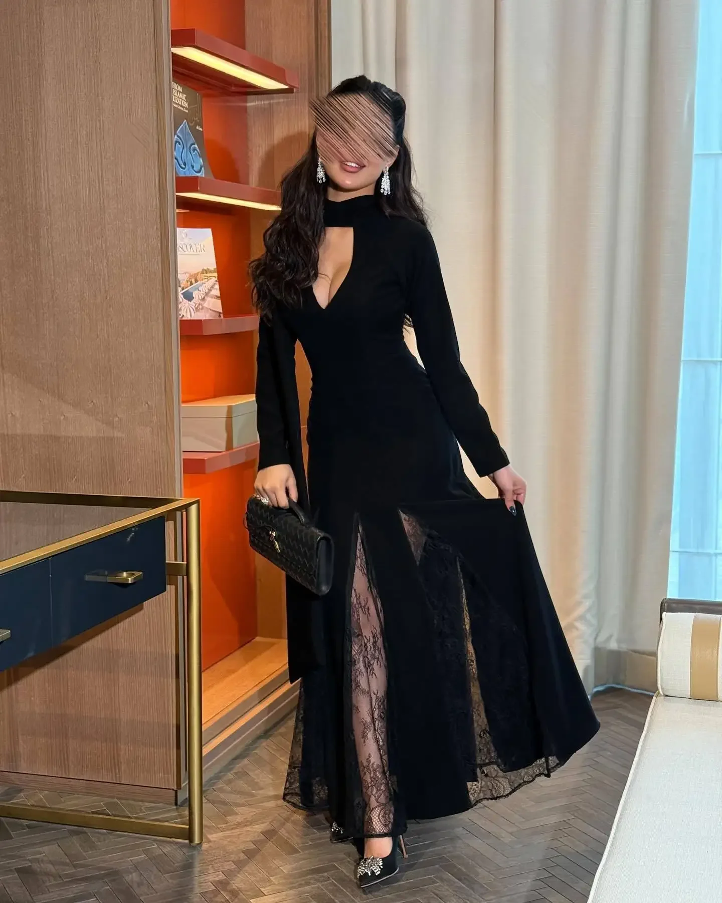 Retro Lace Long Sleeve round Neck Splicing Dress Elegant Vintage Style Women's Spring Summer New Fashion Cross-Border Gown