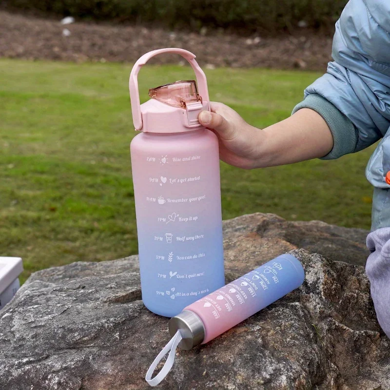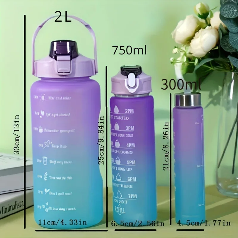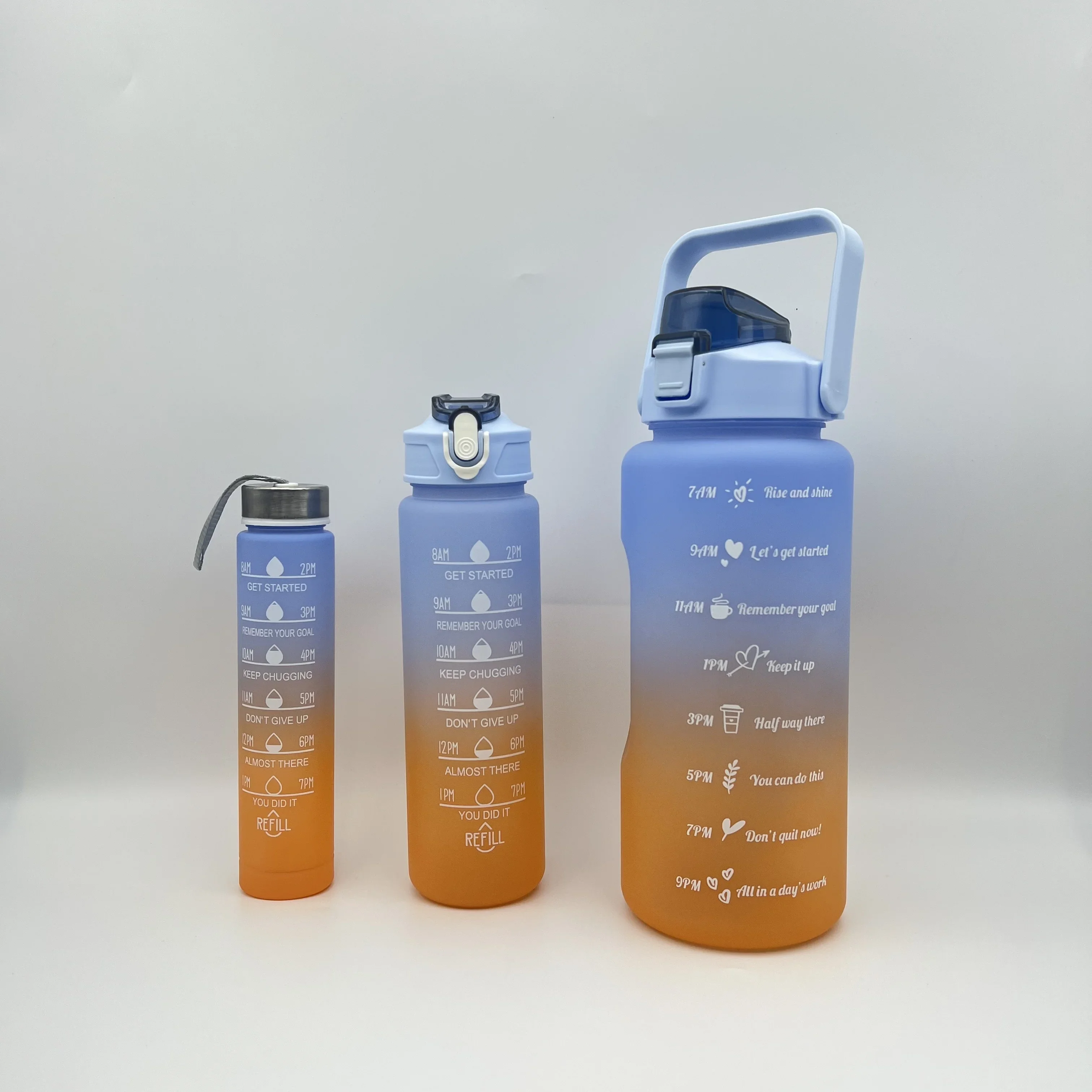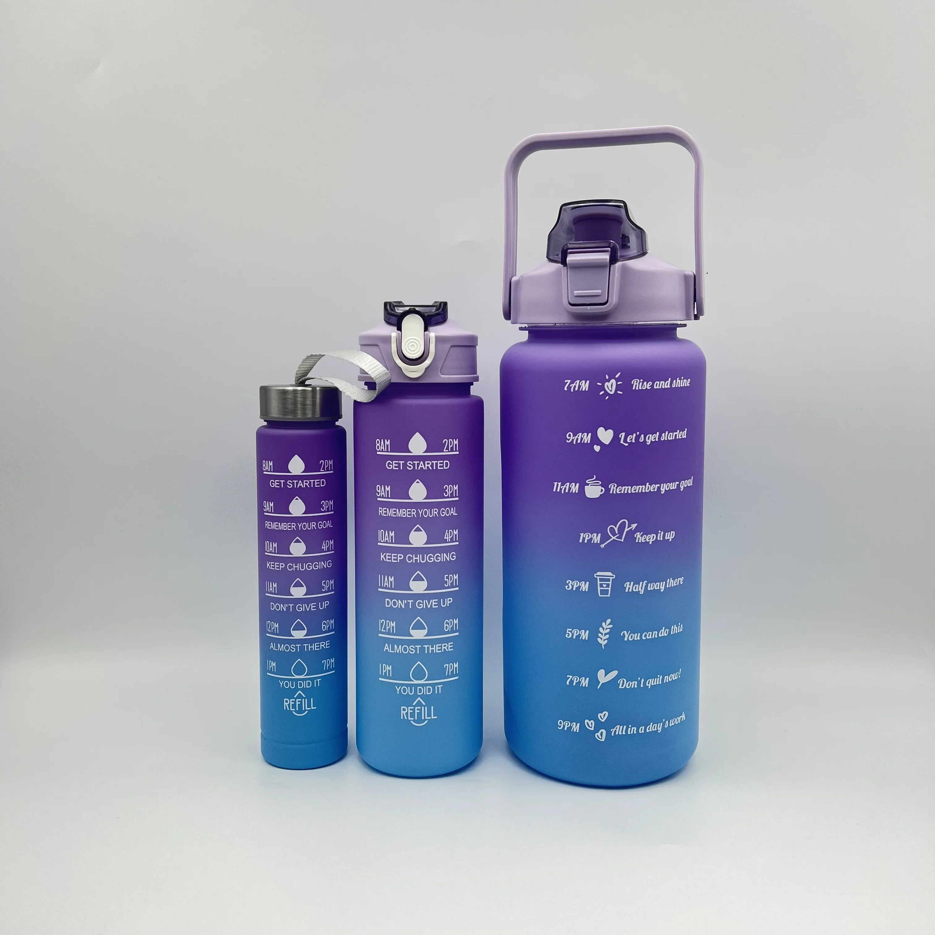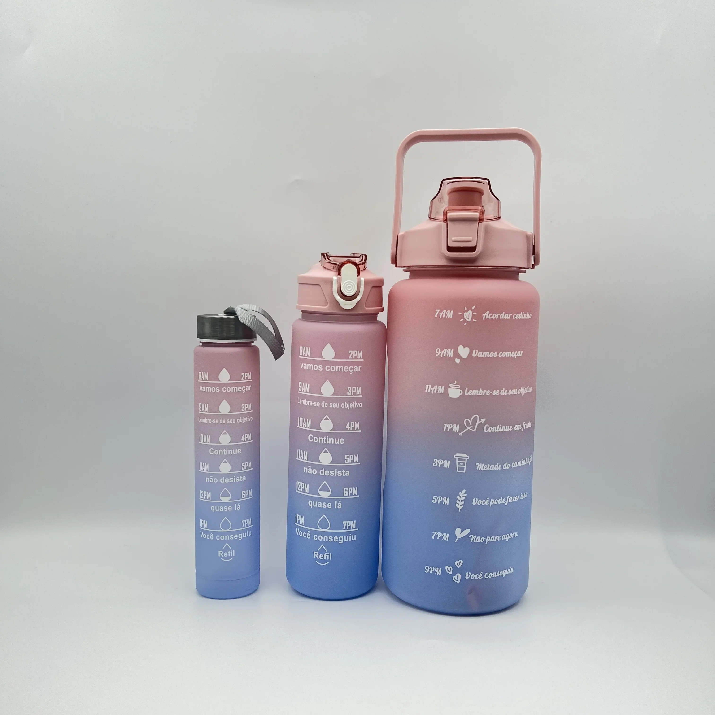 3 قطع من زجاجات المياه الرياضية المقاومة للتسرب ومضادة للانسكاب، ومقدمة من القش، وعلامة للوقت، تحفيزية للمكتب والمدرسة وصالة الألعاب الرياضية والتمرين