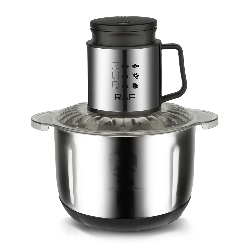 مفرمة لحم كهربائية سعة 5 لتر، محضر طعام متعدد الوظائف بقدرة 1000 وات، من الفولاذ المقاوم للصدأ مناسبة لأغذية الأطفال والفواكه والمكسرات والخضروات