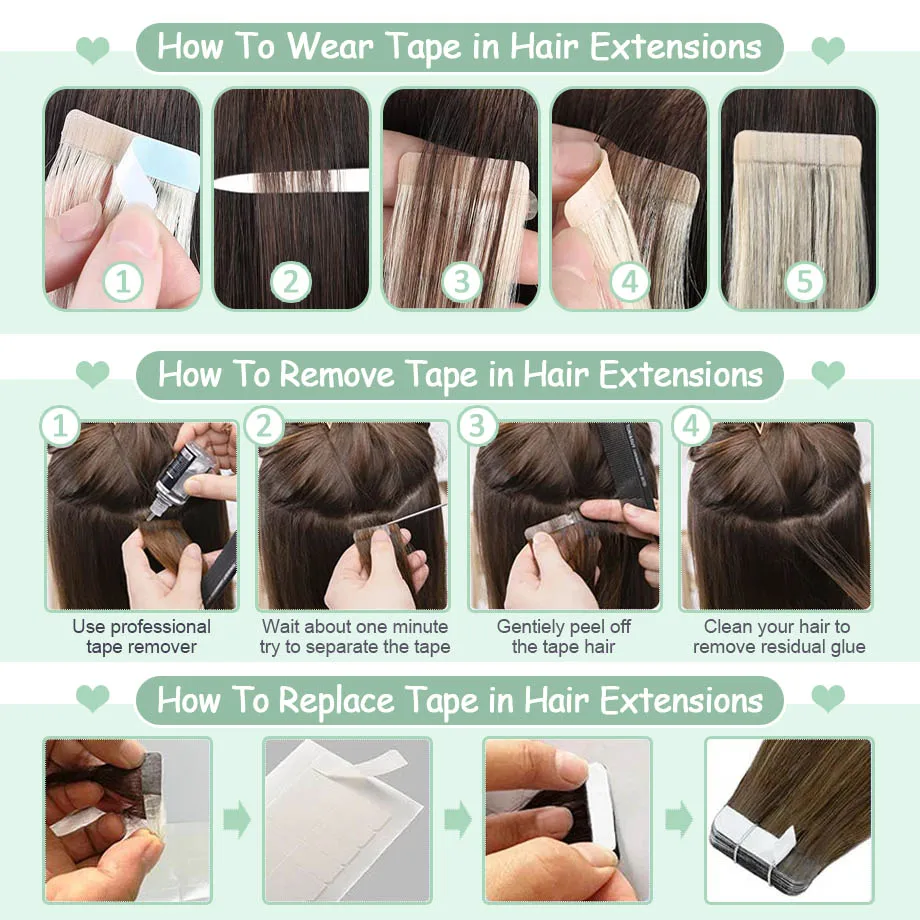 يمكنك غسل شعرك بعد 48 ساعة من ارتدائه ولا تغسل الشريط بقوة. لا تنام أبدًا مع وصلة رطبة.