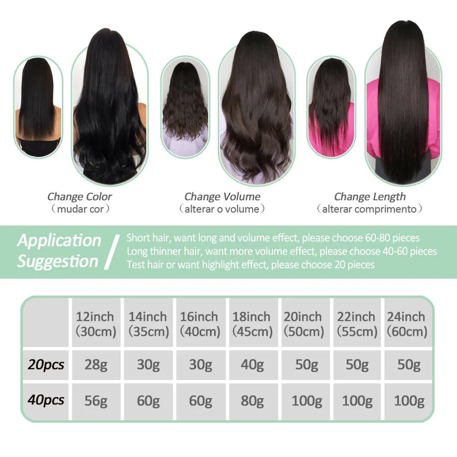 شعر أرق طويل ، تريد تأثير أكبر على الحجم ، يرجى اختيار 40-60 قطعة