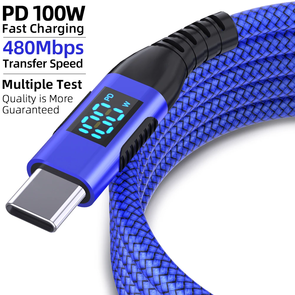 LAIHONEN 100 واط USB نوع C إلى USB CCable 100 واط شحن سريع سلك شاحن لأجهزة الكمبيوتر المحمول Xiaomi سامسونج USBC الحبل 1 متر 2 متر 3 متر