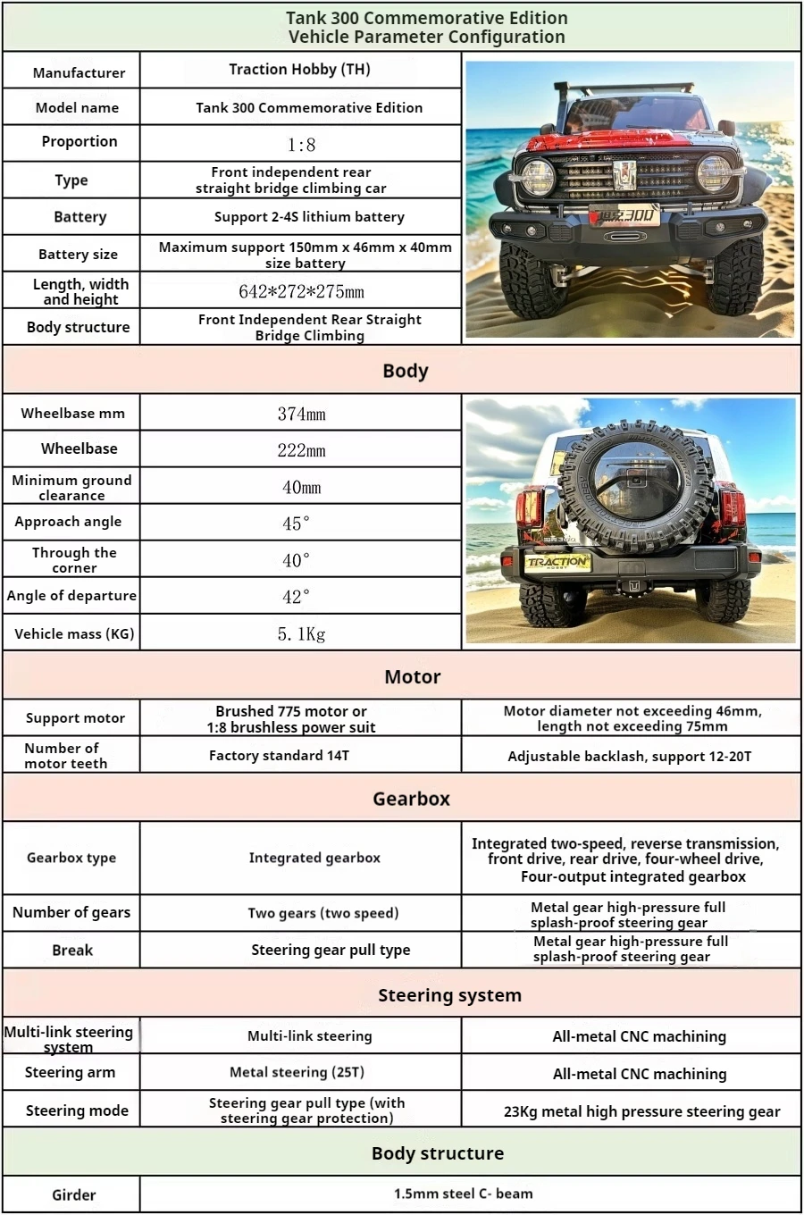 KM Thor 1/8 TANK300 سيارة التسلق الذكرى الثالثة الذكرى RC التحكم عن بعد الكهربائية على الطرق الوعرة قفل السيارة التفاضلي