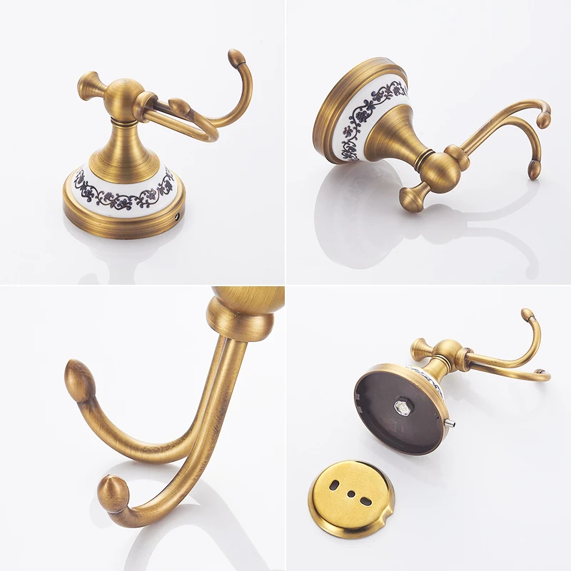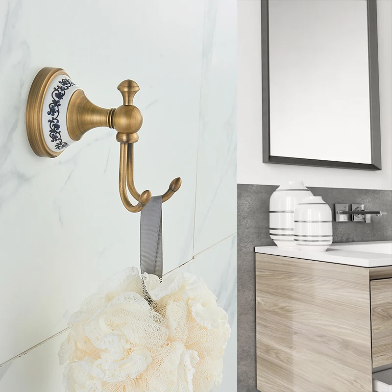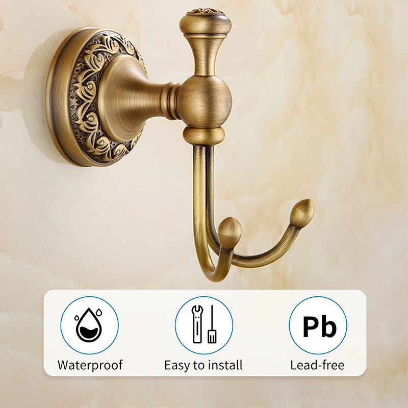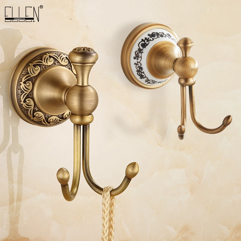 خطاف مزدوج نحاسي عتيق للحمام ، برونز ، رداء وخطاف مناشف ، عتيق ، زخرفي ، إكسسوارات مثبتة على الحائط ، ELF82