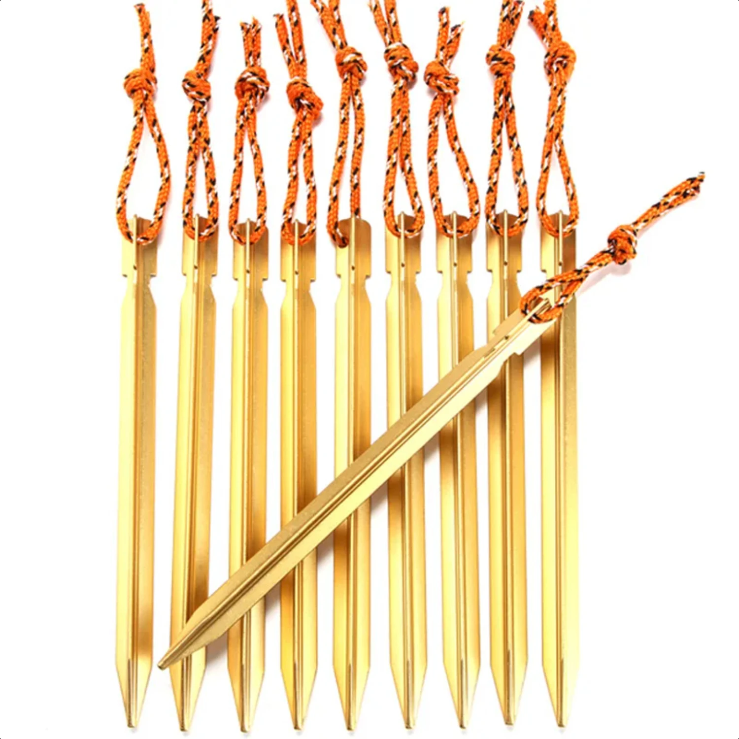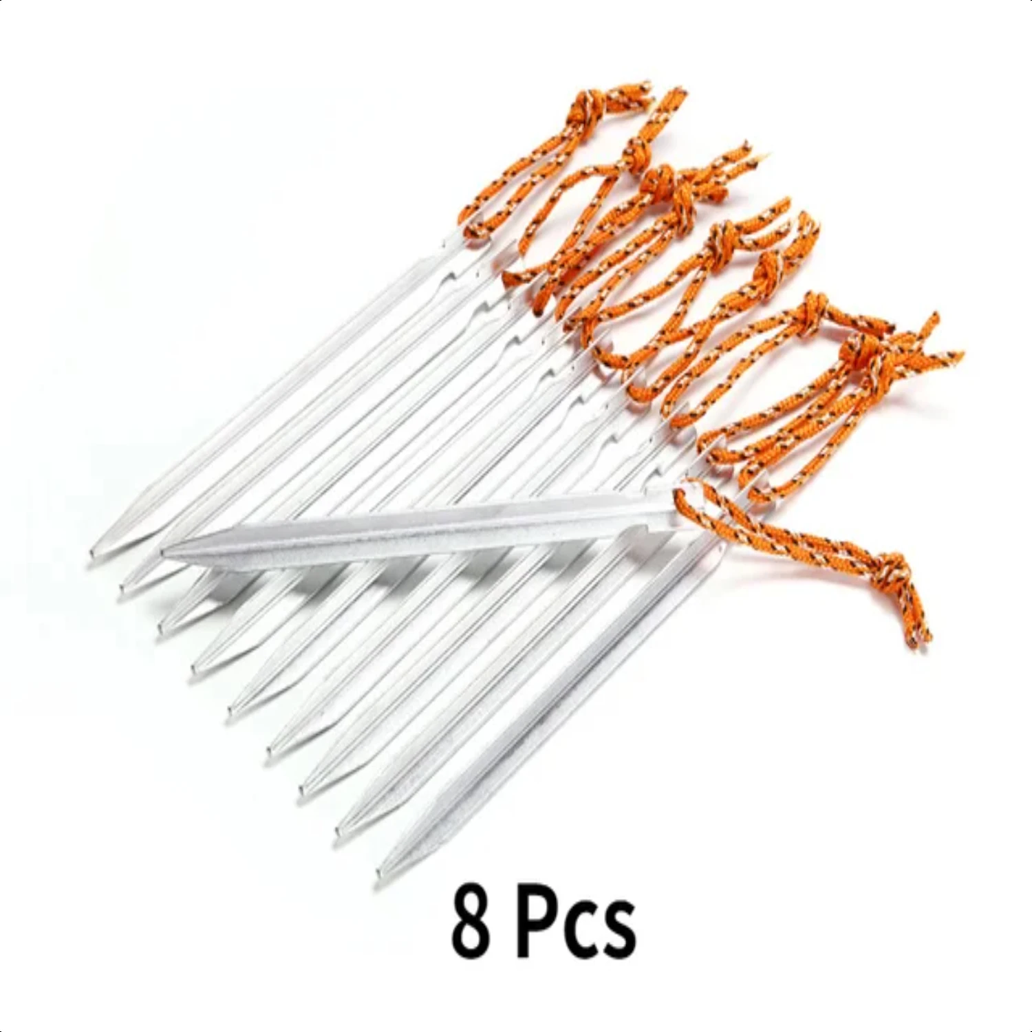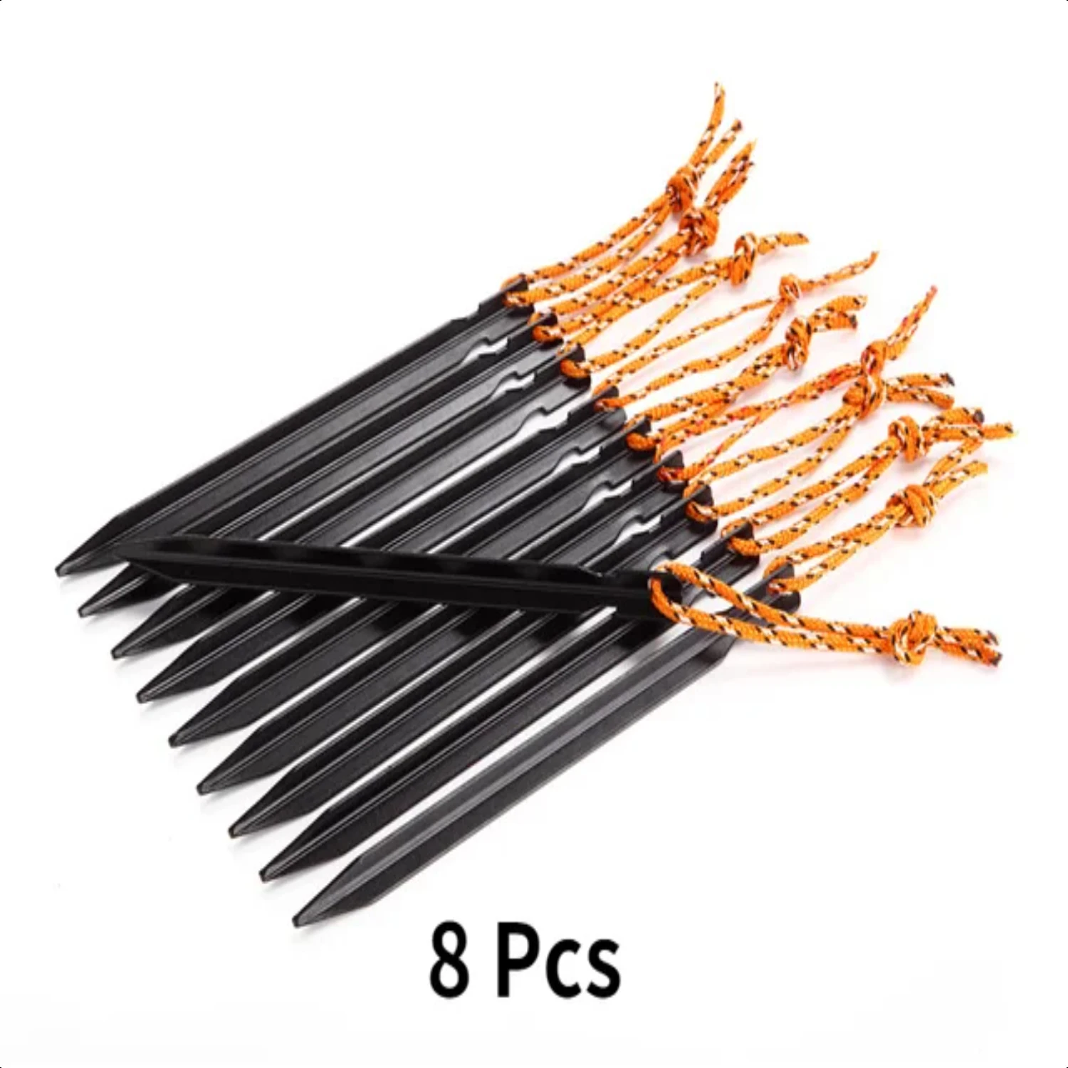مجموعة عالية الجودة وخفيفة الوزن ومتينة مكونة من 8 أوتاد خيمة من سبائك الألومنيوم الفاخرة بحبل - معدات أساسية للتخييم والمشي لمسافات طويلة،