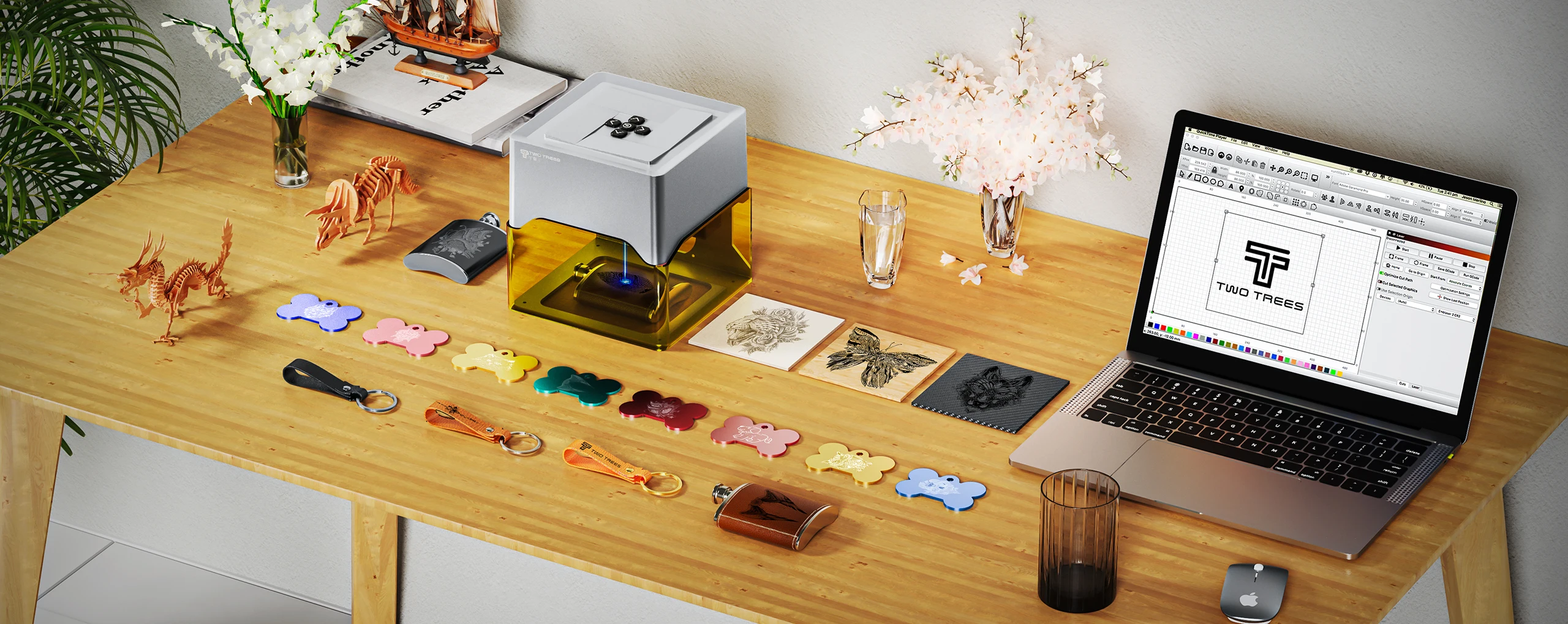 Twotrees TS1 المحمولة البسيطة الليزر حفارة ماكينة بتحكم رقمي بالكمبيوتر بلوتوث لتقوم بها بنفسك شعار آلة الوسم رسمت الكلب علامة ورقة الجلود الخشبية
