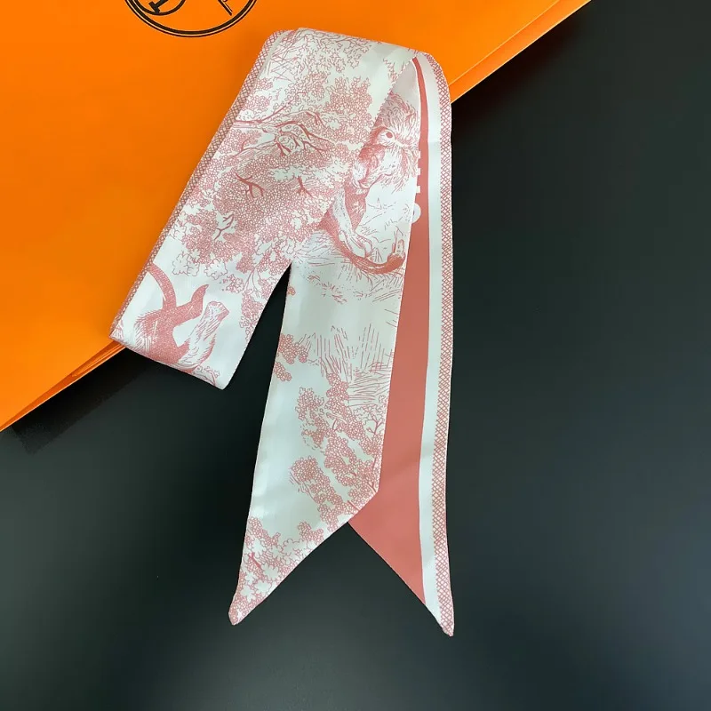 100*6cm Plant Jungle Printed Scarf for Women's Spring and Summer New Style Decorative Sharp Corner Streamer Hairband Small Scarf