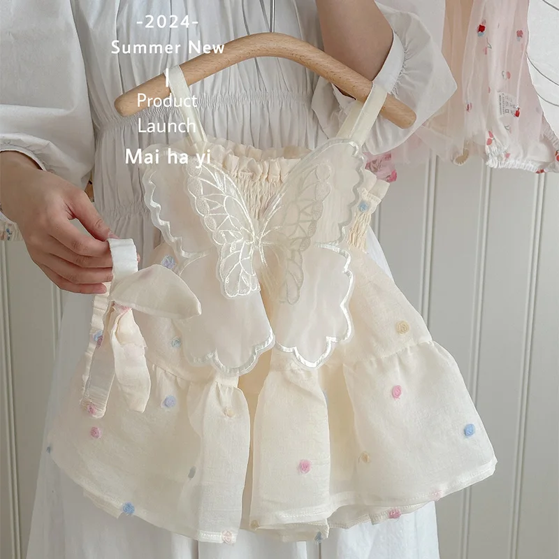 (0-3 سنوات) فستان الأميرة الصيفي للفتيات الصغيرات بنقاط ملونة فستان الأميرة اللطيف للفتيات بأجنحة فيونكة خلفية لحفلات أعياد الميلاد