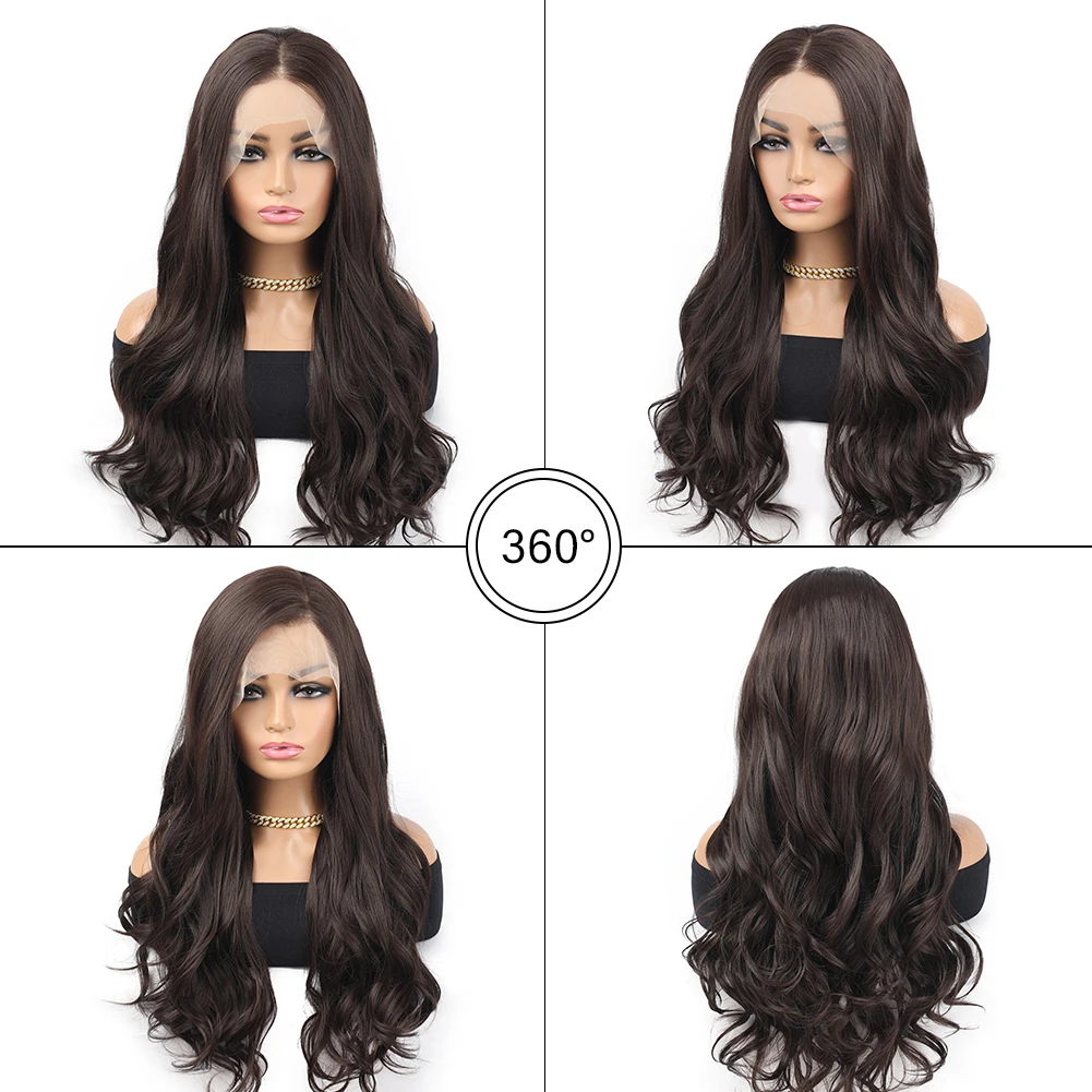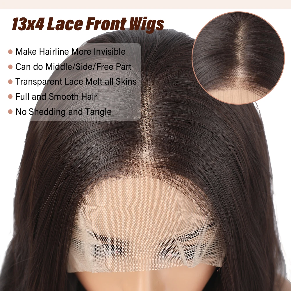 13×4 Transparent Lace Front Wigs Natural Wave Brown Synthetic Wig for Women Natural Hairline Heat Resistant wigs