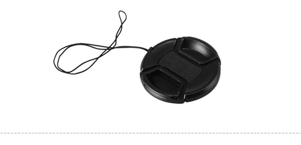 Universal 58mm Center Pinch Snap-on Front Lens Cap cover for canon nikon 46mm 49mm 52mm 58mm 62mm 67mm 72mm 77mm lens camera HOT This is high quality center snap on lens cap snaps onto the front of the lens with a spring type retainer ring. The lens cap protect the front lens of your lenses from dust, smudges and scratches. The center snap on lens cap design allows it to use for the lens with hood, whether your hand are tender or coarse, it will take on or off easily when you using the hood. Note: The Lens Cap is not for Sony Original, but the quality is good. -With an anti-missing cord that can prevent it from missing. -Brand new, never used -color : black Package contains: 1pcs x Lens Cap with Cord