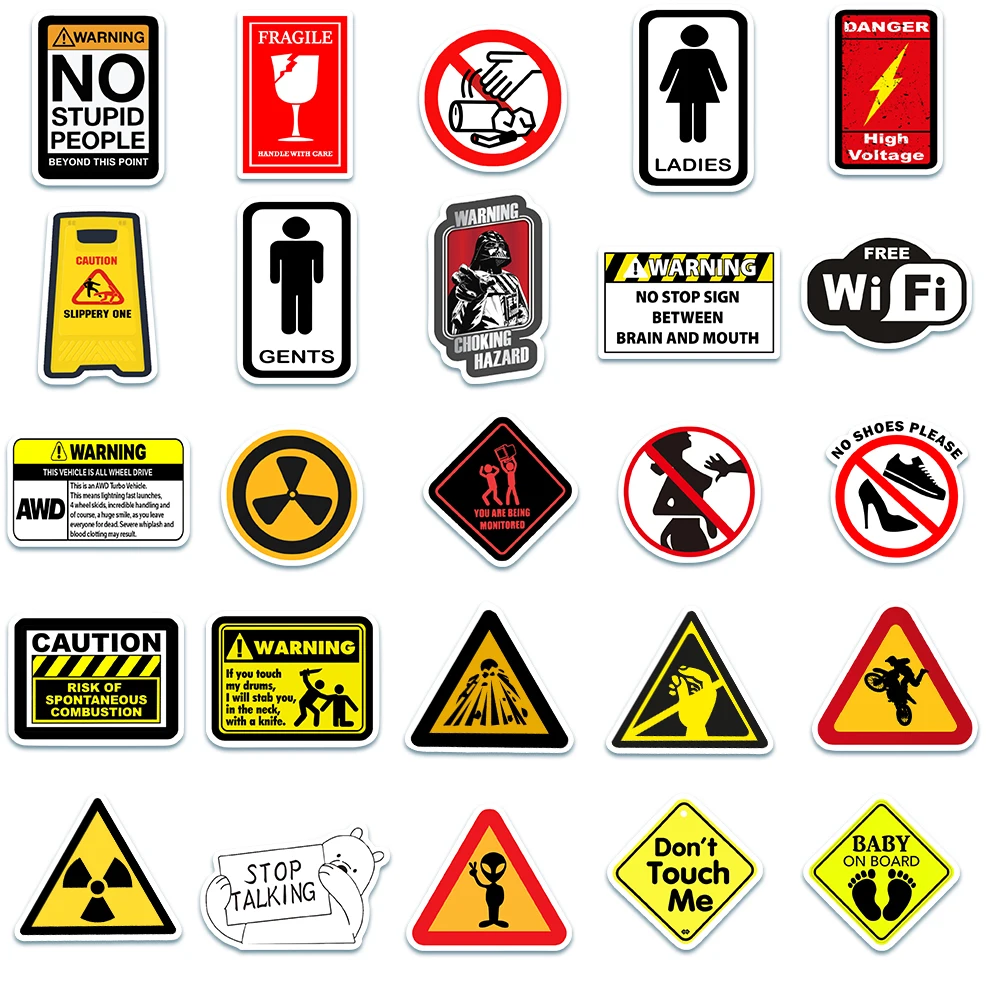 50 قطعة ملصقات تحذير مضحكة خطر حظر علامة فيني ملصق سيارة سكوتر دراجة نارية حقيبة انتهاك ملصق لعبة كلاسيكية