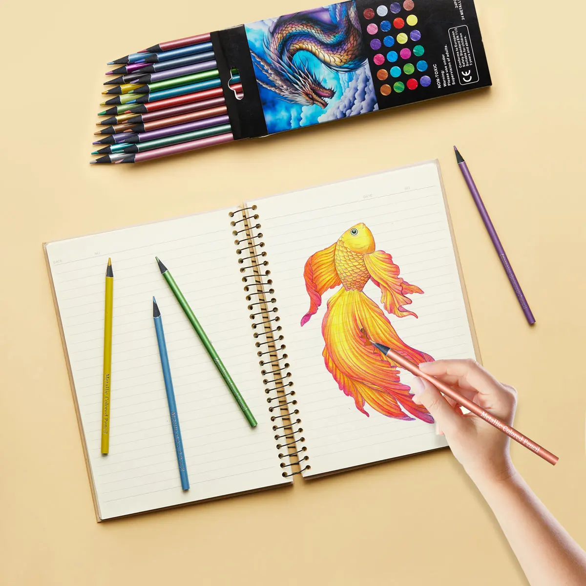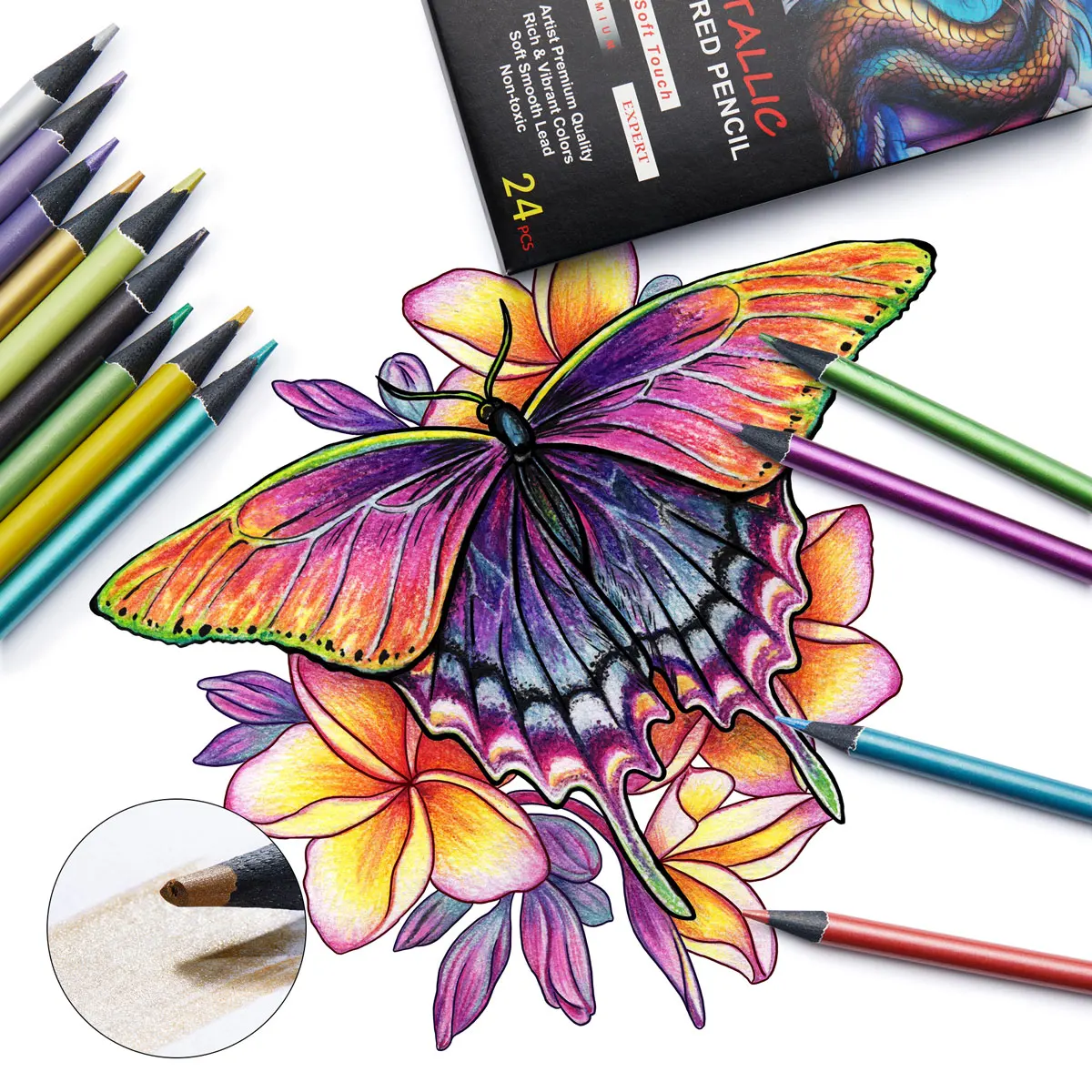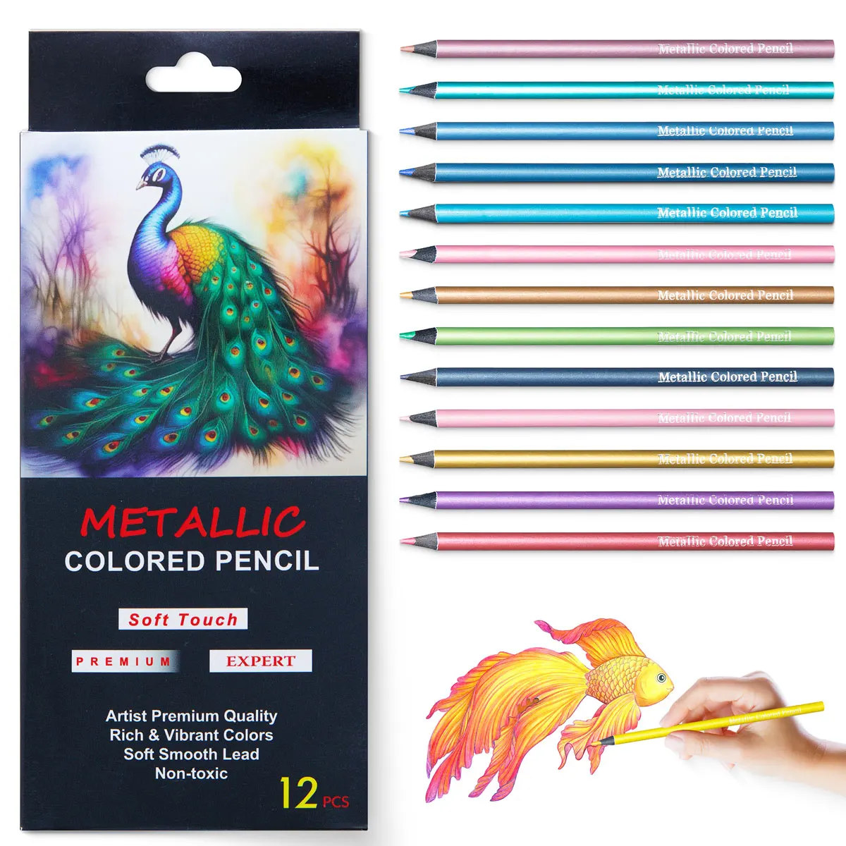 12/24 لونًا قلم رصاص ملون معدني مجموعة رسم ورسم قلم رصاص ملون DIY لوازم فنية تلوين لوحة منزلية