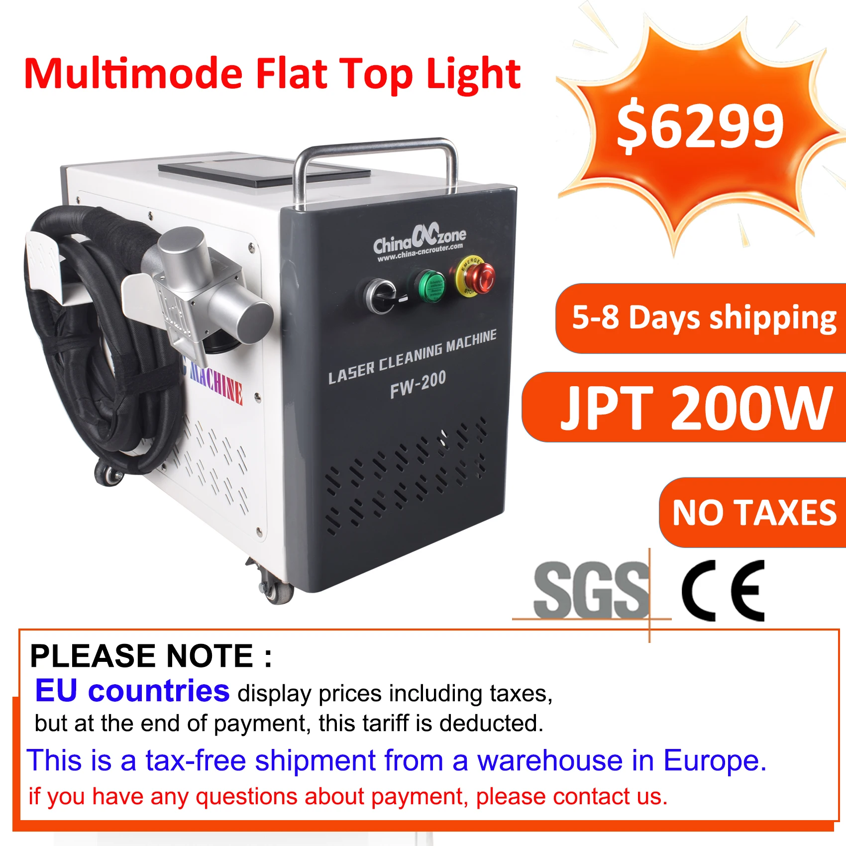 لا ضريبةيتم الشحن من مستودع الاتحاد الأوروبي إلى باب منزلك بالشاحنة، حوالي 3-7 أيام.