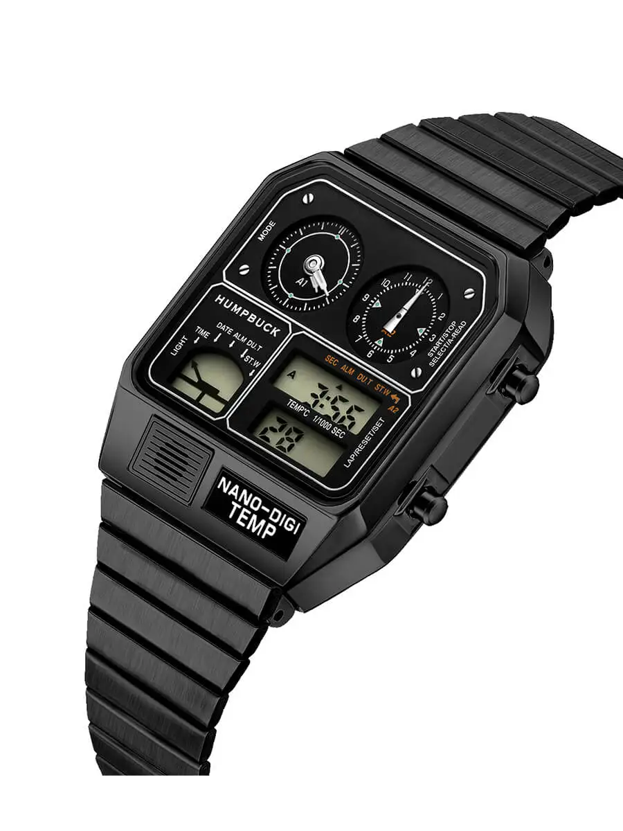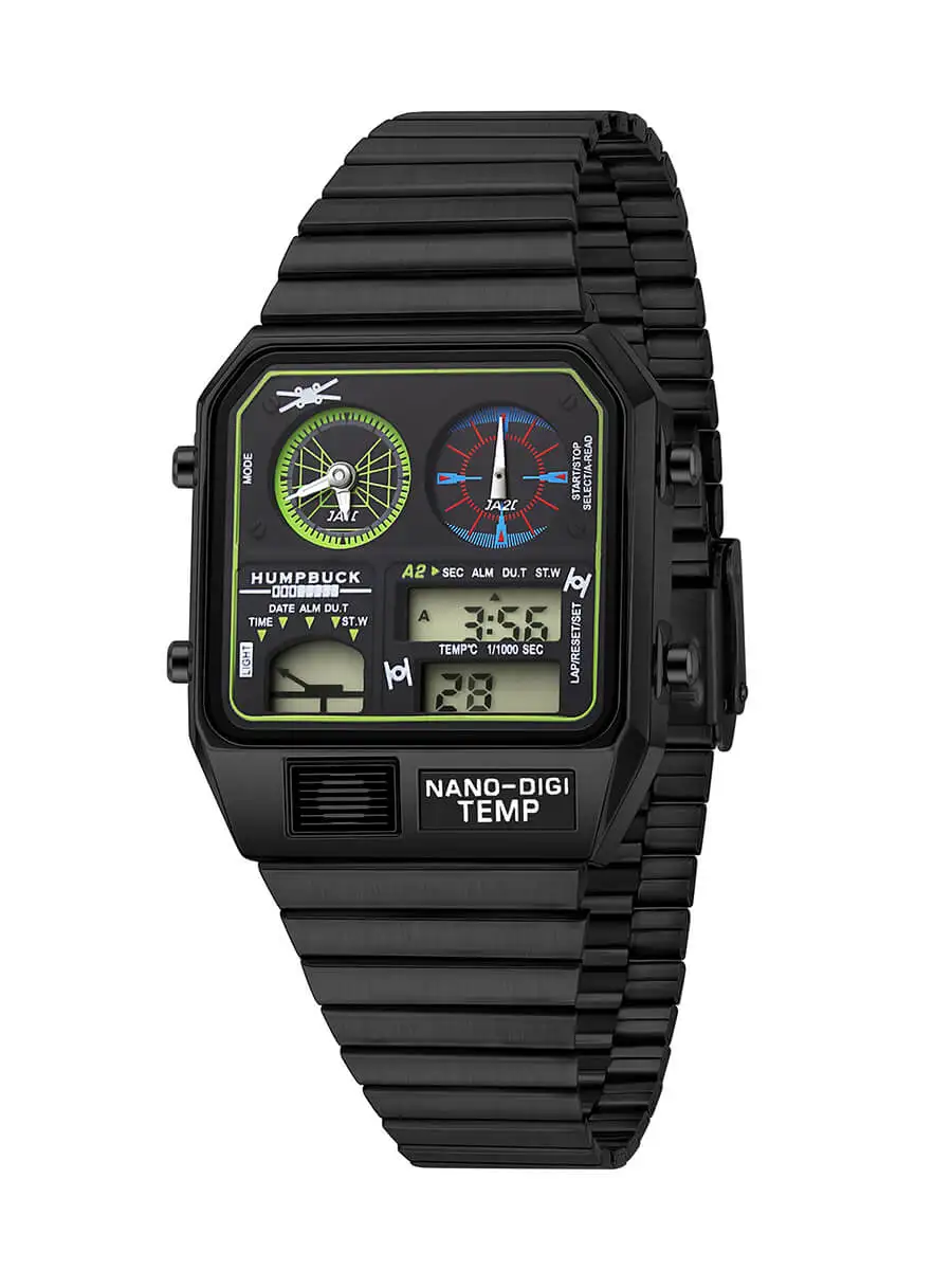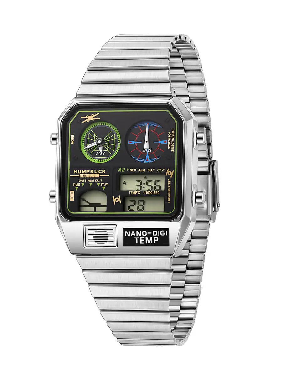 HUMPBUCK DIGITEMP Classic Design Stainless Steel Watches for men with LED Digital Date and day Display and Temperature Calendar