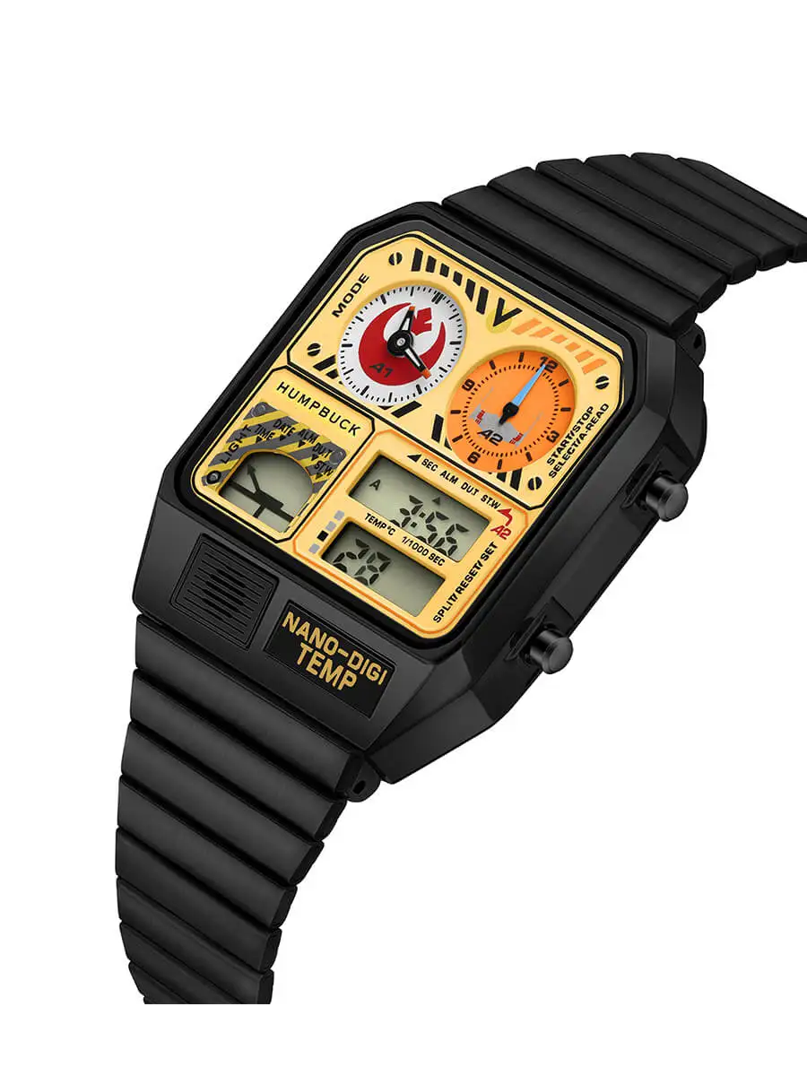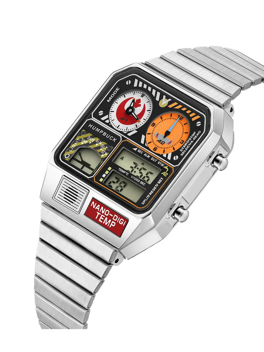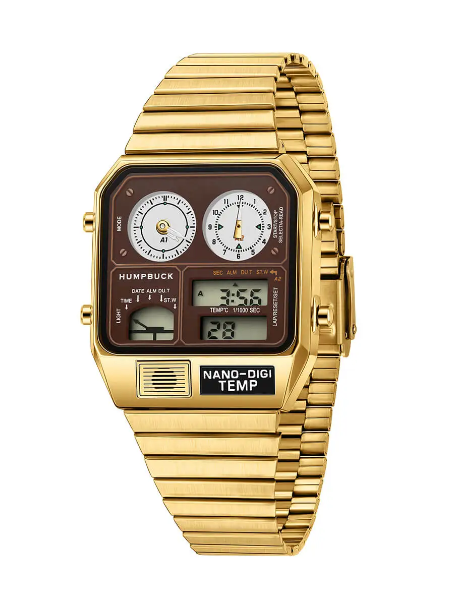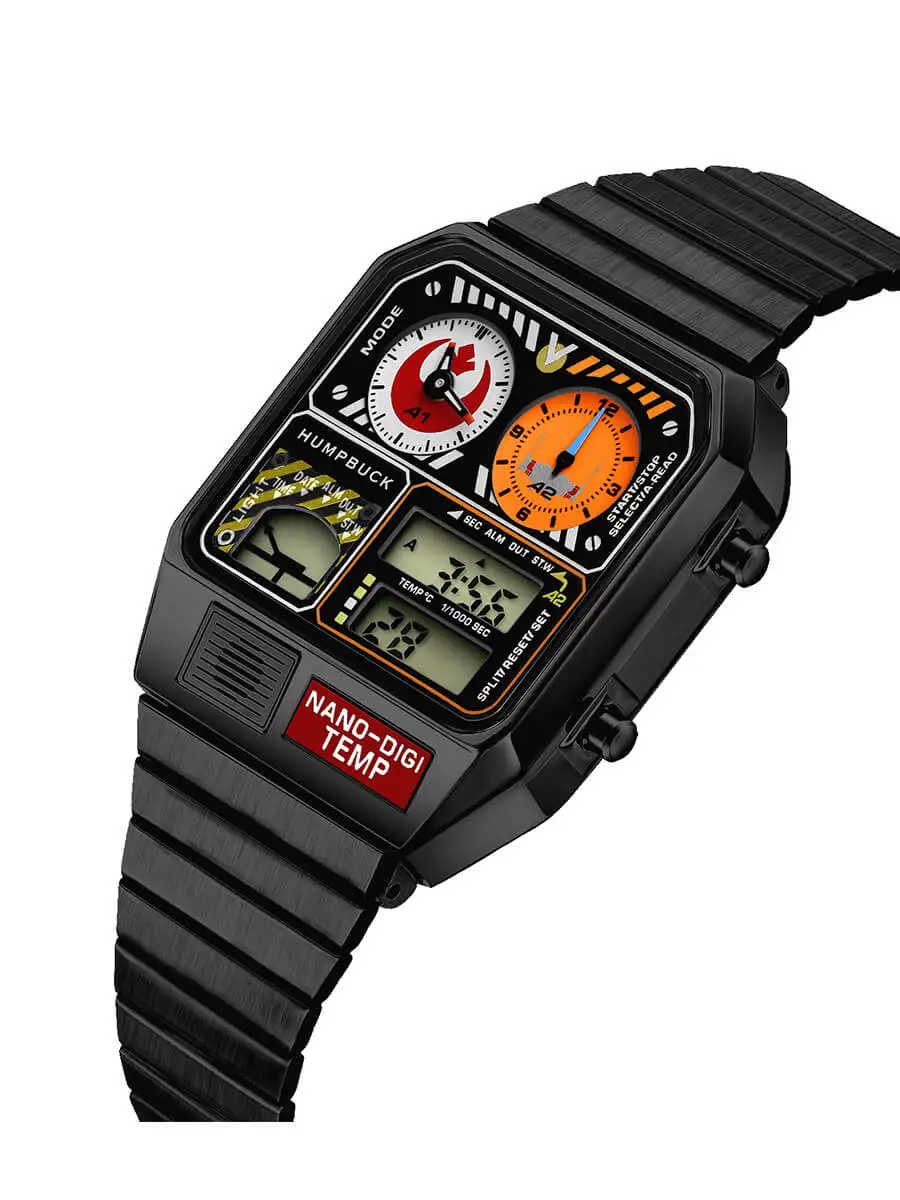 HUMPBUCK DIGITEMP Classic Design Stainless Steel Watches for men with LED Digital Date and day Display and Temperature Calendar