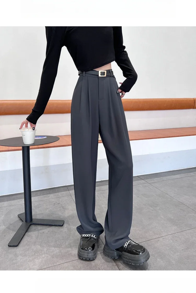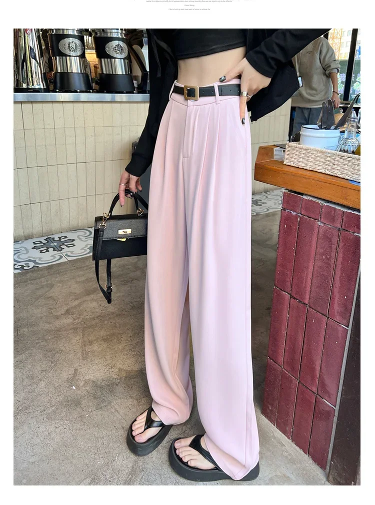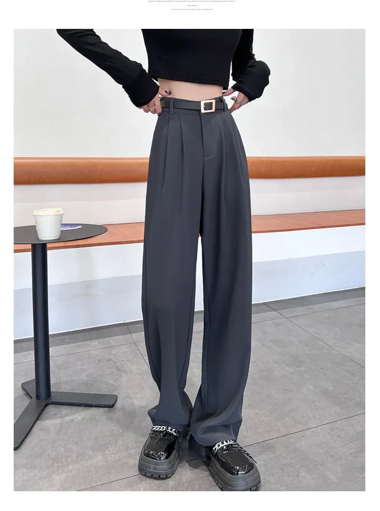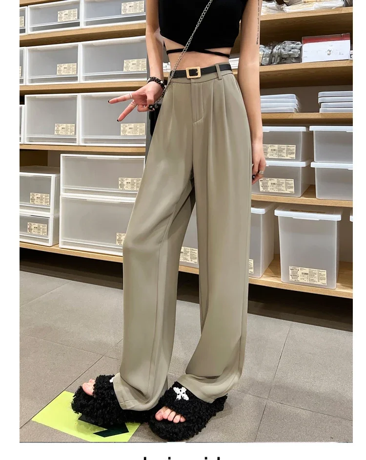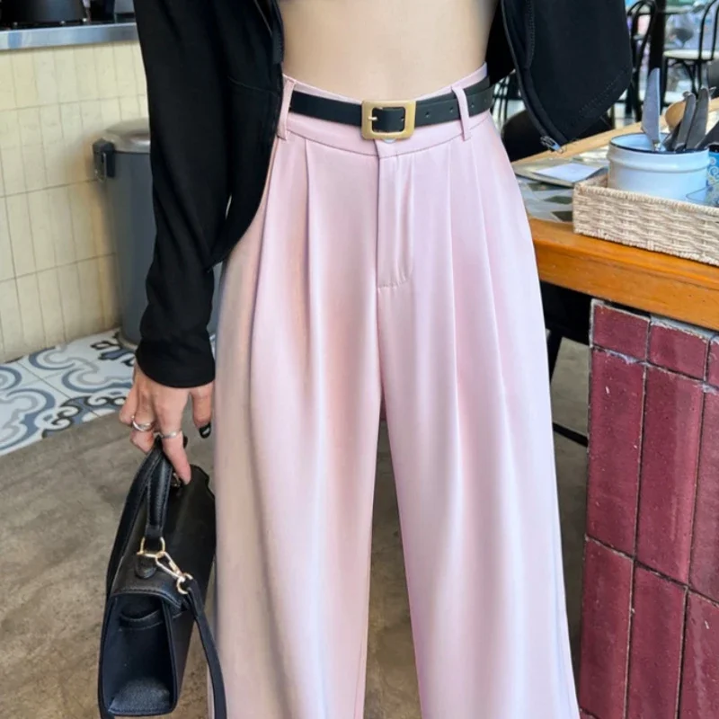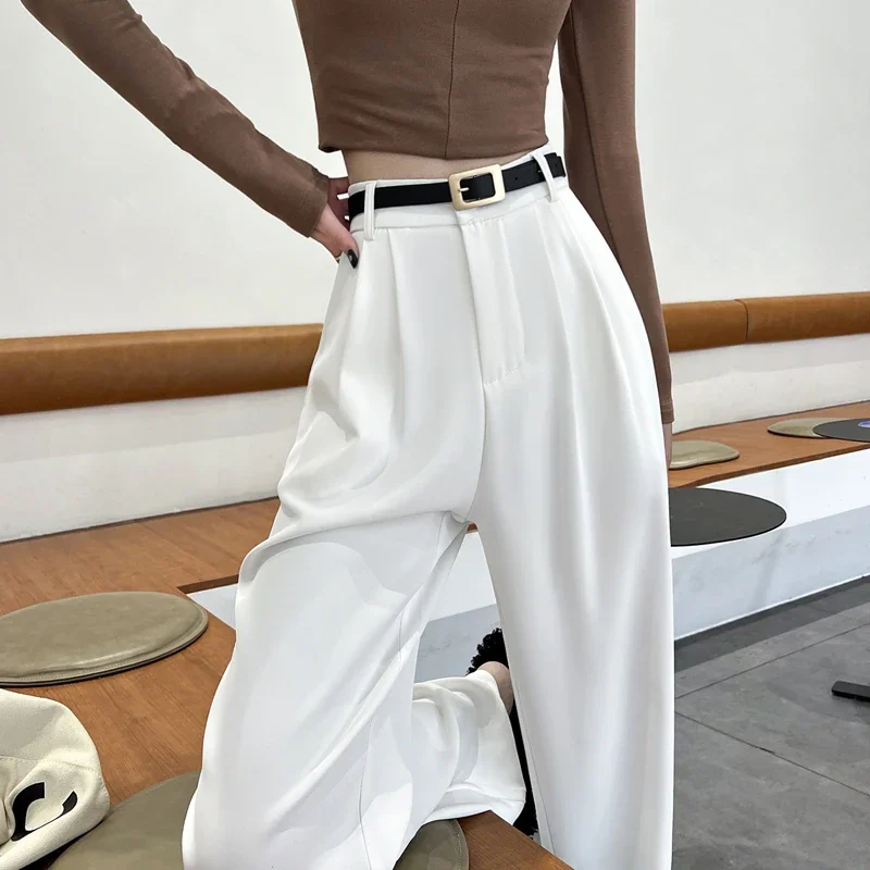 2025 Spring Summer New High Waist Women's Wide Leg Pants with Belt High Waist Straight Casual Loose Floor Length Pants Female