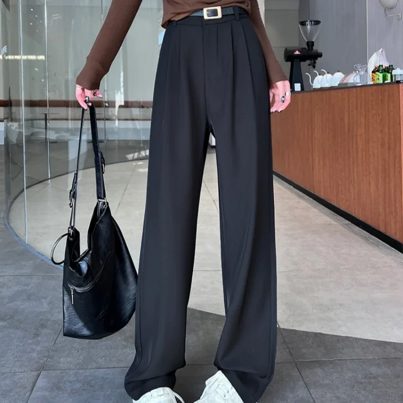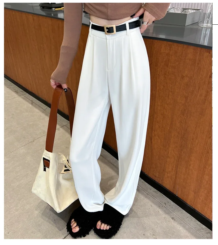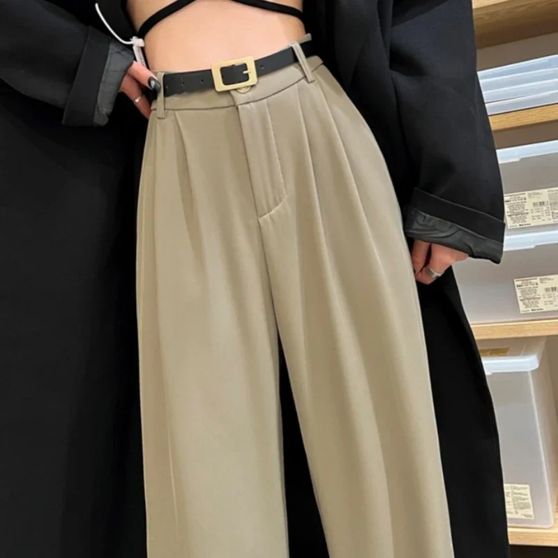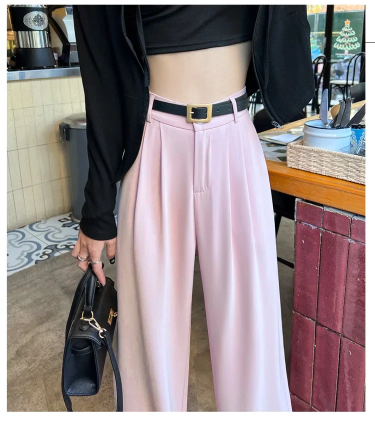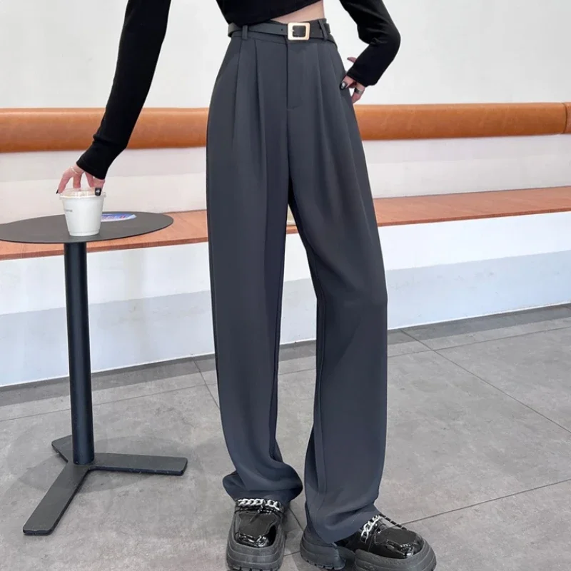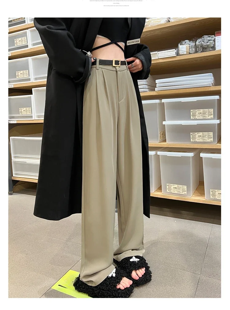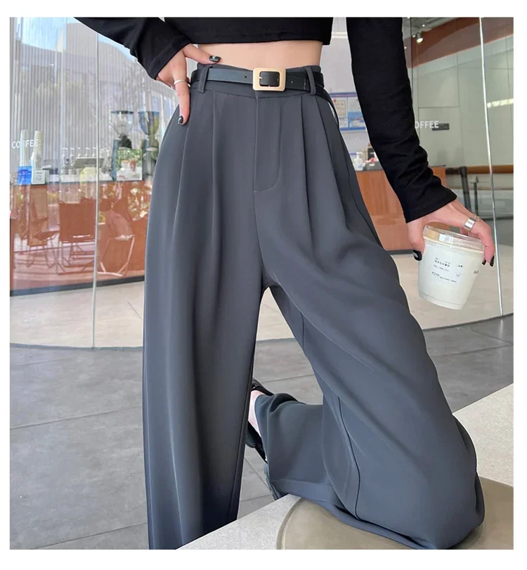 2025 Spring Summer New High Waist Women's Wide Leg Pants with Belt High Waist Straight Casual Loose Floor Length Pants Female