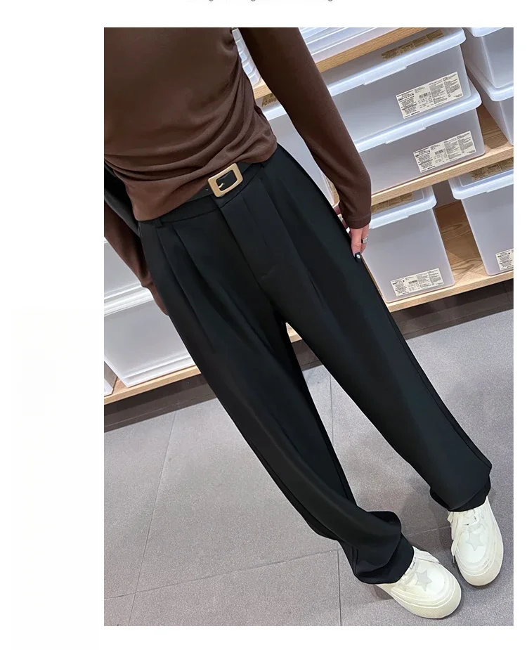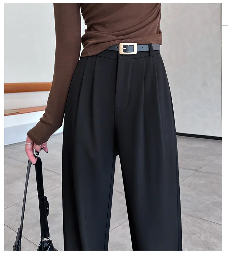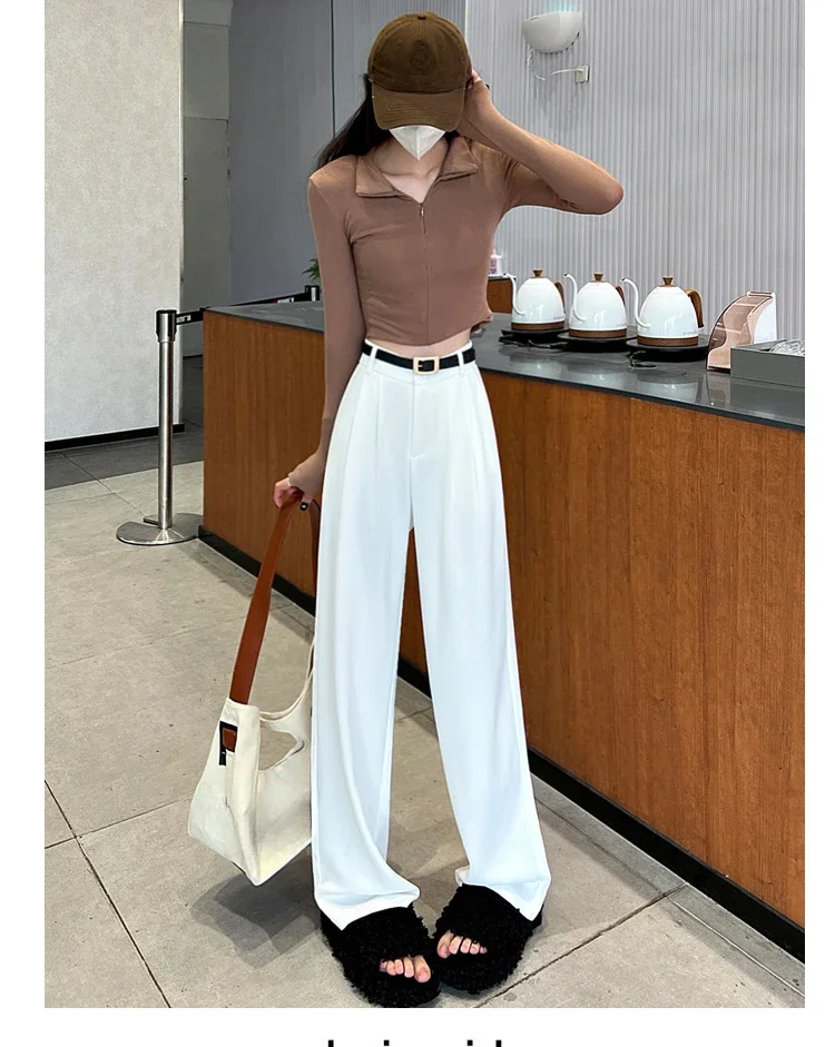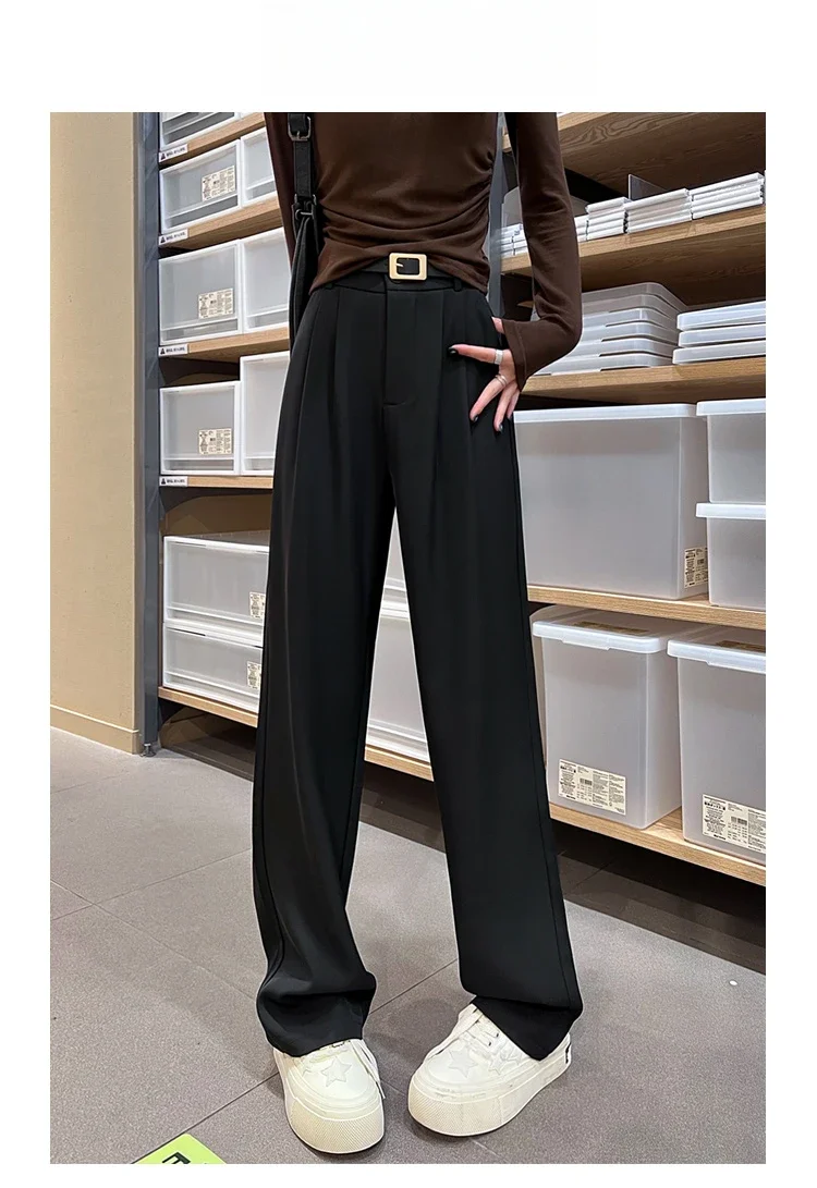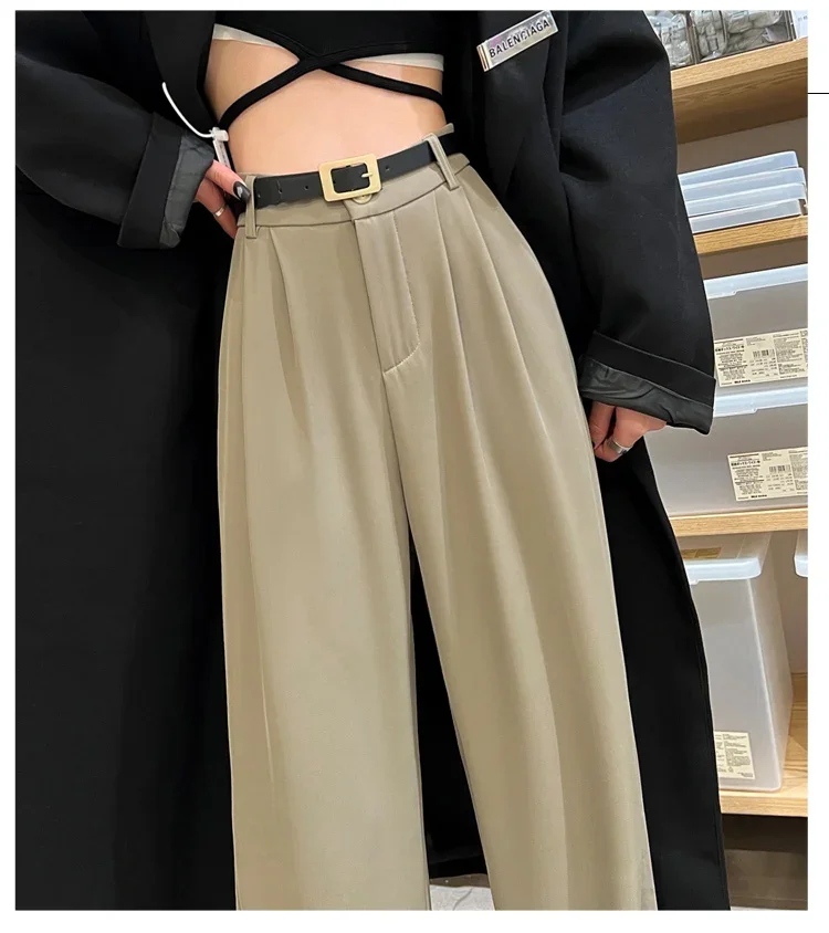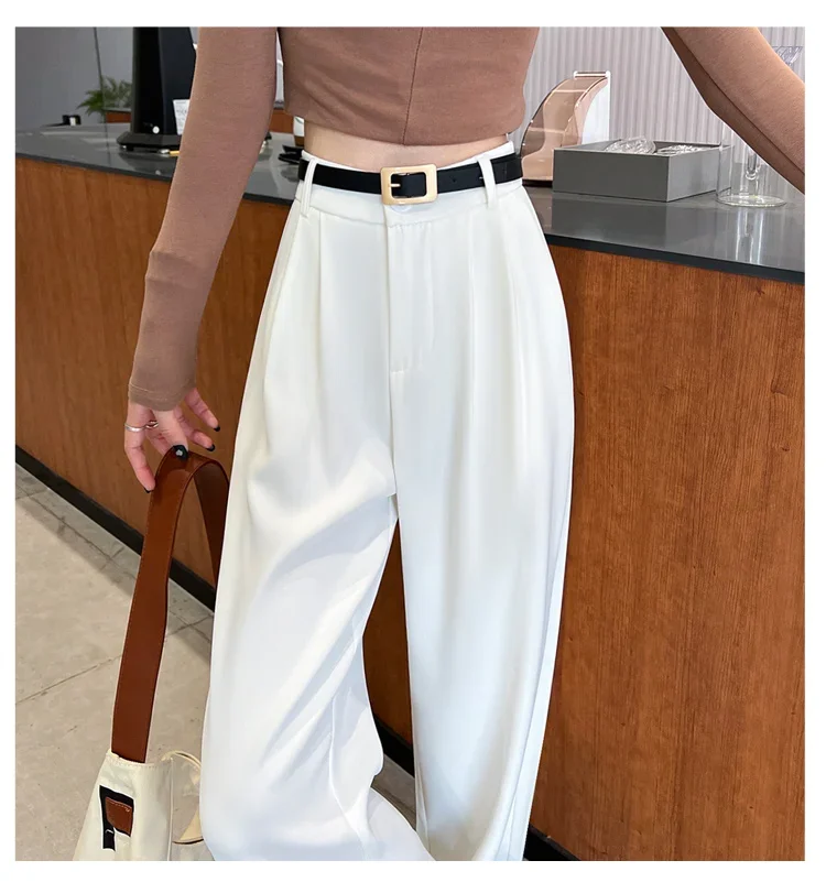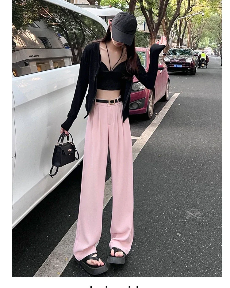 2025 Spring Summer New High Waist Women's Wide Leg Pants with Belt High Waist Straight Casual Loose Floor Length Pants Female