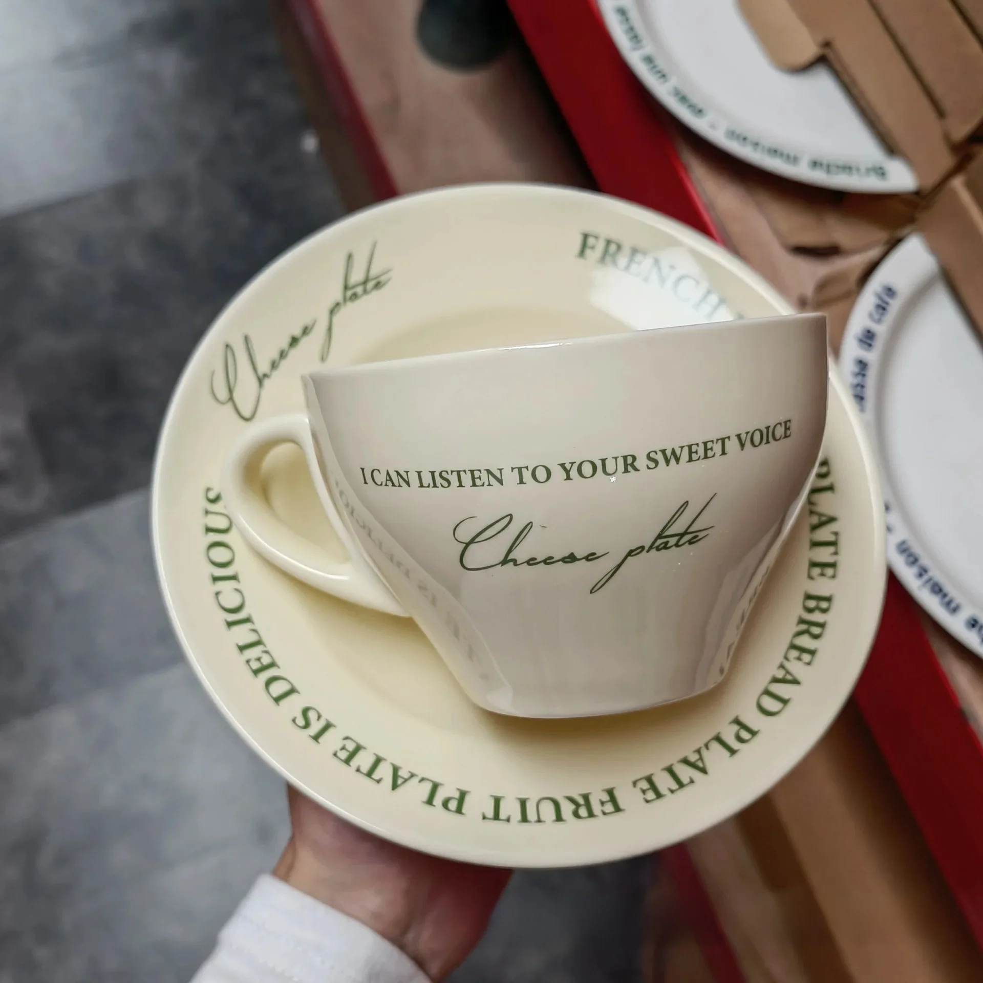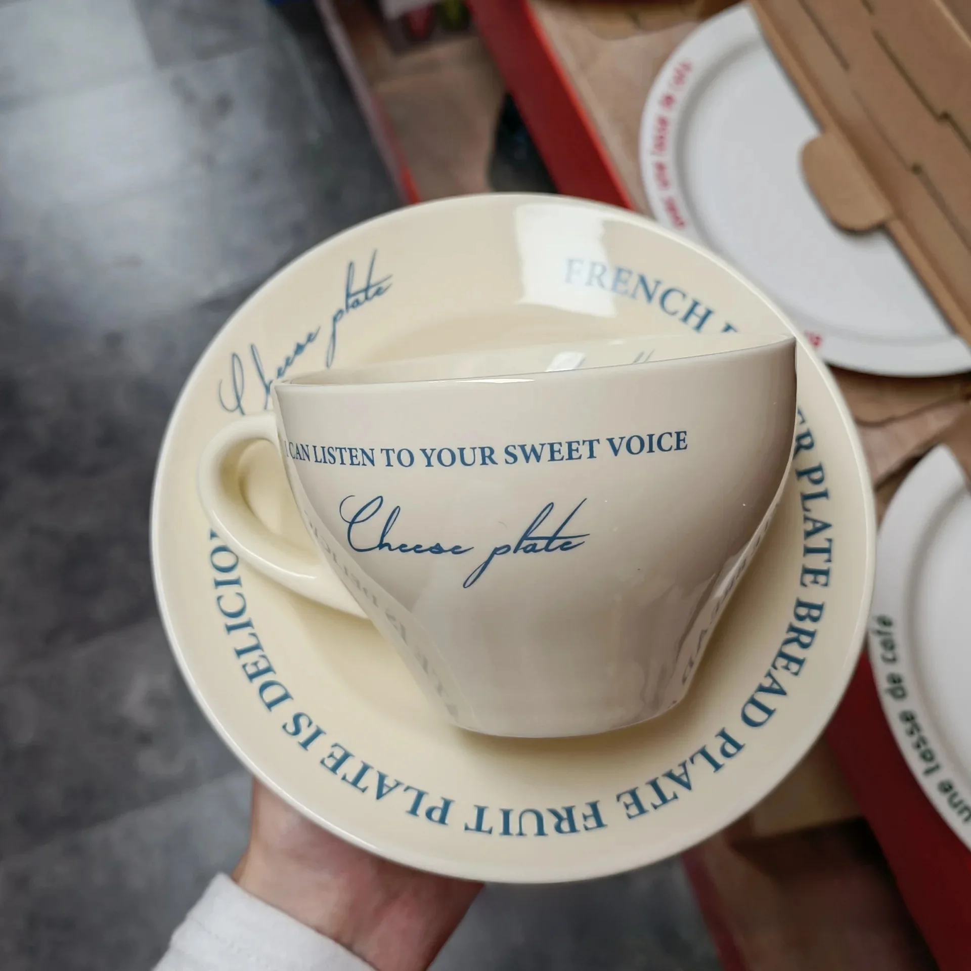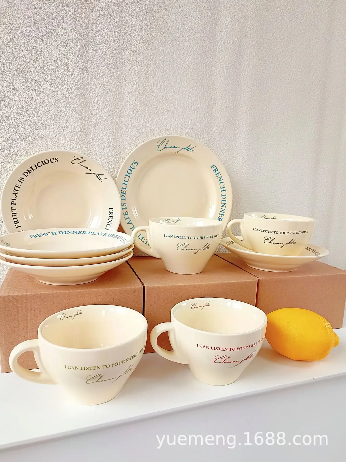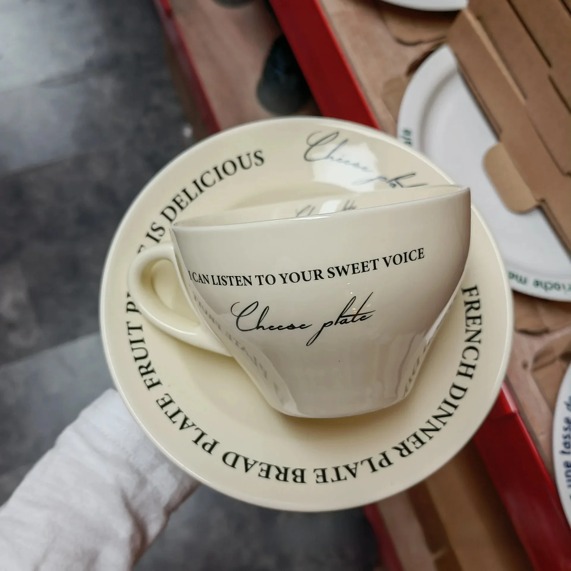 Original Handmade Vintage French Style Ceramic Coffee Cup And Plate Set Cream Color Dining Tableware Mugs Home Living Supplies