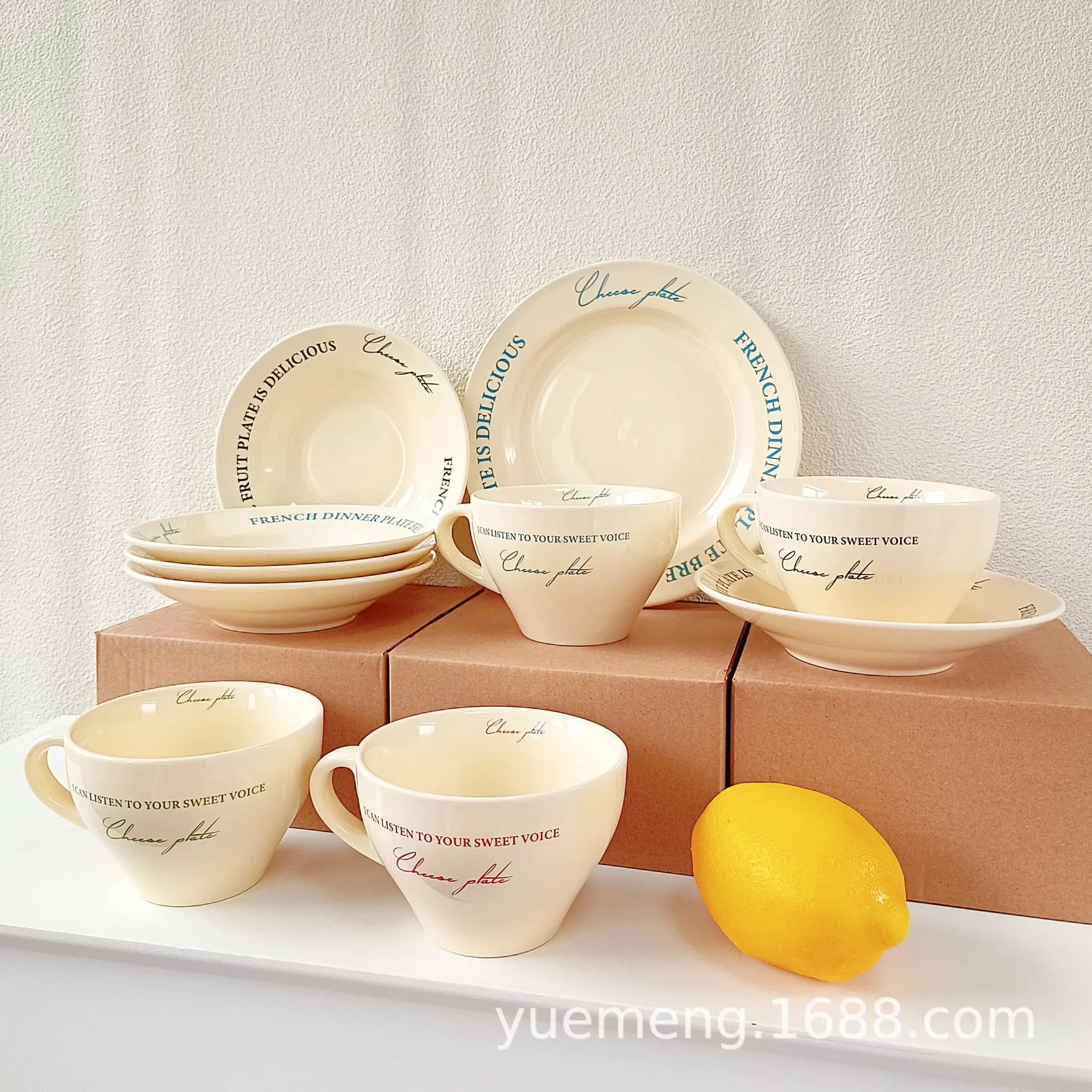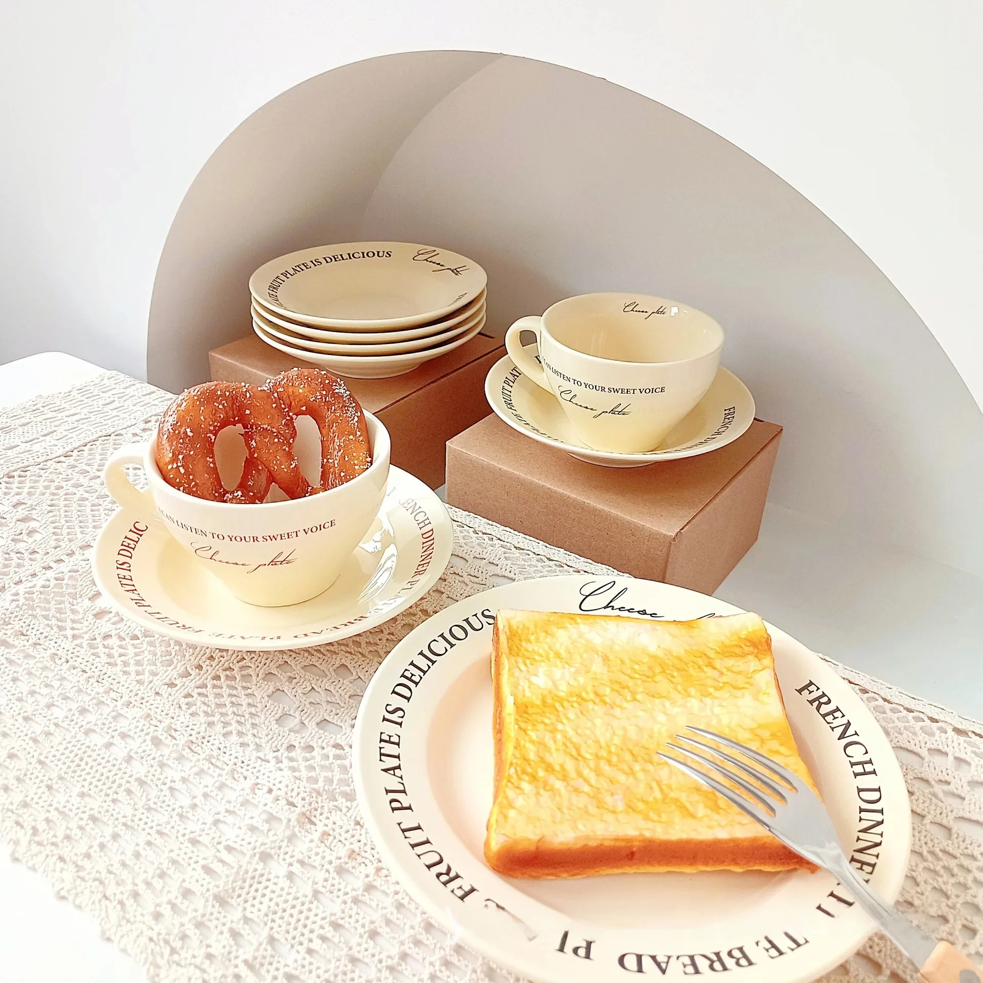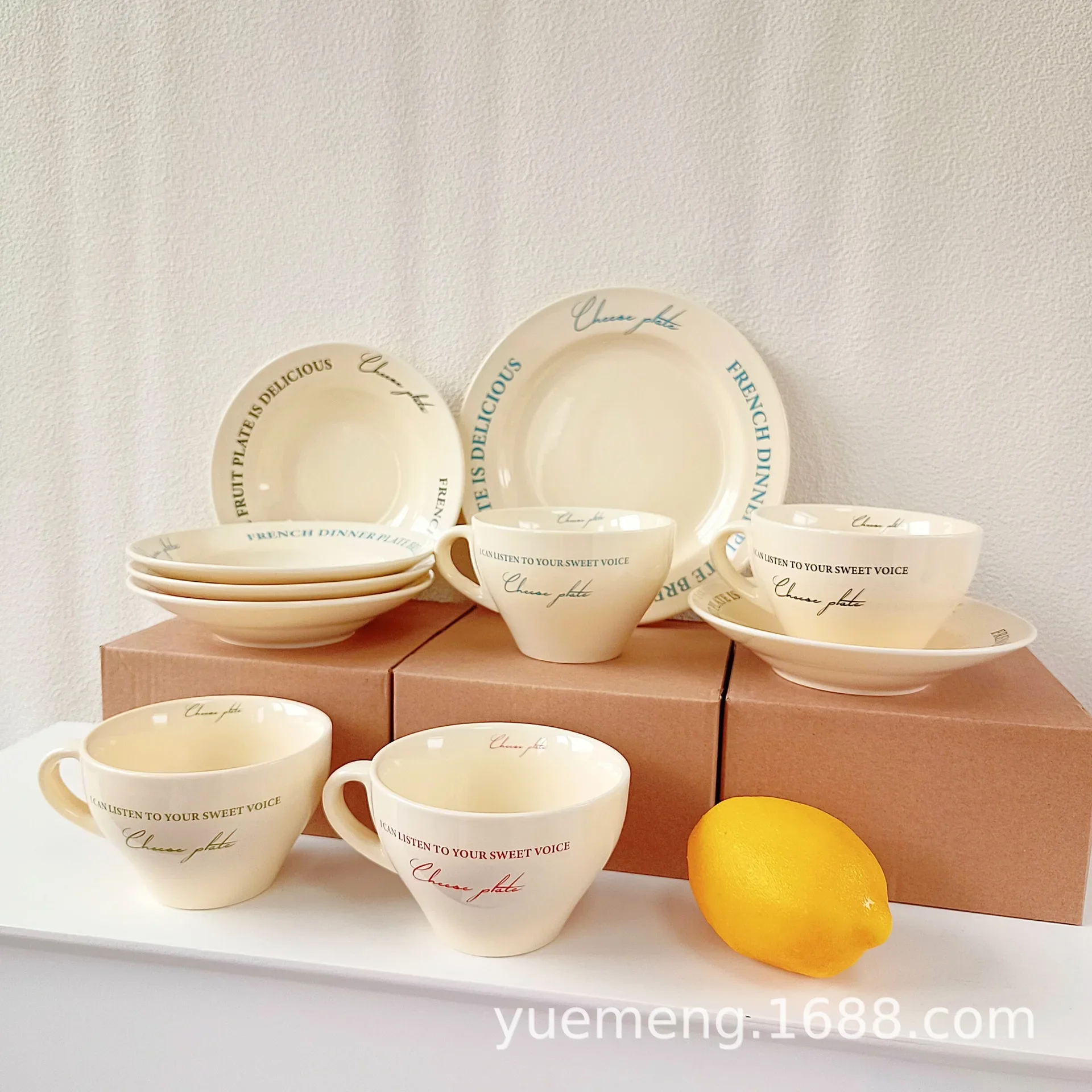 Original Handmade Vintage French Style Ceramic Coffee Cup And Plate Set Cream Color Dining Tableware Mugs Home Living Supplies