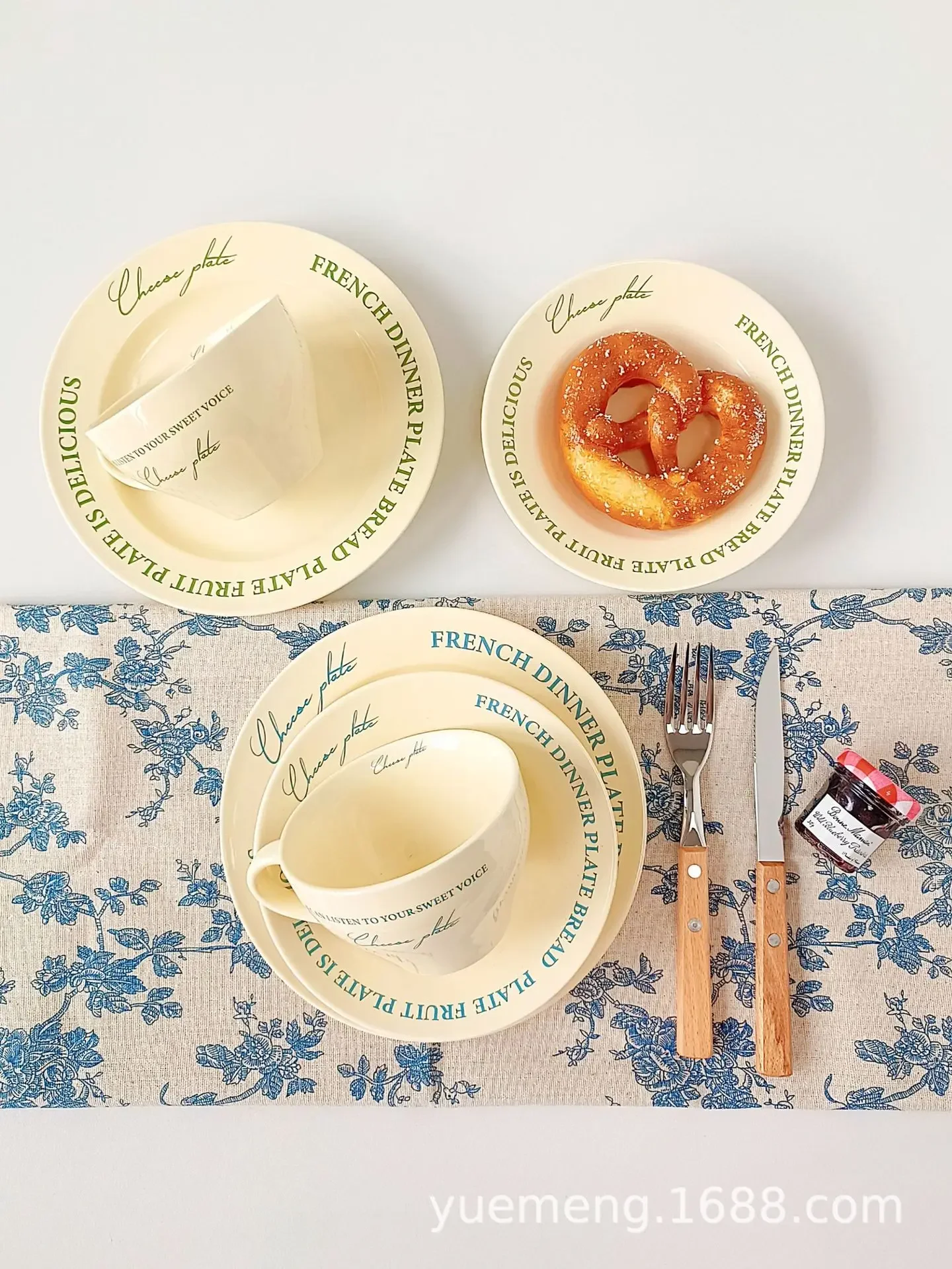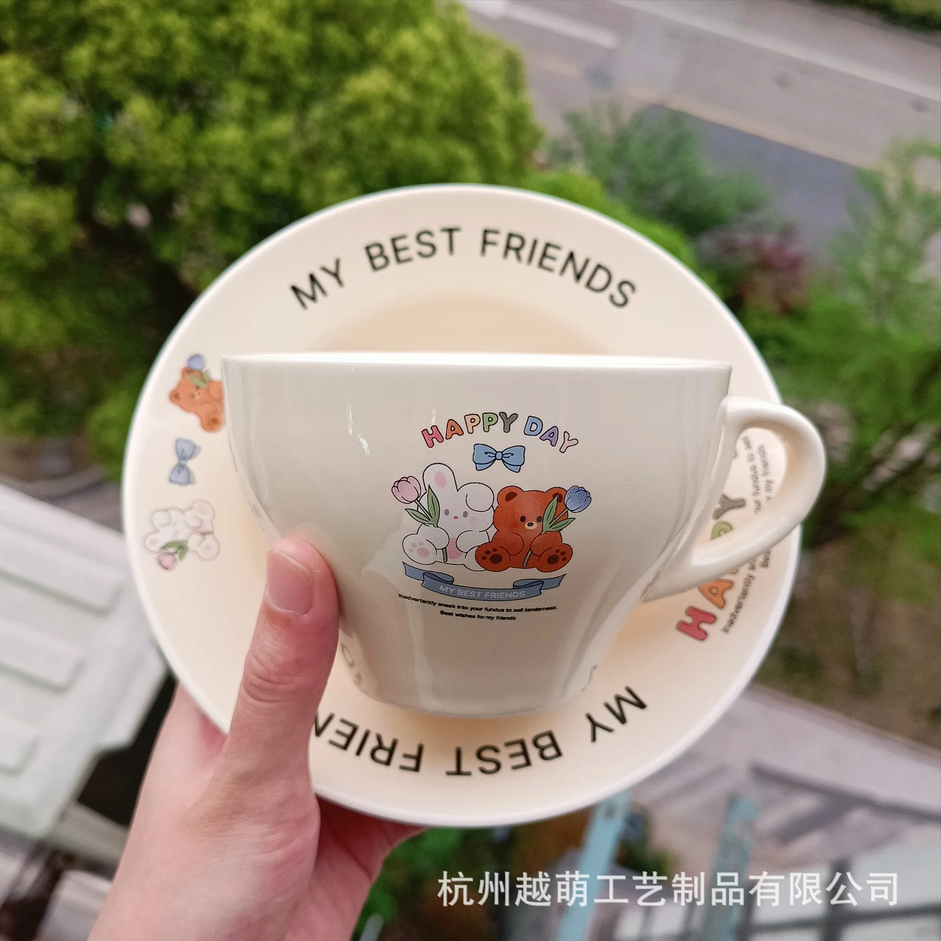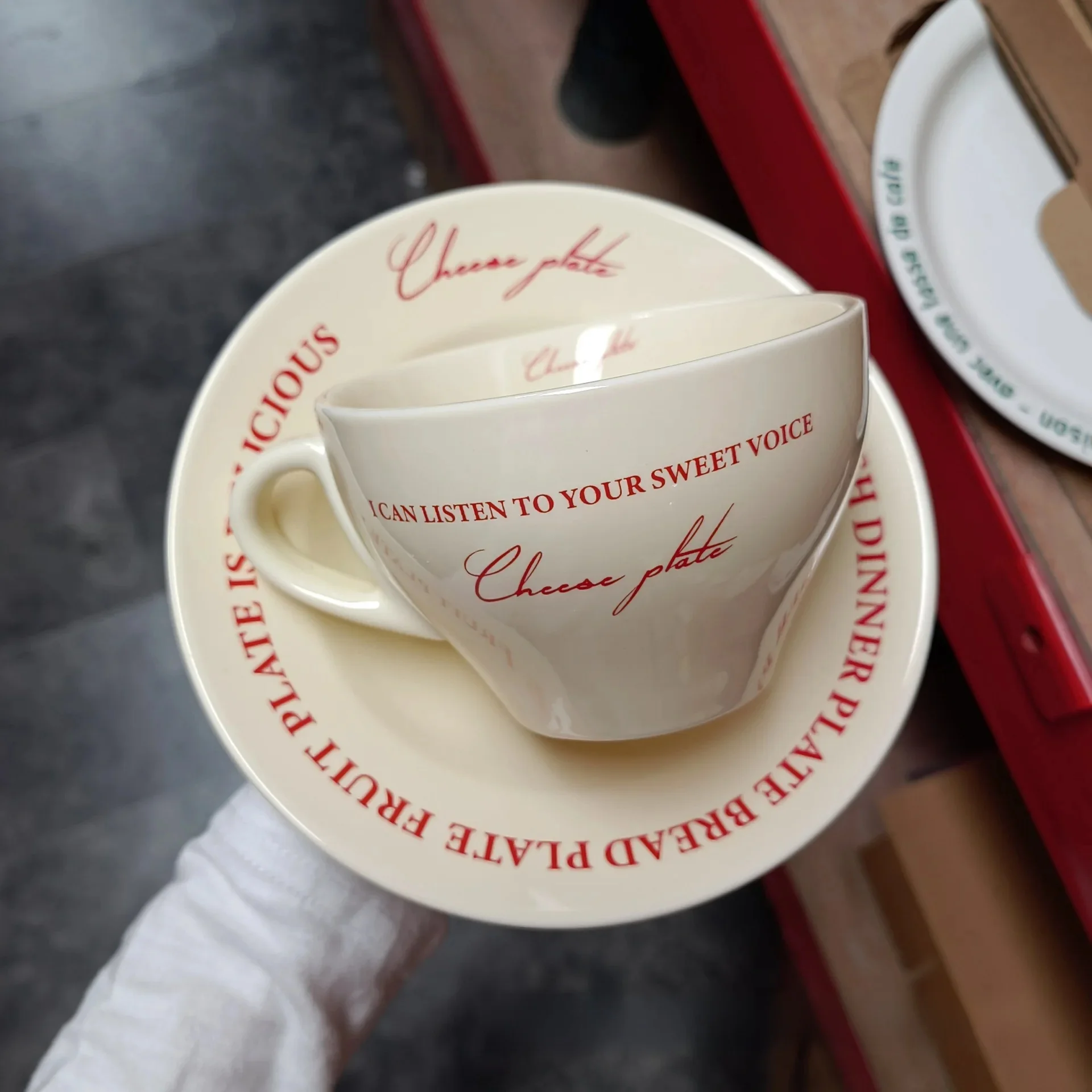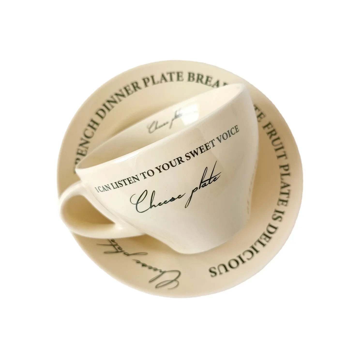 Original Handmade Vintage French Style Ceramic Coffee Cup And Plate Set Cream Color Dining Tableware Mugs Home Living Supplies