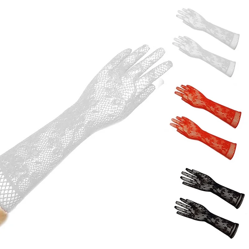 قفازات شبكية أنيقة للنساء رقيقة جدا طويلة الصيف القيادة الدراجات مثير الأحمر واقية من الشمس قفازات الإناث المضادة للأشعة فوق البنفسجية مرونة الدانتيل